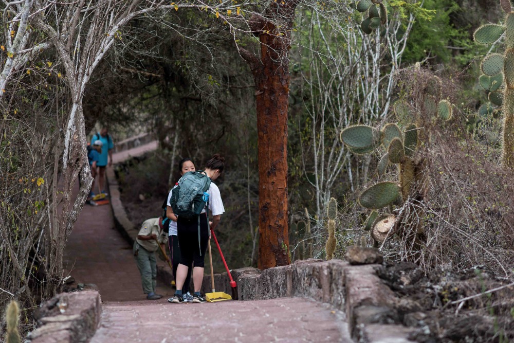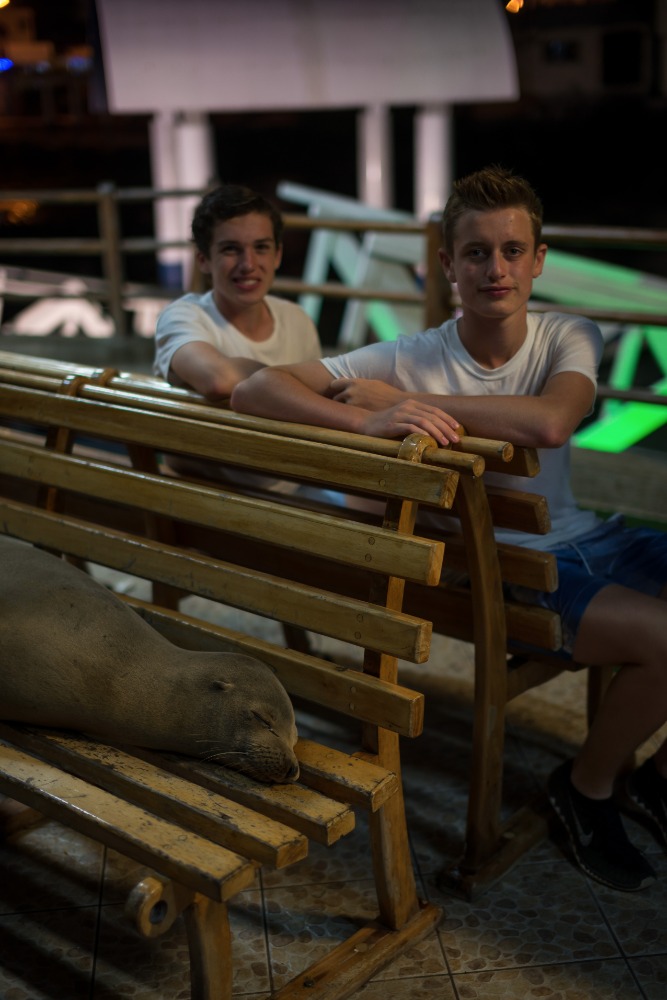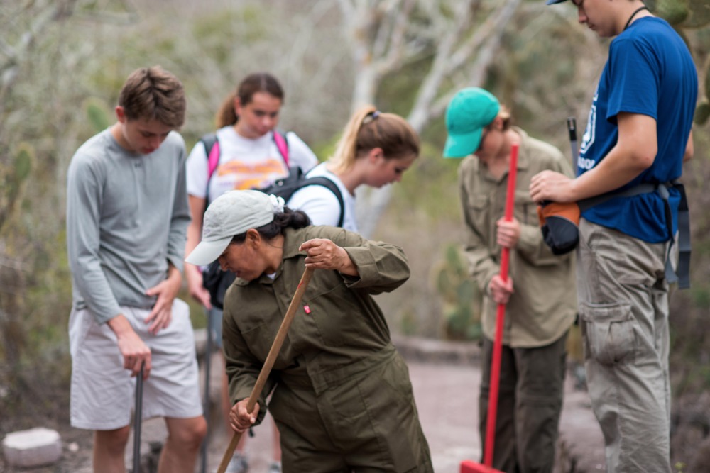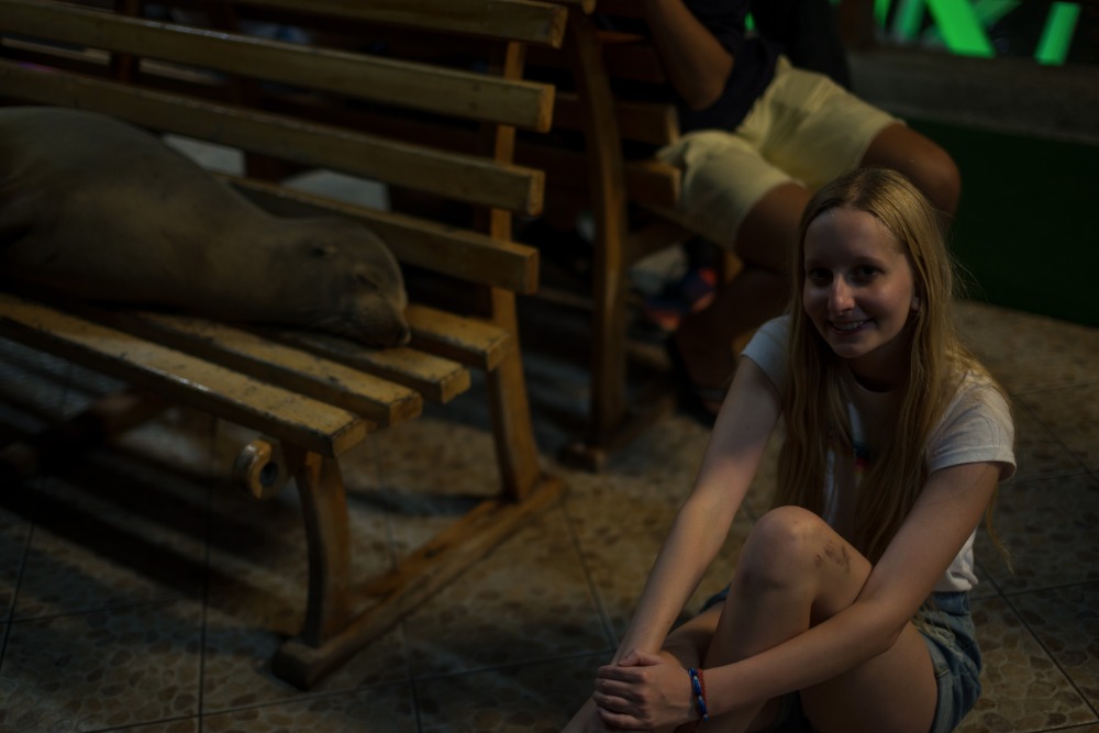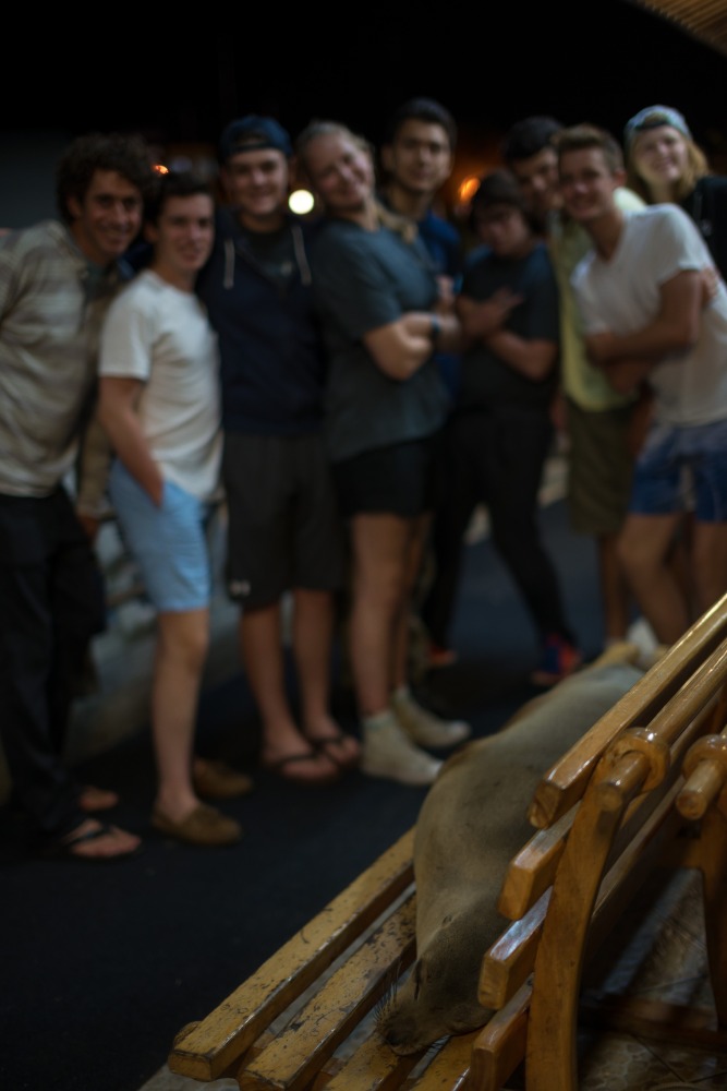 These photos correspond to our previous post on 7-23 written by Eve. We’re cleaning the path to Tortuga Bay, picking up trash on the path to Las Grietas and going on a night walk around the pier to see sea lions and sharks.