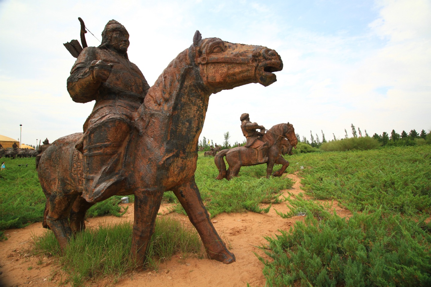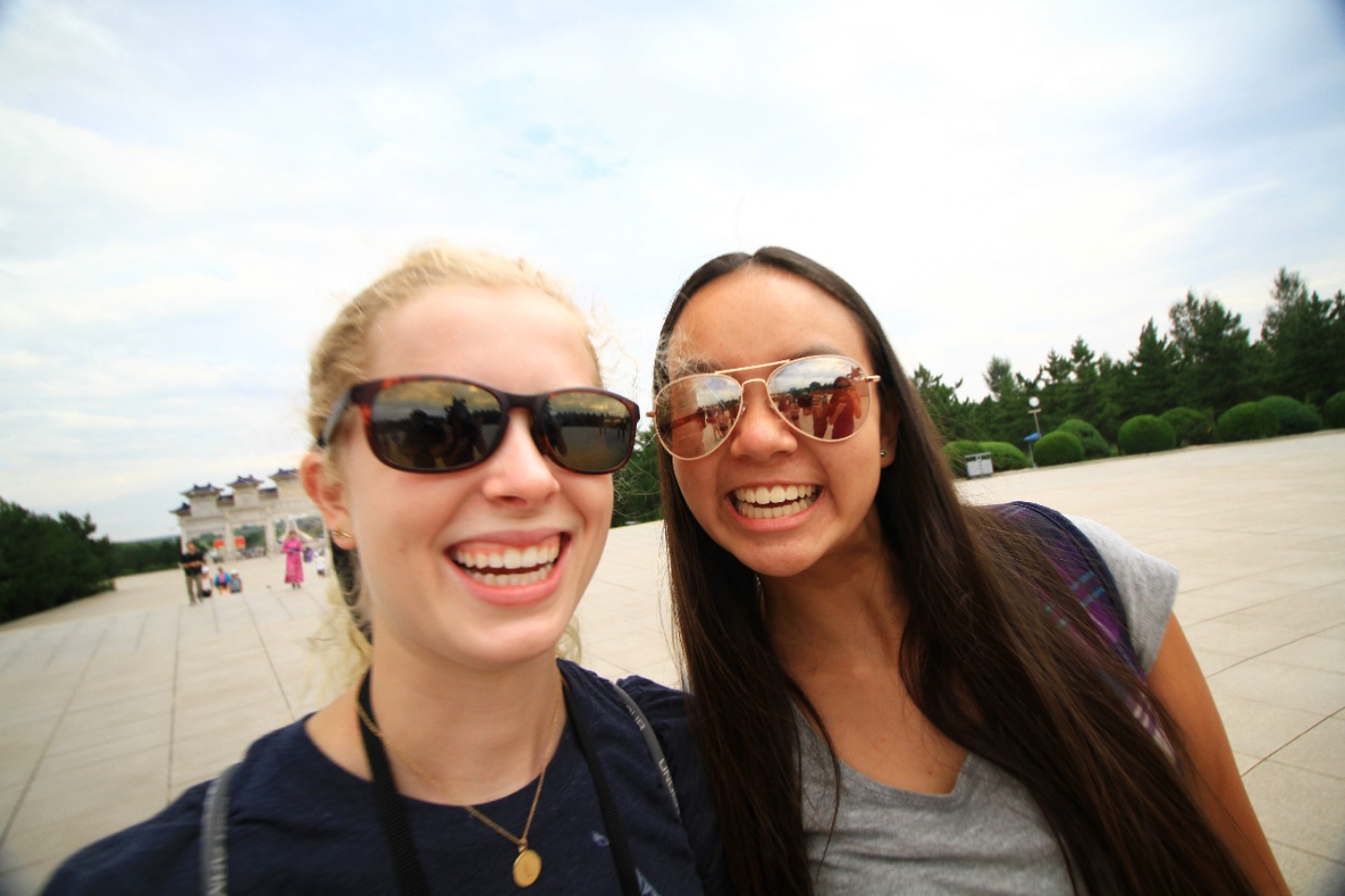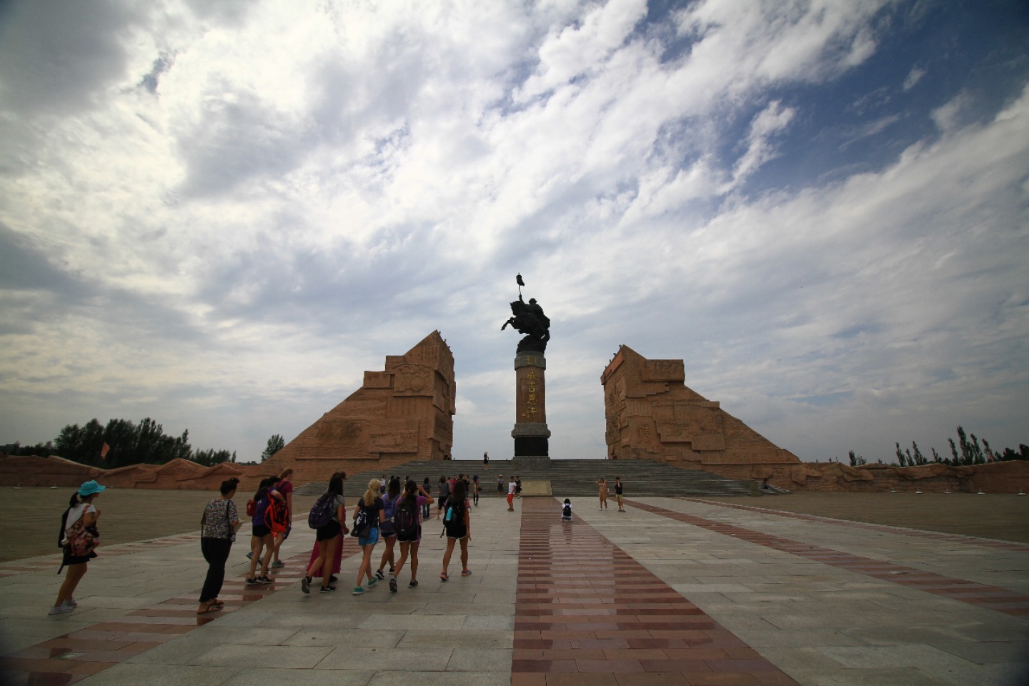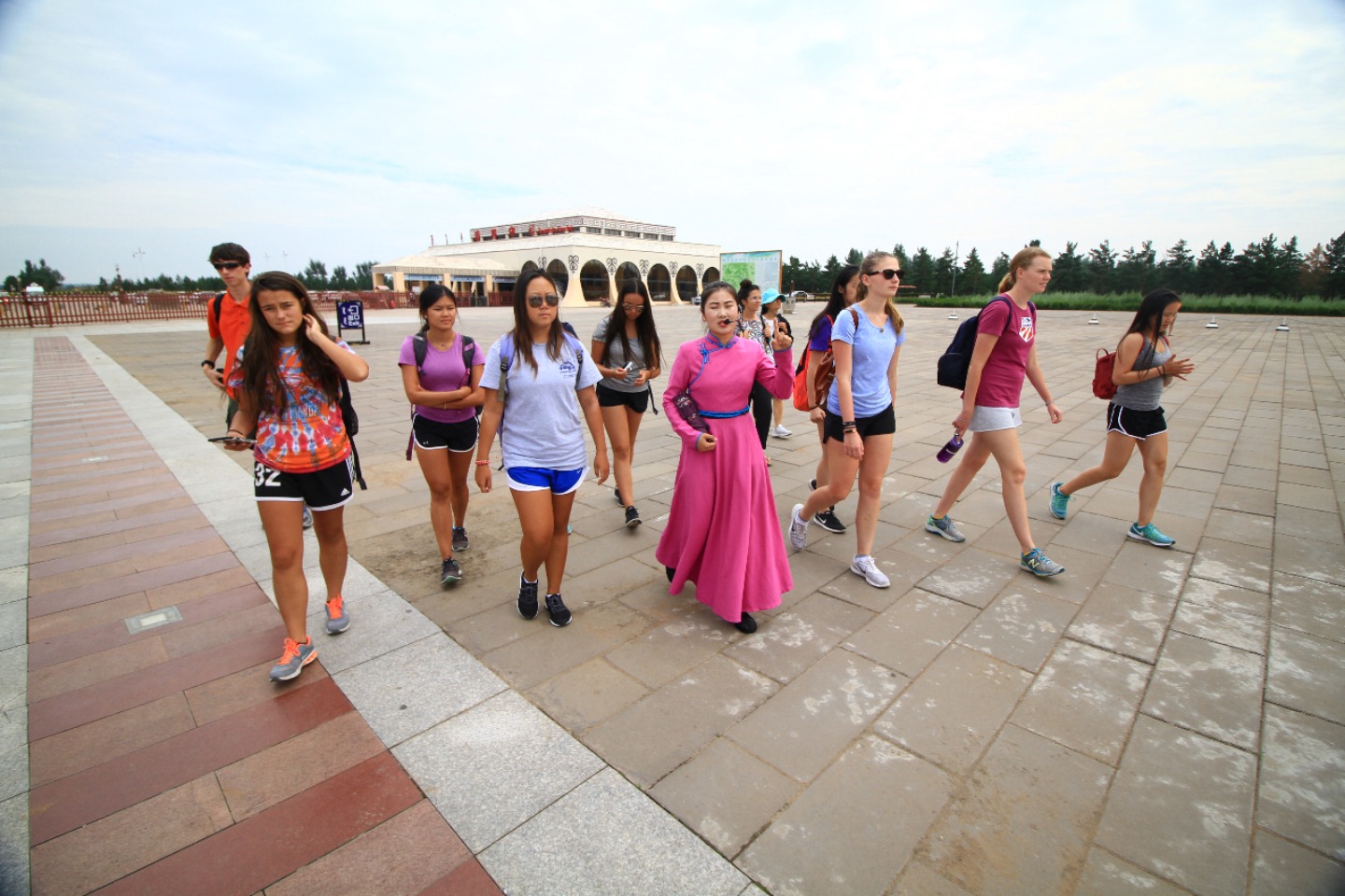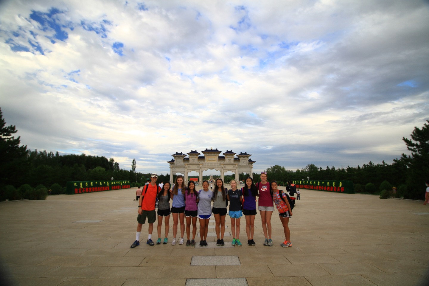 The morning started early with the usual Chinese breakfast before leaving for the orphanage. At the orphanage, we broke up into groups of two and distributed ourselves among four rooms. Today, I was with Hope in one of the foster care rooms where we spent time playing with young kids on a play mat. The kids that we were with today were a lot younger and more mellow than the kids we were with yesterday, which was a change, but we still had a ton of fun. I was able to interact with nearly all of the kids in the room, but I ended up finding myself hanging out with a little boy whose face would light up at any attention I would give him. By the end of the morning, I learned that he enjoyed when I tickled him and rolled toy cars in front of his face. Once our service with the kids was over, we had lunch in the orphanage cafeteria where we ate a lot of fresh watermelons. After this came a two and a half hour van ride to the tomb of Genghis Khan that left the entire back row in the van catching some air over the very bumpy roads. The second we stepped out of the van, we were all surprised to see how cool the temperature was – a nice change from the hot weather that we’ve faced in Beijing and Xi’an. We then met up with the tour guide that showed us the statues of Genghis Khan’s army and the different yurts the people would stay in depending on their rank – We even got to go into the museum that had a incredible painting explaining Mongolia’s history. It was interesting to see how all the different stages of the country were represented in a single work of art. Then, we hopped back into the van for a short five-minute drive down the road, where we would learn more about the Mongolian religion. Our tour guide explained to us what the different colors of the traditional flags represented, along with all the various other important symbols in Mongolian culture. Once the tour was over, Shaun and Seth took a walk around a tower that, according to the Mongolian religion, only men can walk around to gain power, so all of the girls decided to form our nearby circle and not allow the boys in. When the two of them came back, Ruth, Shaun, Seth, and Keeley went to check out the last part of the museum, leaving the rest of us to talk among ourselves. After much discussion and laughter, we decided to lie down and pretend to be asleep to confuse the four of them once returned. Unfortunately, many of us started laughing, myself included, so things didn’t go as planned. Anyways, we then went back to the van to drive to a nearby restaurant for dinner and to discuss the impact of our service while in China. Talking about the importance of applying our service to life at home and educating others about our experience in China felt like a great way to make sure that our newfound awareness doesn’t stop once we leave the country. I would say that today was a success, and I’m super excited for tomorrow (I heard we might get to ride camels!!)