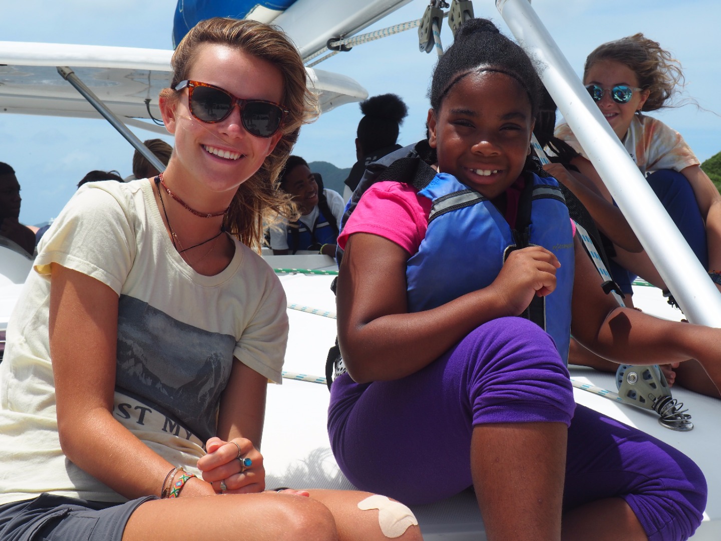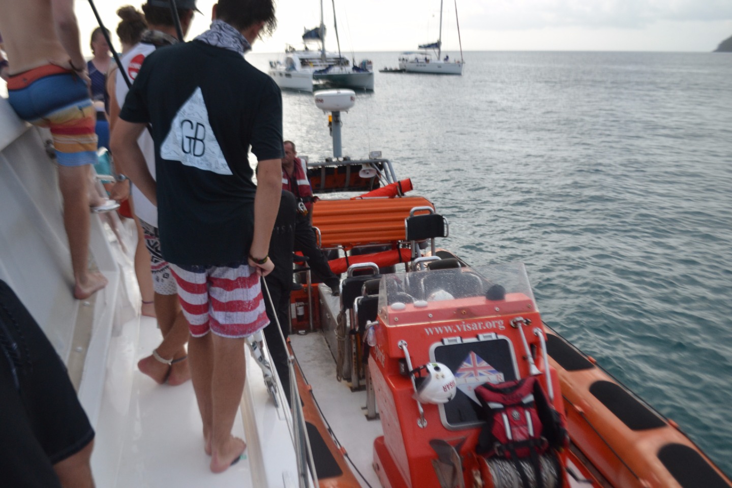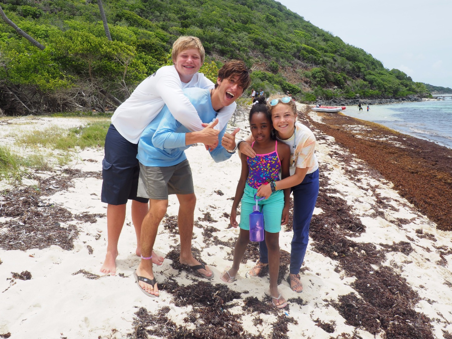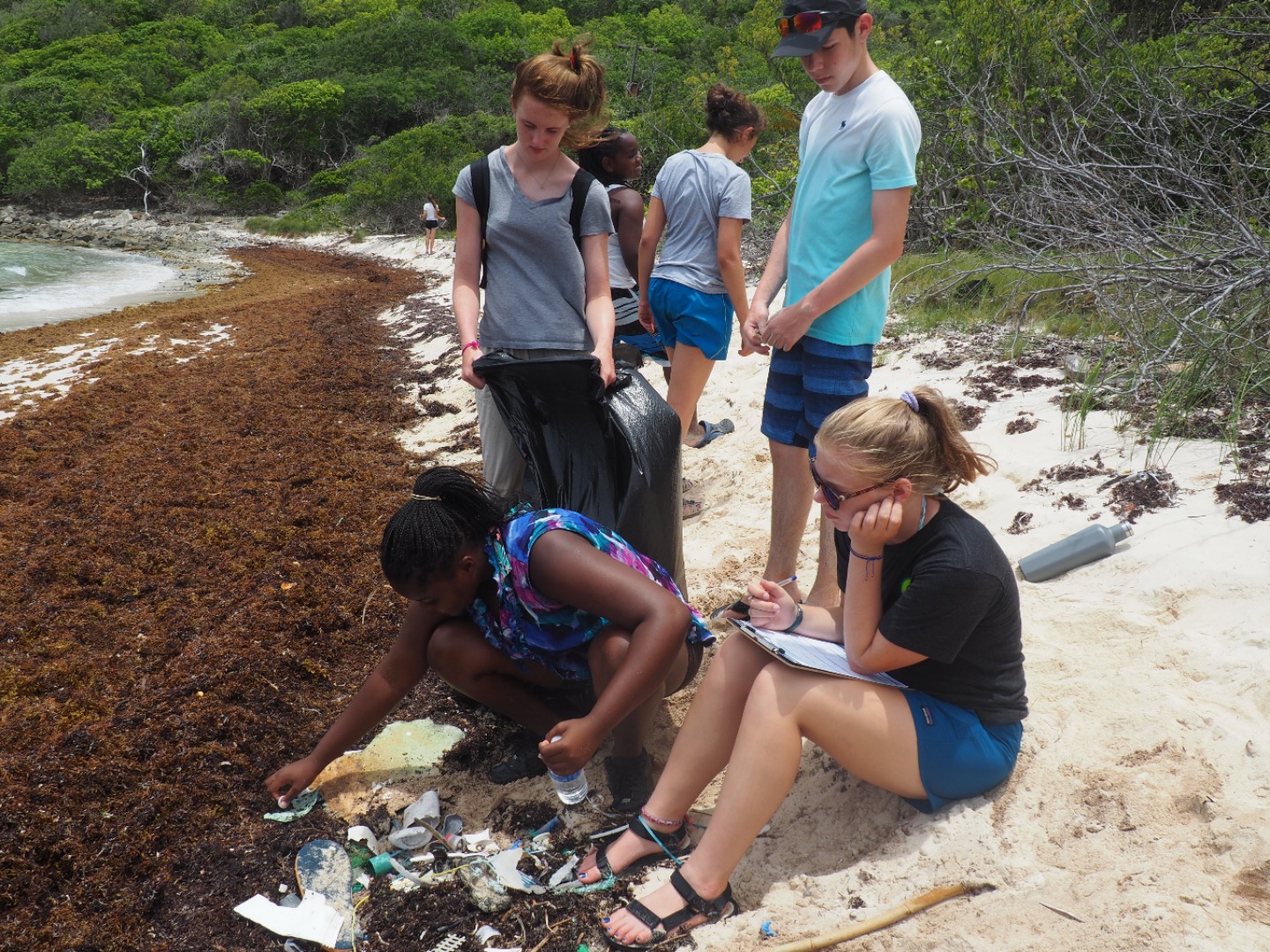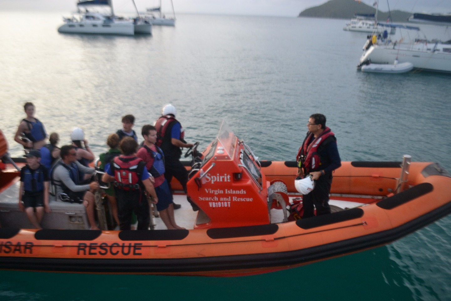 We woke up today to the delicious smell of scrambled eggs, peppers, and freshly cut tomatoes. We all got up from a great nights sleep and went straight to motoring over to Trellis Bay. After searching and successful looking for a mooring ball, we brought the dinghies to land. While on land, we were lucky enough to pick up some school children who are part of the organization YEP (Youth Empowerment Program). Once the children arrived on the boat, we started to join and make groups with them. Some of them where in the same grades as us, or we had shared interests with them. We motored over to Cam Bay, which is on Great Camanoe to help to clean up the beach. We had to note down each piece of plastic that we found before we could collect it. This information is going to be given to (Insert Organization Name). They work to help understand what happens with recycled plastics and more specifically, where they will turn up. Once finished with that we all had a bit of a swim off the back of the boat. Sadly, the short time that we had with our new friends had to come to an end. We turned back and motored to Trellis Bay, where once the kids were dropped off, we on the Go Beyond trip got to have some shore time. We got to go and visit the studio of Aragorn. He is a locally famous artist whose artwork is featured on islands such as Necker Island (Richard Branson’s Island). Once we had restocked all of our candy and potatoes chips that we had eaten in the last couple of days, we dinghied back onto the boat. Once we put away all of our sugary snacks and drinks, we got underway to get to Sommer’s Beach. Once we had arrived over at Sommer’s Beach, we started to do a V.I.S.A.R. Simulation. V.I.S.A.R, which stands for Virgin Island Search and Rescue, is a service that consists of all volunteer service men and women except for one permanent worker. Our simulation consisted of Griffin, a student on the other Go Beyond boat faking a head injury, and then V.I.S.A.R. coming over and attempting to save him and bring him to safety. After the simulation ended, we got to go on a joyride in there almost 500 horsepower super dinghy. After V.I.S.A.R. gave us all a talk on how they operate in the BVI, and some of the A.V.I, we got to go and eat and a beach barbecue with the rest of the Action Quest and Go Beyond members. We got to munch on burgers and pineapple punch before we got drenched on with rain. Tomorrow we hope for some better weather.
