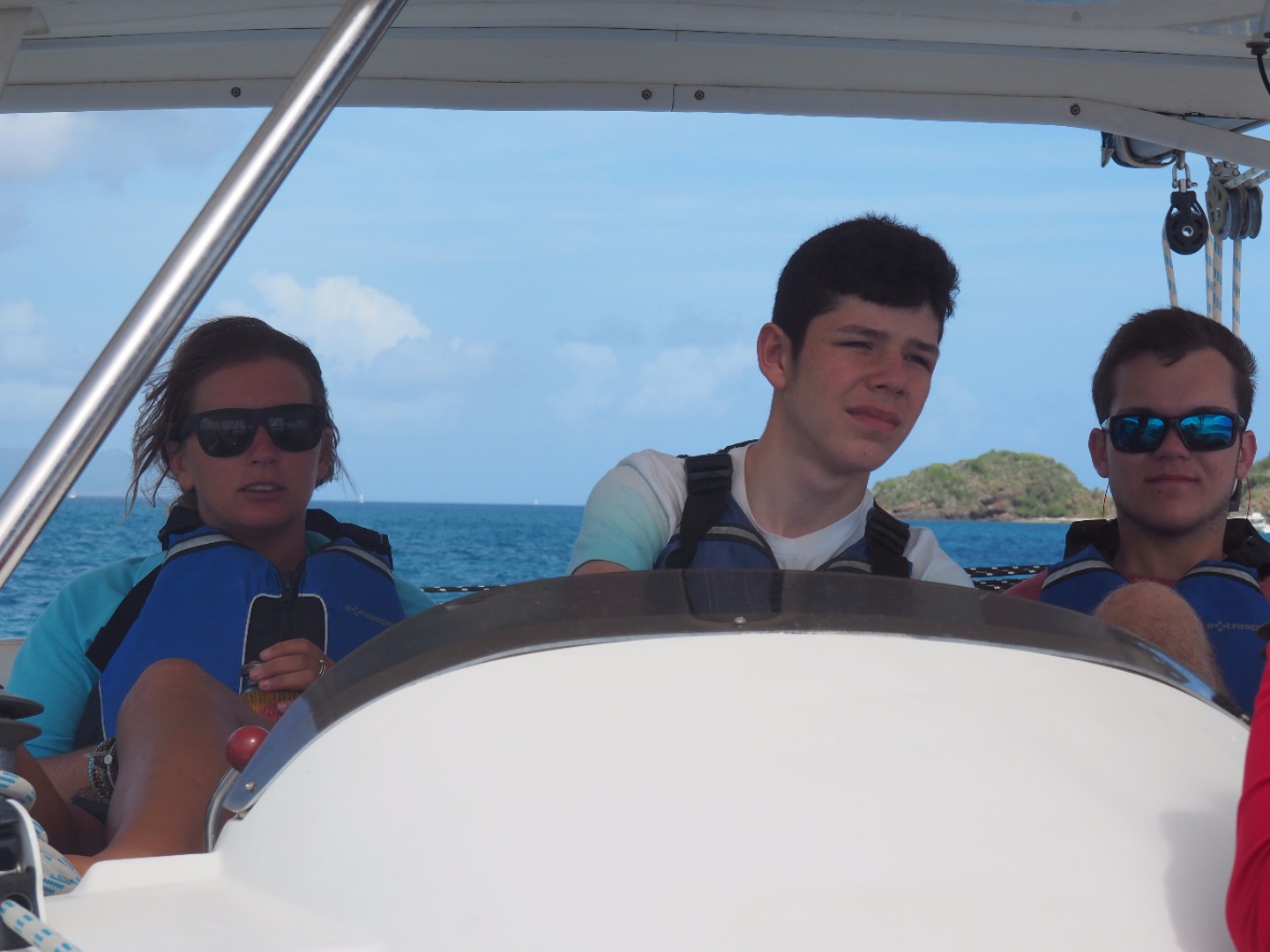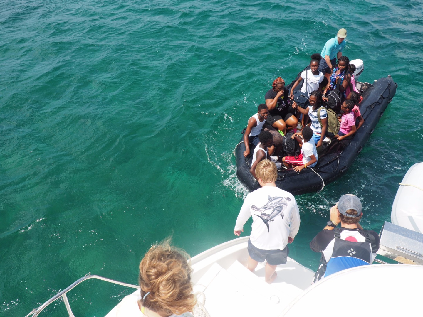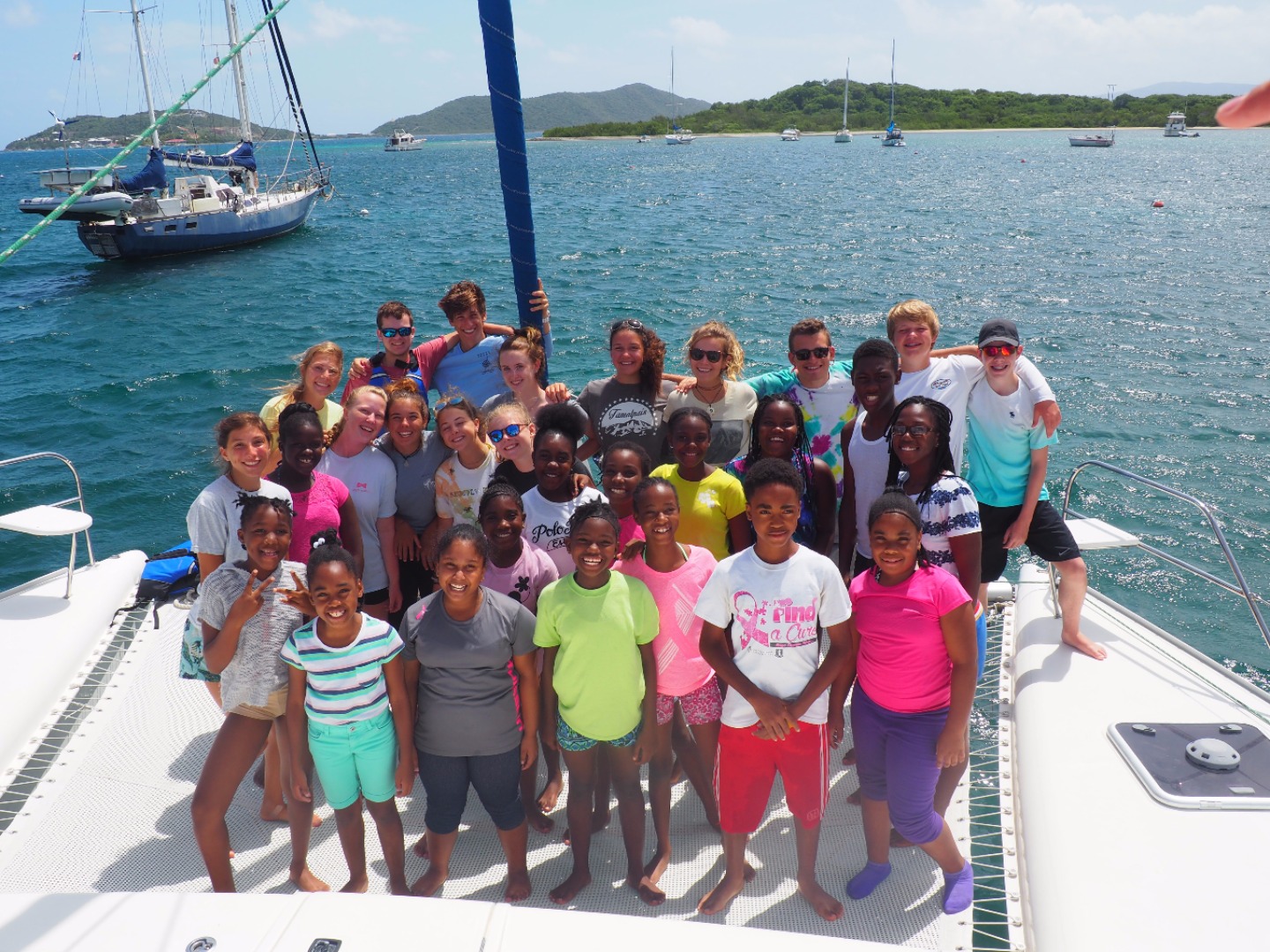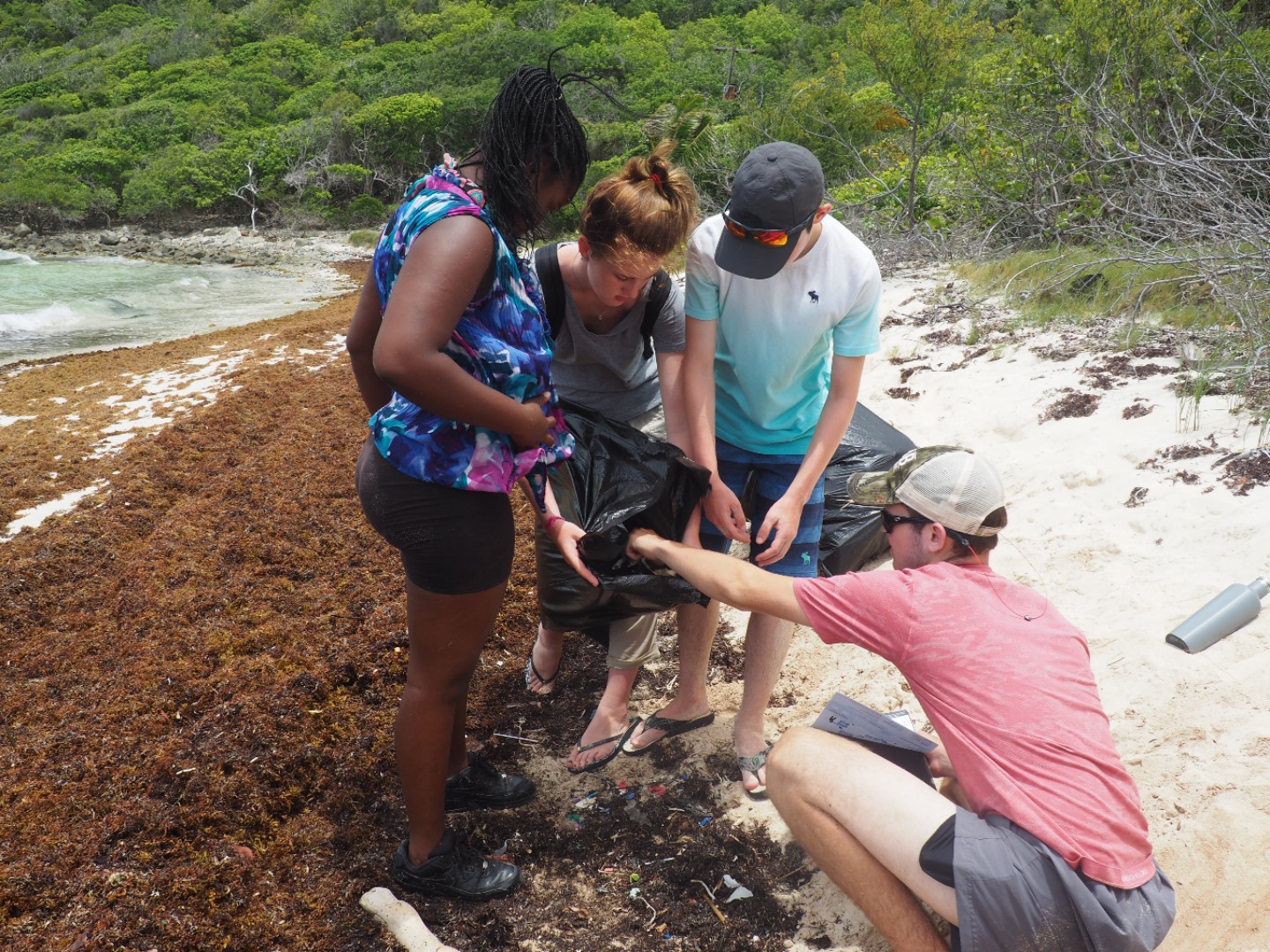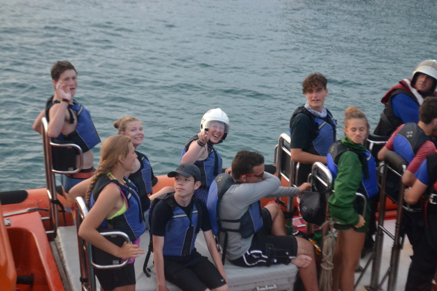 We woke up today to the delicious smell of scrambled eggs, peppers, and freshly cut tomatoes. We all got up from a great nights sleep and went straight to motoring over to Trellis Bay. After searching and successful looking for a mooring ball, we brought the dinghies to land. While on land, we were lucky enough to pick up some school children who are part of the organization YEP (Youth Empowerment Program). Once the children arrived on the boat, we started to join and make groups with them. Some of them where in the same grades as us, or we had shared interests with them. We motored over to Cam Bay, which is on Great Camanoe to help to clean up the beach. We had to note down each piece of plastic that we found before we could collect it. This information is going to be given to (Insert Organization Name). They work to help understand what happens with recycled plastics and more specifically, where they will turn up. Once finished with that we all had a bit of a swim off the back of the boat. Sadly, the short time that we had with our new friends had to come to an end. We turned back and motored to Trellis Bay, where once the kids were dropped off, we on the Go Beyond trip got to have some shore time. We got to go and visit the studio of Aragorn. He is a locally famous artist whose artwork is featured on islands such as Necker Island (Richard Branson’s Island). Once we had restocked all of our candy and potatoes chips that we had eaten in the last couple of days, we dinghied back onto the boat. Once we put away all of our sugary snacks and drinks, we got underway to get to Sommer’s Beach. Once we had arrived over at Sommer’s Beach, we started to do a V.I.S.A.R. Simulation. V.I.S.A.R, which stands for Virgin Island Search and Rescue, is a service that consists of all volunteer service men and women except for one permanent worker. Our simulation consisted of Griffin, a student on the other Go Beyond boat faking a head injury, and then V.I.S.A.R. coming over and attempting to save him and bring him to safety. After the simulation ended, we got to go on a joyride in there almost 500 horsepower super dinghy. After V.I.S.A.R. gave us all a talk on how they operate in the BVI, and some of the A.V.I, we got to go and eat and a beach barbecue with the rest of the Action Quest and Go Beyond members. We got to munch on burgers and pineapple punch before we got drenched on with rain. Tomorrow we hope for some better weather.