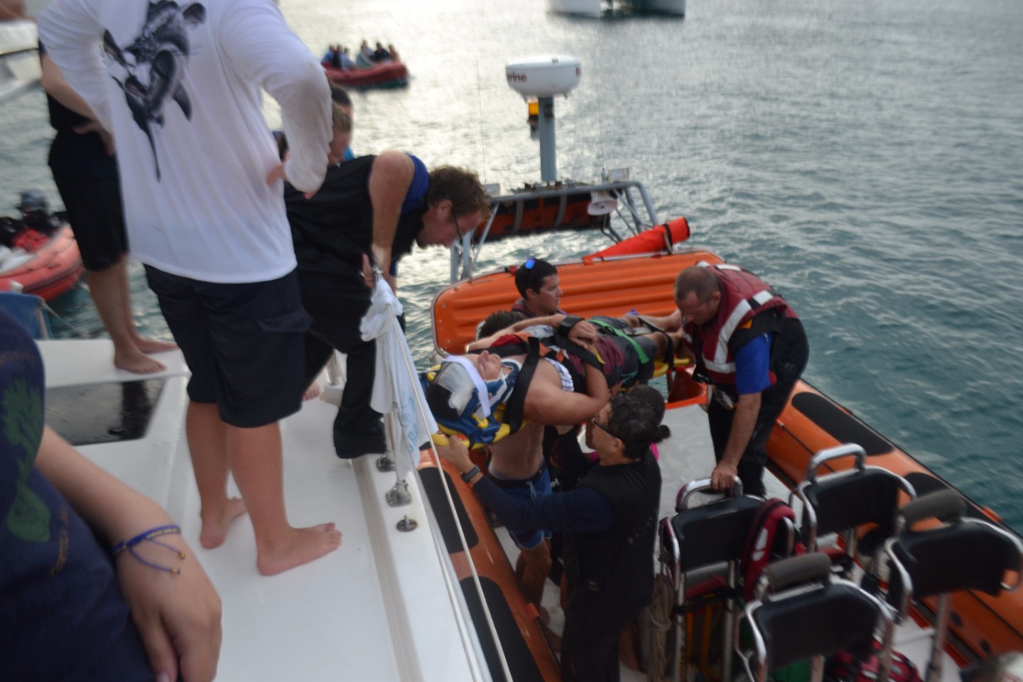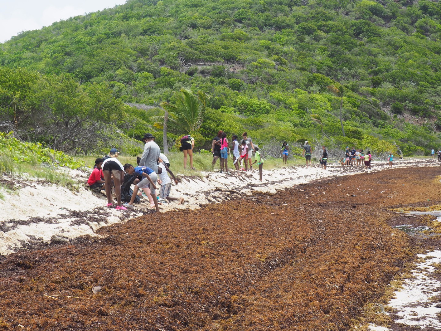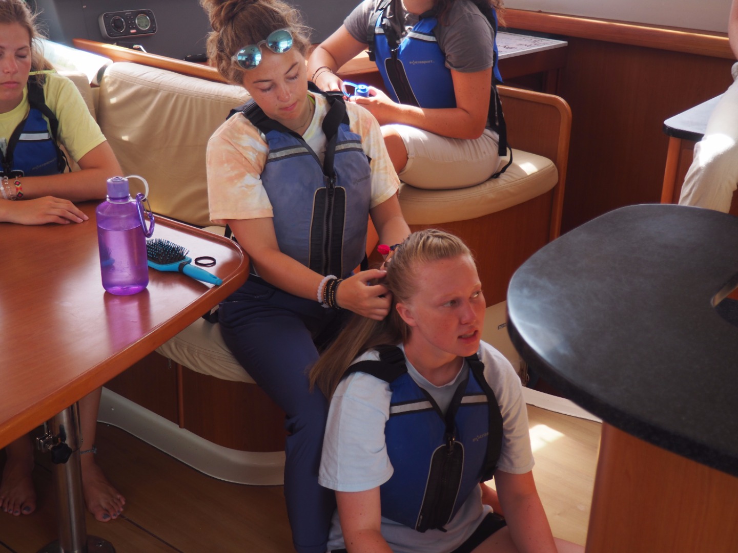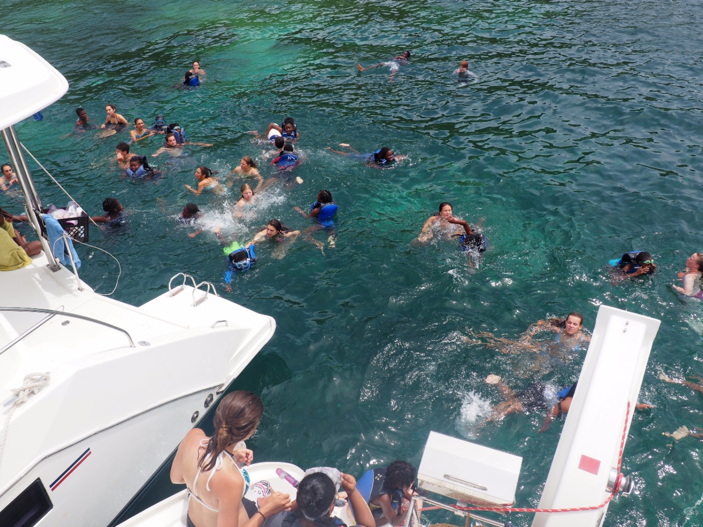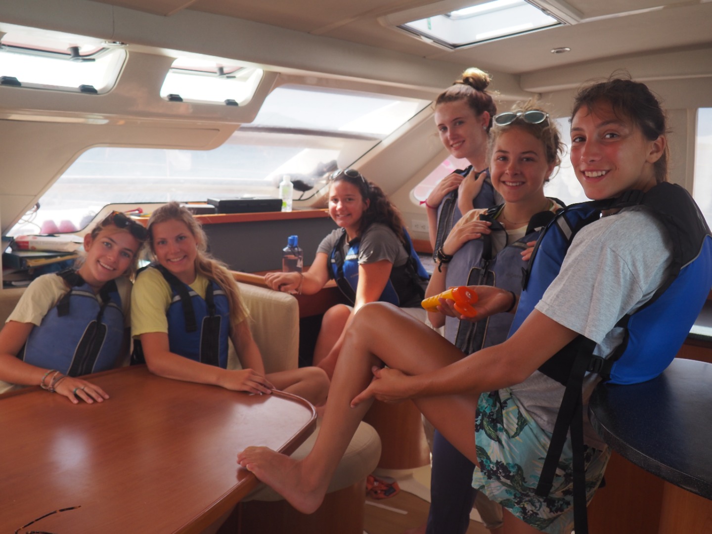 We woke up today to the delicious smell of scrambled eggs, peppers, and freshly cut tomatoes. We all got up from a great nights sleep and went straight to motoring over to Trellis Bay. After searching and successful looking for a mooring ball, we brought the dinghies to land. While on land, we were lucky enough to pick up some school children who are part of the organization YEP (Youth Empowerment Program). Once the children arrived on the boat, we started to join and make groups with them. Some of them where in the same grades as us, or we had shared interests with them. We motored over to Cam Bay, which is on Great Camanoe to help to clean up the beach. We had to note down each piece of plastic that we found before we could collect it. This information is going to be given to (Insert Organization Name). They work to help understand what happens with recycled plastics and more specifically, where they will turn up. Once finished with that we all had a bit of a swim off the back of the boat. Sadly, the short time that we had with our new friends had to come to an end. We turned back and motored to Trellis Bay, where once the kids were dropped off, we on the Go Beyond trip got to have some shore time. We got to go and visit the studio of Aragorn. He is a locally famous artist whose artwork is featured on islands such as Necker Island (Richard Branson’s Island). Once we had restocked all of our candy and potatoes chips that we had eaten in the last couple of days, we dinghied back onto the boat. Once we put away all of our sugary snacks and drinks, we got underway to get to Sommer’s Beach. Once we had arrived over at Sommer’s Beach, we started to do a V.I.S.A.R. Simulation. V.I.S.A.R, which stands for Virgin Island Search and Rescue, is a service that consists of all volunteer service men and women except for one permanent worker. Our simulation consisted of Griffin, a student on the other Go Beyond boat faking a head injury, and then V.I.S.A.R. coming over and attempting to save him and bring him to safety. After the simulation ended, we got to go on a joyride in there almost 500 horsepower super dinghy. After V.I.S.A.R. gave us all a talk on how they operate in the BVI, and some of the A.V.I, we got to go and eat and a beach barbecue with the rest of the Action Quest and Go Beyond members. We got to munch on burgers and pineapple punch before we got drenched on with rain. Tomorrow we hope for some better weather.