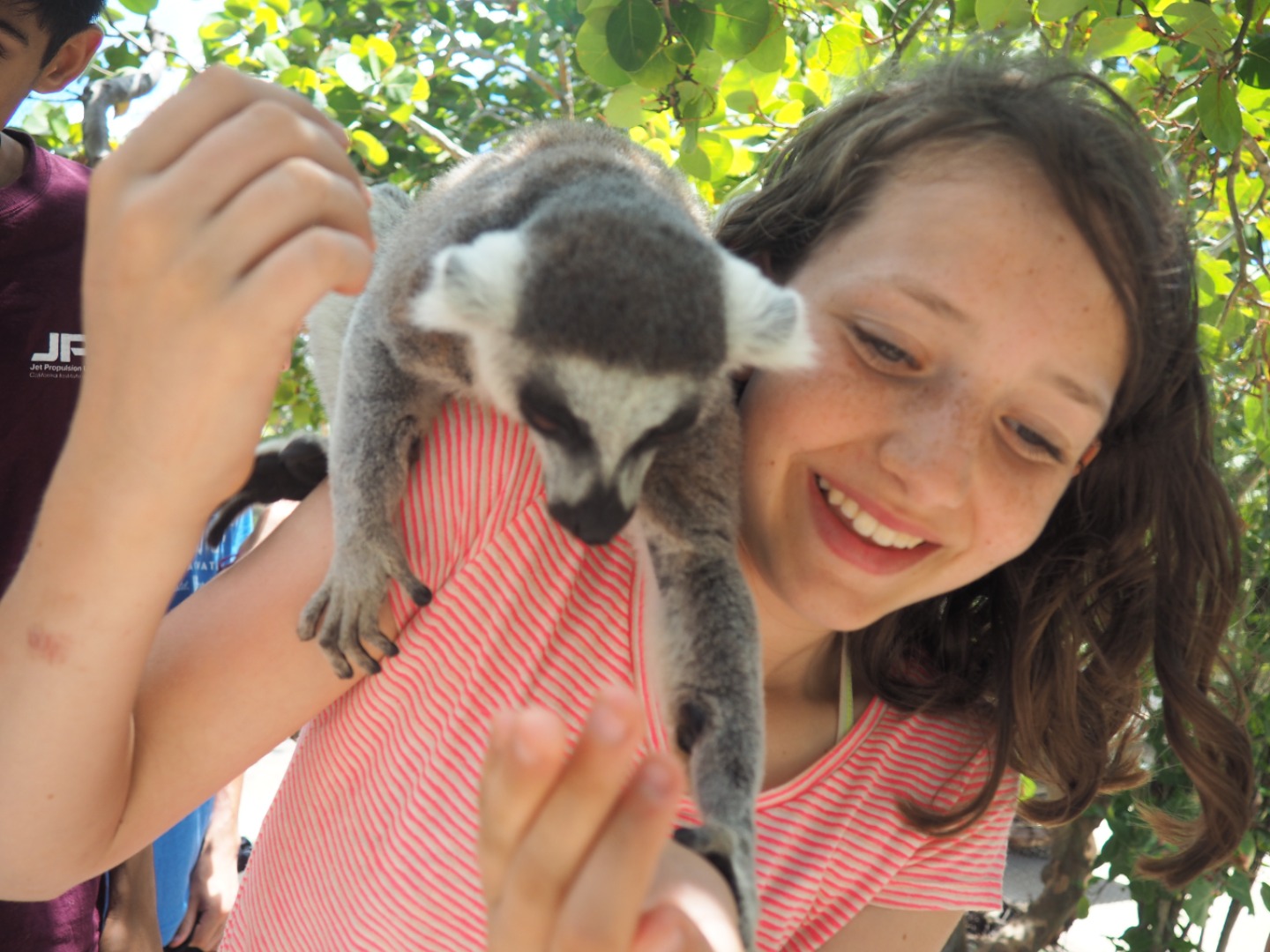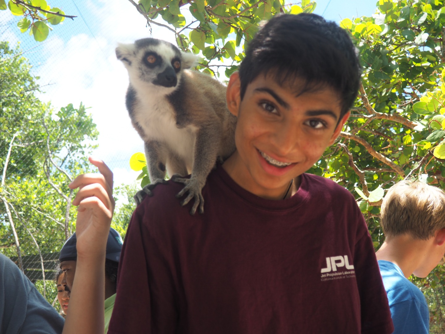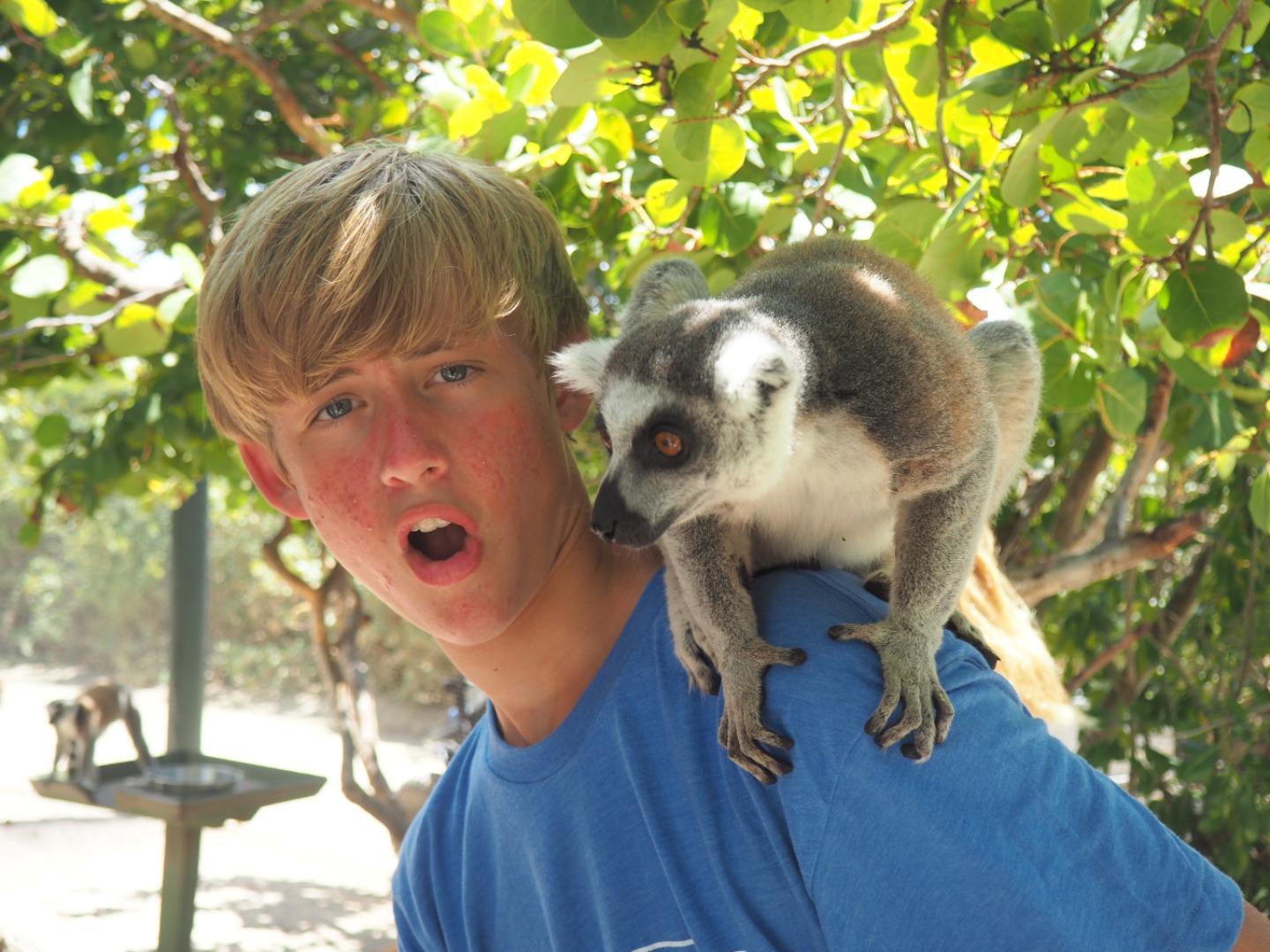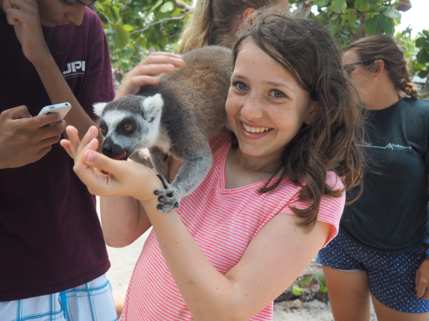 In the morning, we woke up to a beautiful view of the silhouettes of the islands and we had delicious French toast made by BZ. After gathering some snacks at a nearby market, we sailed to an incredible island owned by Sir Richard Branson named Necker island. Sir Richard Branson is the owner of Virgin Airlines and Virgin Mobile. This breathtaking island had a bunch of cool animals, amazing view, and a lovely house. When we first arrived on the island, the wildlife caretakers took us to many different habitats on the island. We saw tortoise, iguanas, toucans, macaws, flamingos, and lemurs. In the lemur habitat, the wildlife caretakers let the lemurs walk all over us and let us feed them. It was pretty wild. After that, we were taken to the top of the house to see a view of a lot of British Virgin Islands and of course, the beautiful blue water. After all, of the views, we got back on our dinghies and rode back to our boats. Special thanks to the wildlife caretakers and Sir Richard Branson for letting us on the island. We had a terrific lunch of grilled cheese sandwiches, my favorite made by Jasmine and Sheev, After that, we started our three-hour sail to Anegada. During this, we listened to Big Time Rush and had a knot competition, and I beat BZ once even though she used one hand. I was pretty proud. When we arrived at Anegada, we took showers and ate Mexican food for dinner. It was an awesome day.