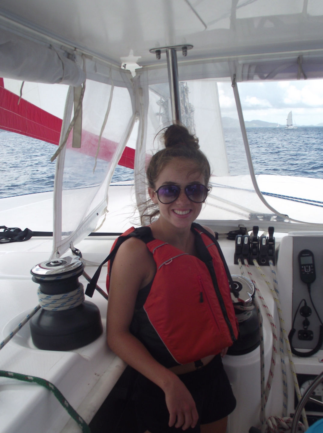 We woke up at the ActionQuest dock on Tortola to roosters crowing and had a quick breakfast of cereal before we set off for Norman Island. On the way, we learned plenty of new skills like how to coil lines and anchor the boat. A skill I learned as skipper was steering; not to brag, but I’d say I’m pretty good (just take my word for it). It’s quite the arm workout! We had sandwiches for lunch then got a real workout as we dove into the swim test: 3 laps around the boat and 5 minutes of treading water (or trying not to sink in my case). After we all passed the test, we boarded the dingy for snorkeling at the caves, which was incredible but short-lived (jellyfish are officially the worst). We saw an octopus! Later, we took surprisingly fun saltwater showers, and the chefs made Sloppy Joe’s (yum!!). What a day!!