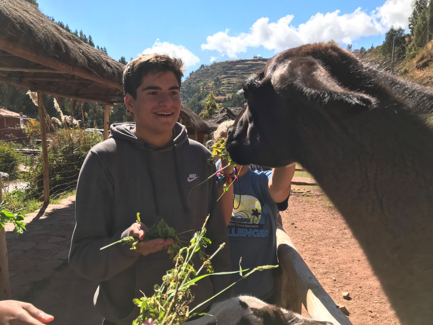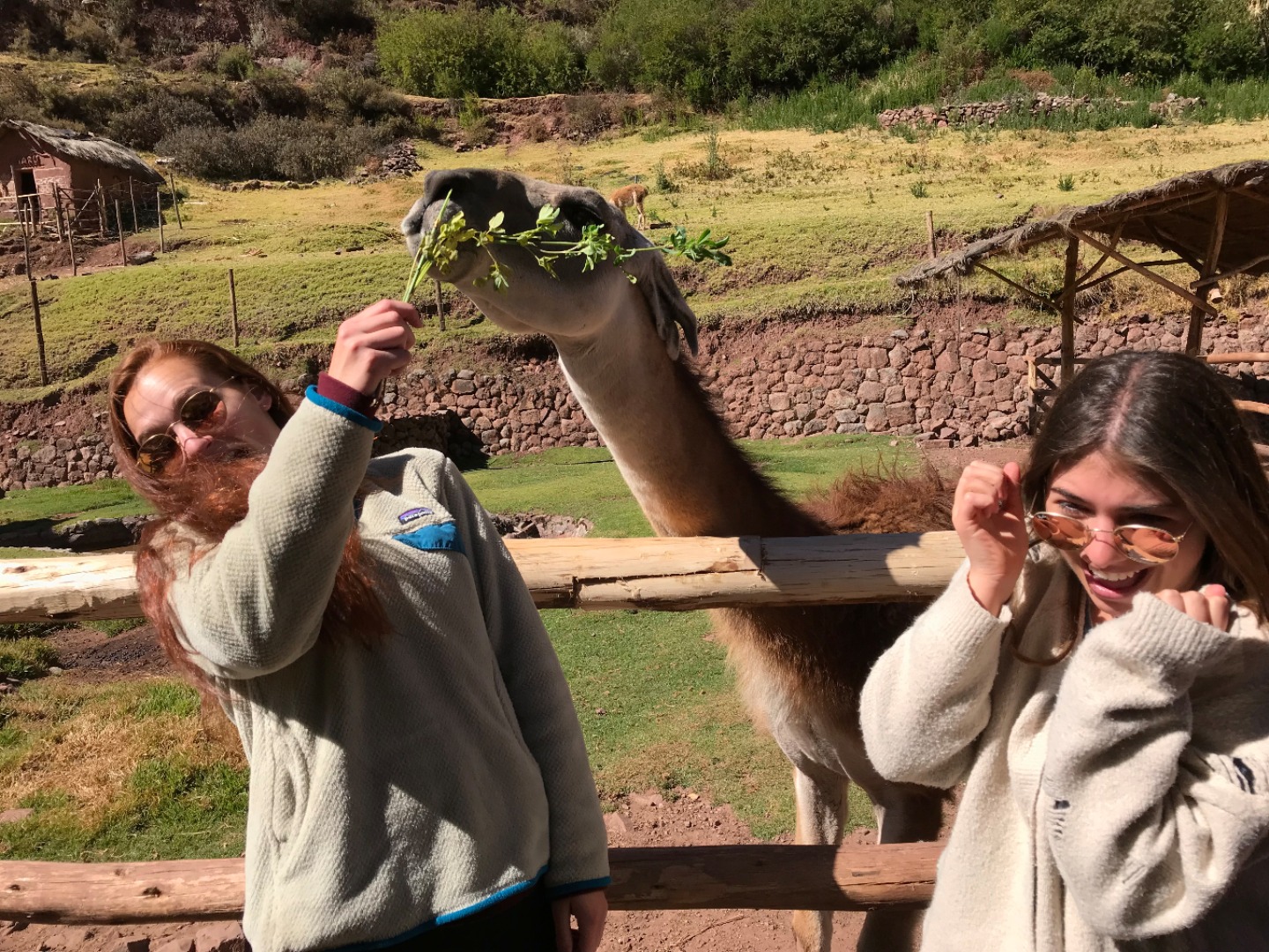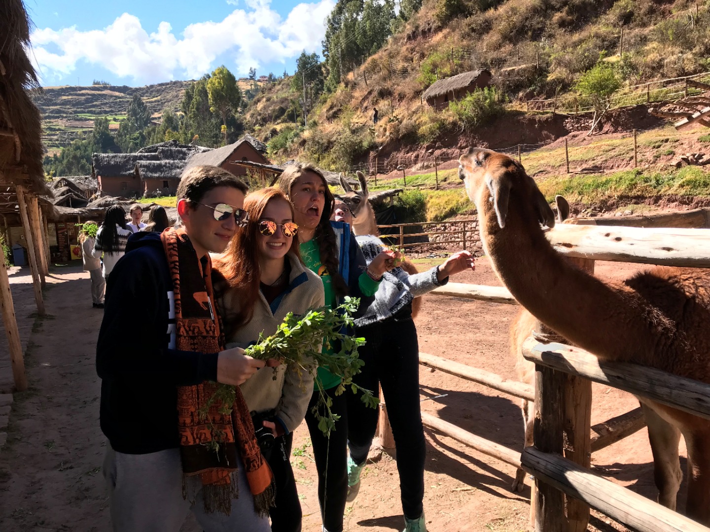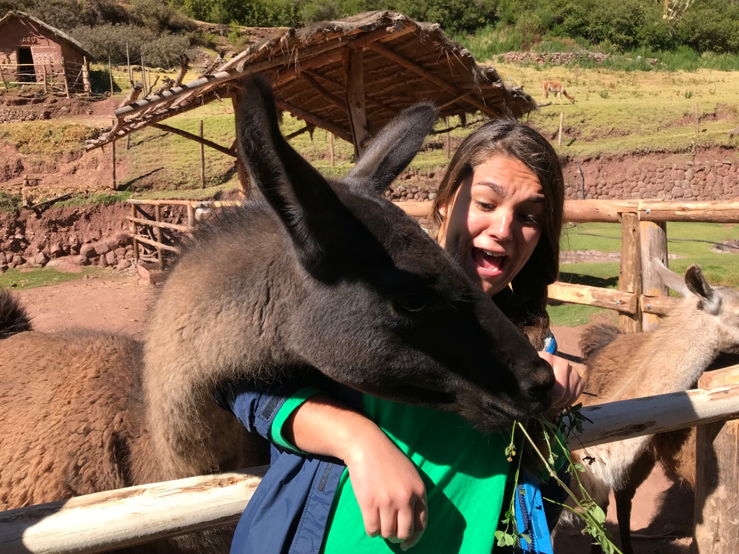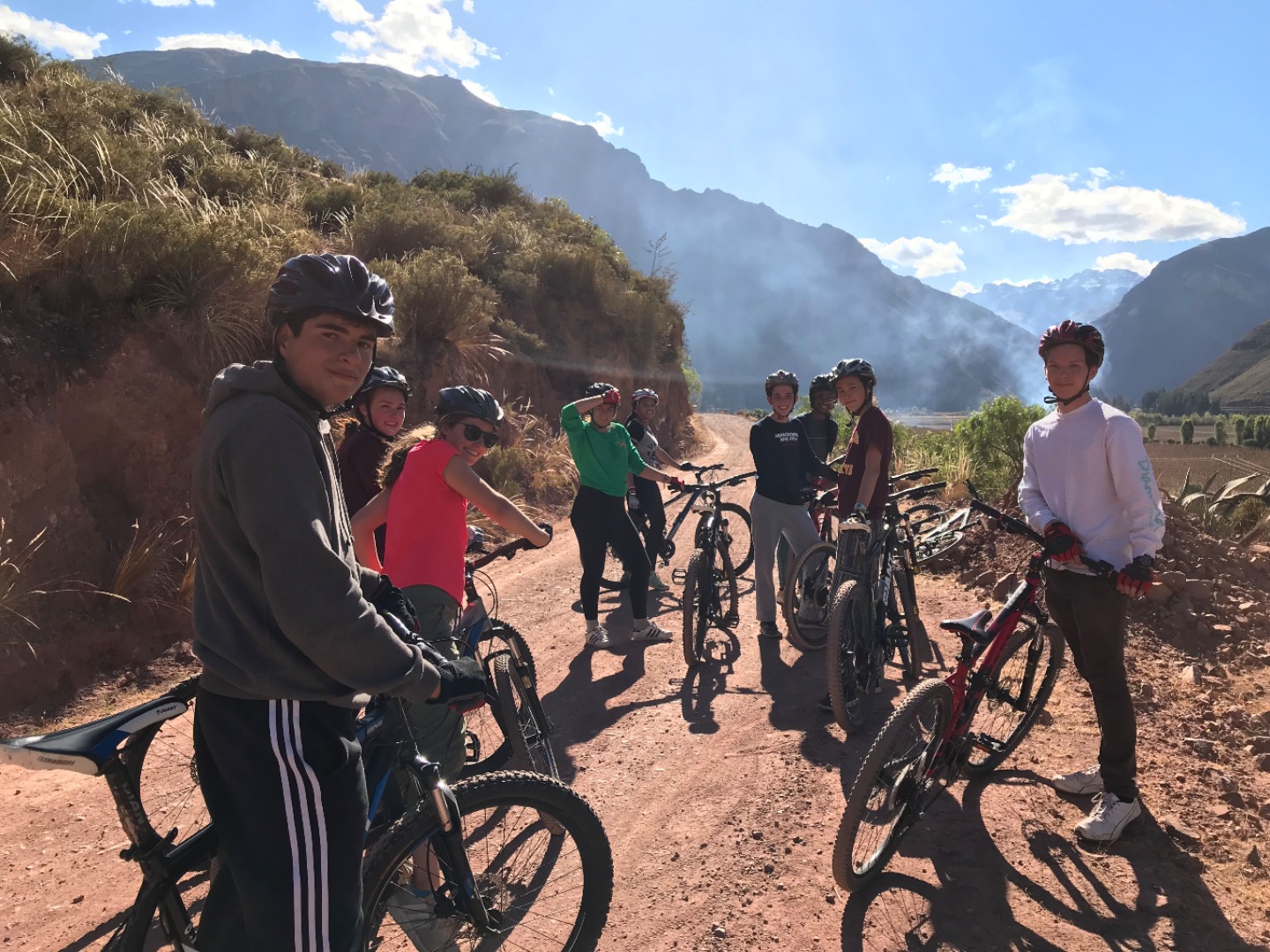 Today was an early morning wake-up to prepare for a 3-hour bus ride to our next hotel. While many of us assumed this meant time to listen to Evan’s playlist or catch up on sleep, we were in for a shock. The ride consisted of 4 stops – the first was an Incan historical site where we climbed added stairs to the many we’ve already done in Cuzco. The best part was the second stop: the alpaca/llama farm. Everyone had fun feeding, petting, and taking pictures with the different types of alpacas. The third stop was a buffet lunch before our final stop of mountain biking. The ride was 1.5 hours for most, while some continued for an extra half hour before the bus collected everyone to bring us to the new hotel. We ended a long day with dinner and a chat about why we are here to do service and what it means. After the heavy conversation, some of the group decided to “relax” with some tea and a show.