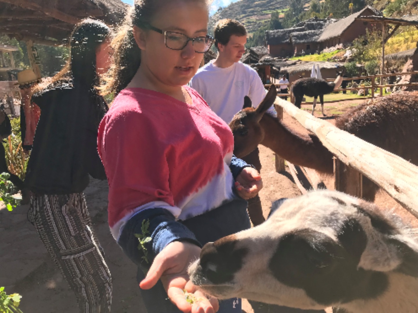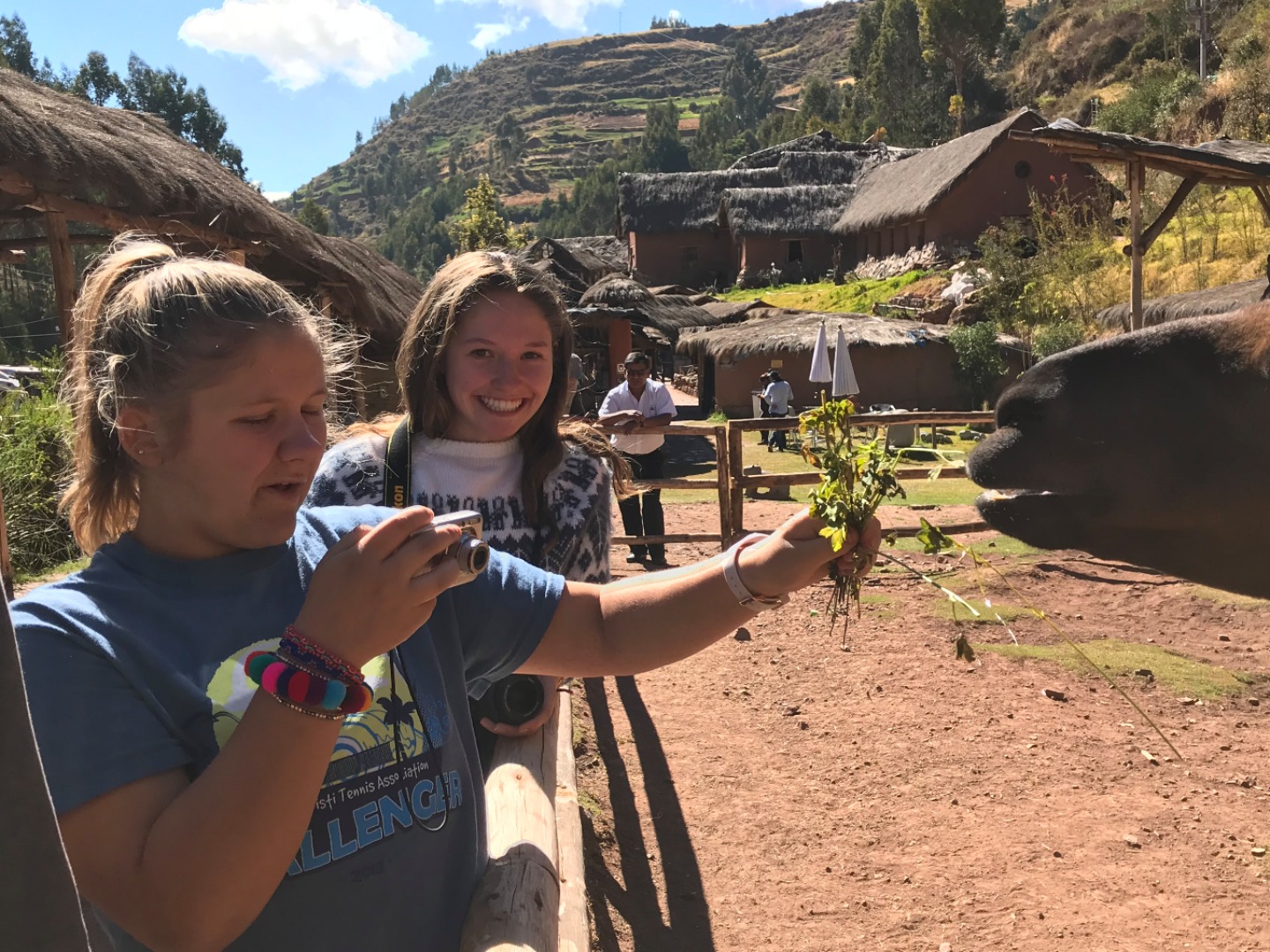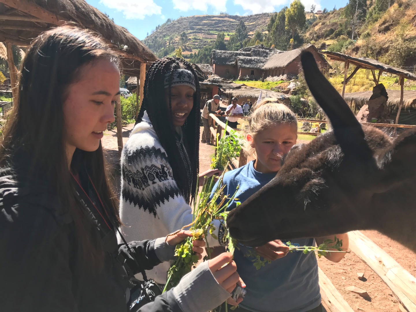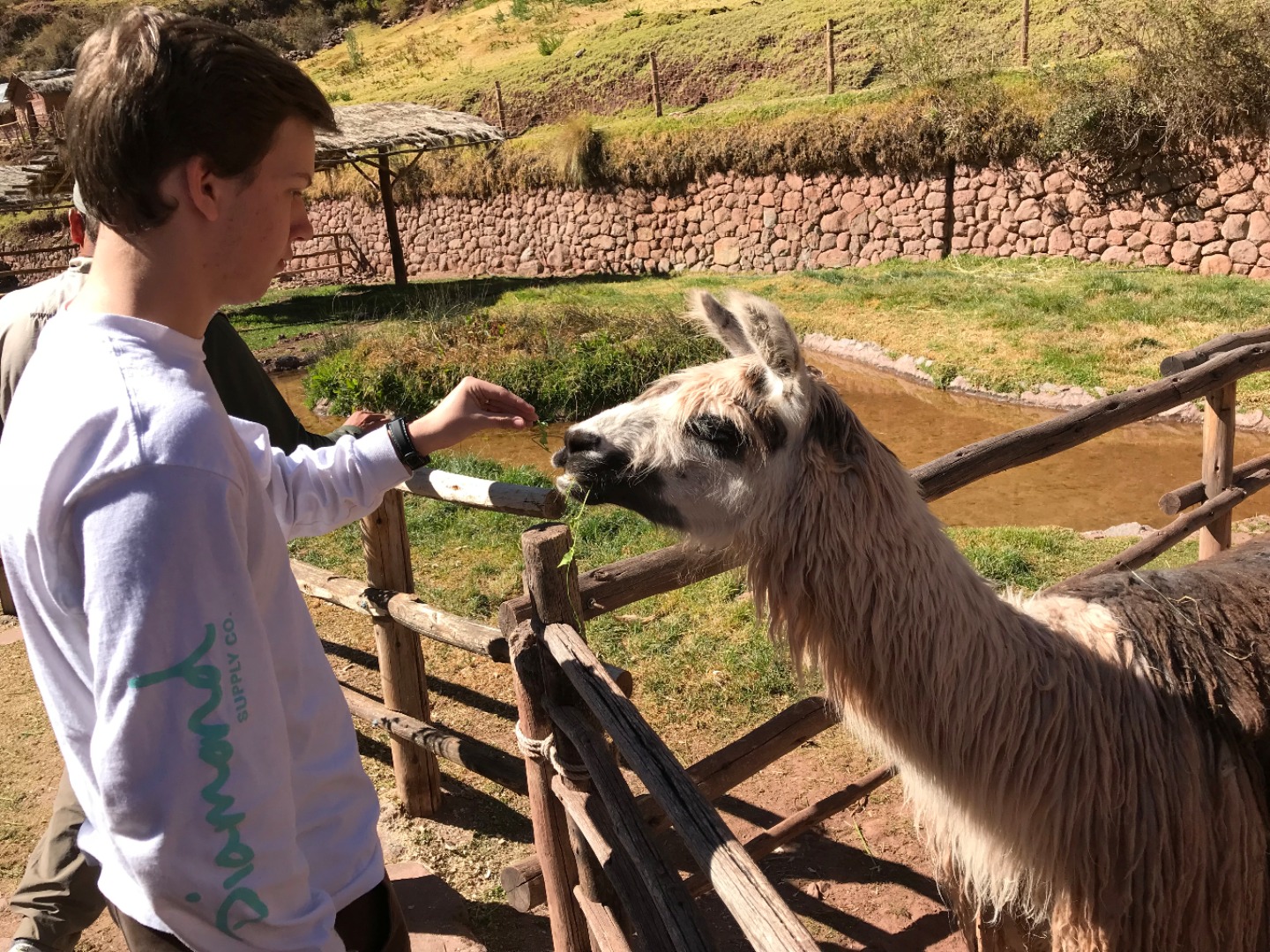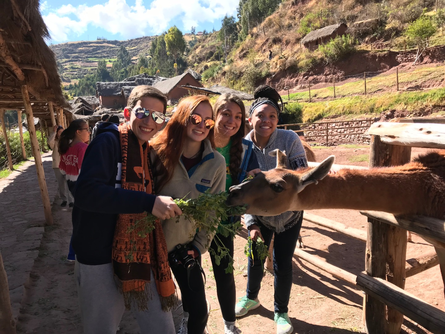 Today was an early morning wake-up to prepare for a 3-hour bus ride to our next hotel. While many of us assumed this meant time to listen to Evan’s playlist or catch up on sleep, we were in for a shock. The ride consisted of 4 stops – the first was an Incan historical site where we climbed added stairs to the many we’ve already done in Cuzco. The best part was the second stop: the alpaca/llama farm. Everyone had fun feeding, petting, and taking pictures with the different types of alpacas. The third stop was a buffet lunch before our final stop of mountain biking. The ride was 1.5 hours for most, while some continued for an extra half hour before the bus collected everyone to bring us to the new hotel. We ended a long day with dinner and a chat about why we are here to do service and what it means. After the heavy conversation, some of the group decided to “relax” with some tea and a show.