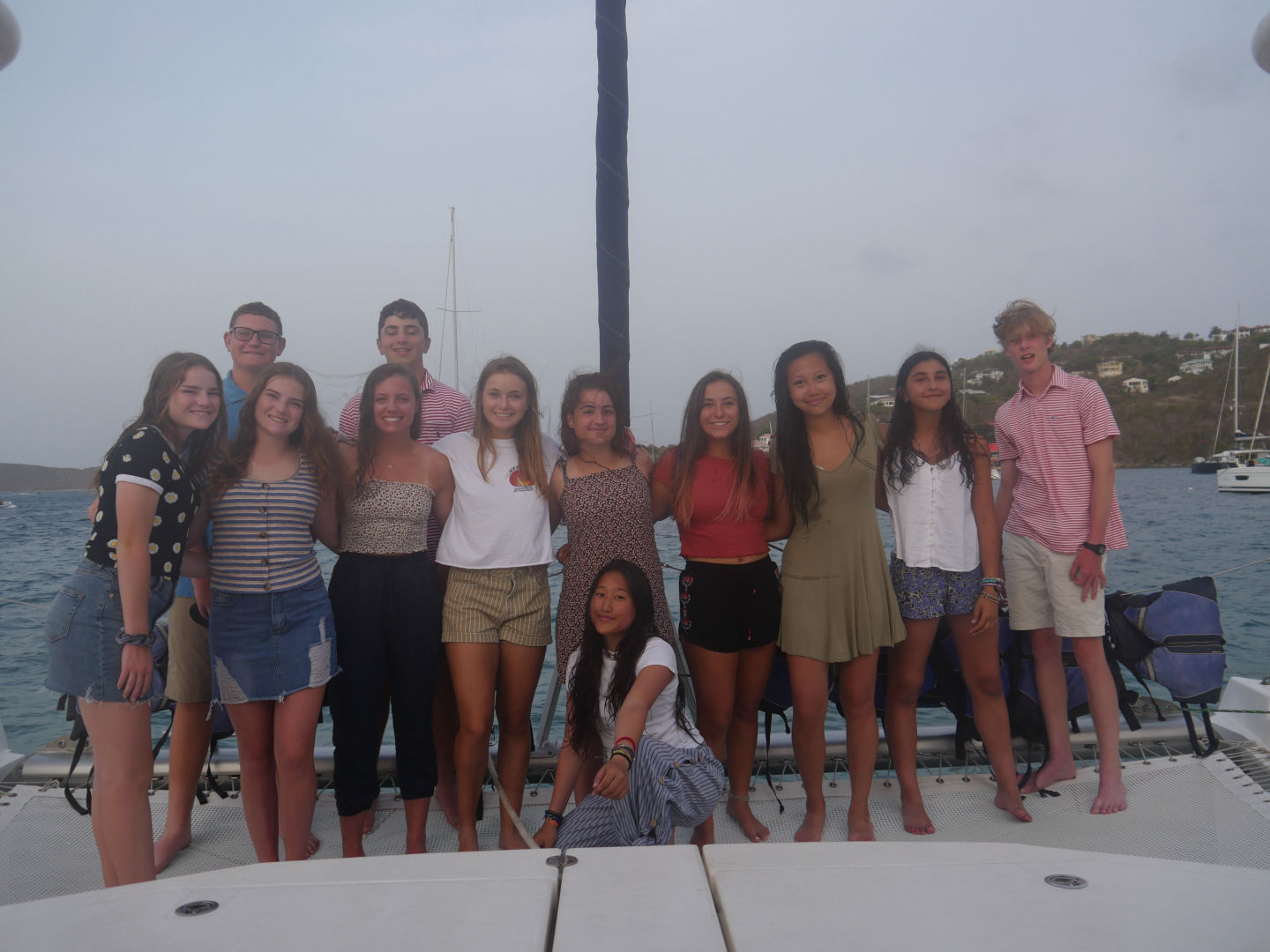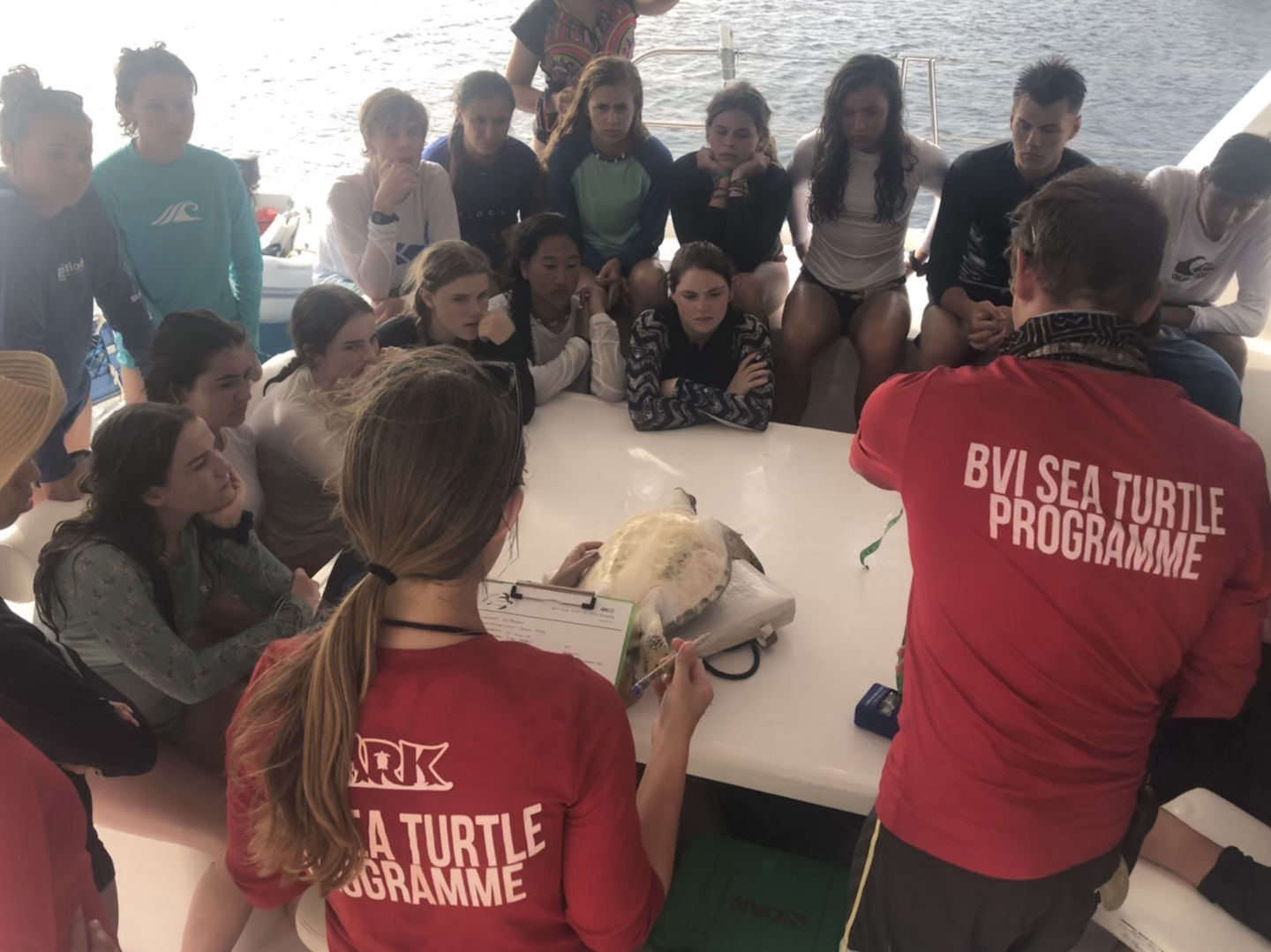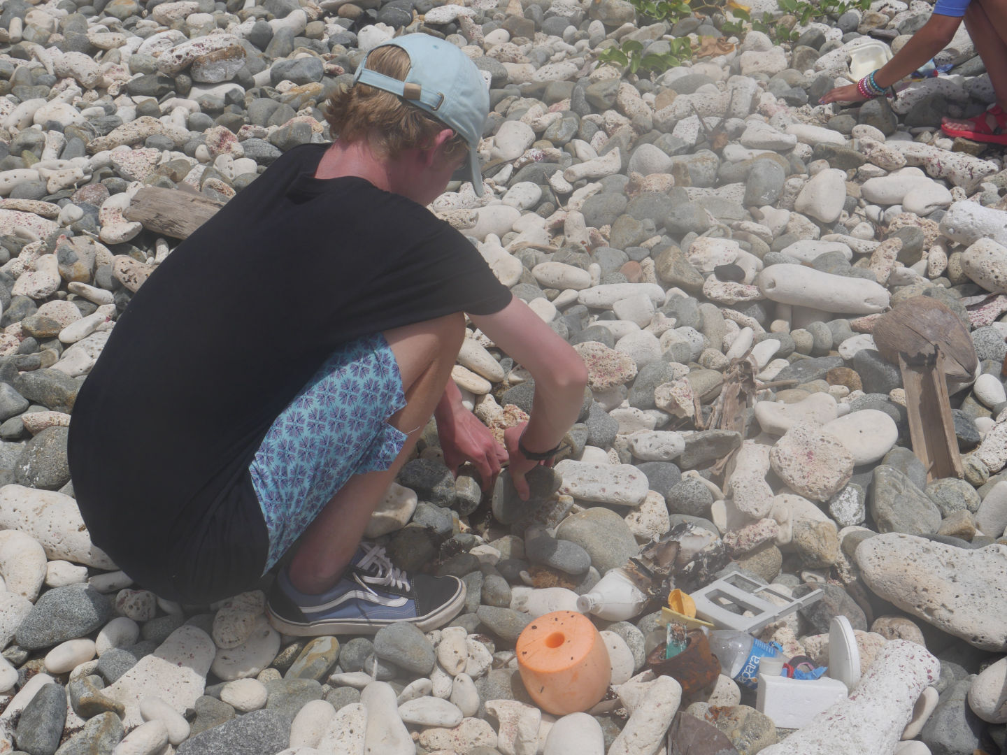 This morning we got to sleep in and woke up to a pancake breakfast. After breakfast, Elliot went over the different types of plastics and their differences. We watched videos and discussed the effects of plastic on animals and the environment. Then we got ready to go and went on a small hike to a rocky beach. There we did a short beach cleanup where we found oil containers, rope, lots of fishing net, and more. When we got back to the boat, we pulled up anchor and sailed to North Sound for our first try at turtle tagging. Elliot and BZ taught us about the importance and basics, and everyone was excited to hop in. We all got in the dinghies and got closer to the shore. Rachel was the first to spot the turtle, and soon, everyone was closely following it. Many people got really close and even touched the turtle, but Fiona caught the turtle and brought it back to the dinghy. We all came back to watch Elliot and BZ collect the data and tag the turtle who was quickly named Fifi. I got to release Fifi, along with the other GoBeyond boat’s Skipper of the Day. After that, everyone was in good spirits as we sailed to Leverick Bay and got ready for the barbecue with all of GoBeyond and ActionQuest. There we had good food, music by DJ HeavyBeatz, and all hung out there until around 10:30. It was a long, but very eventful day.