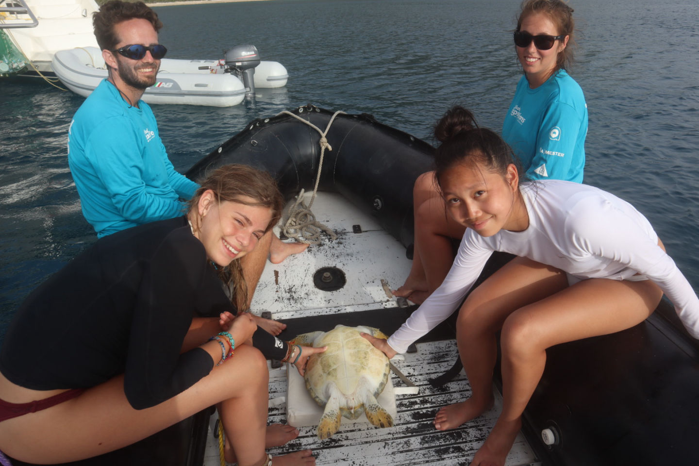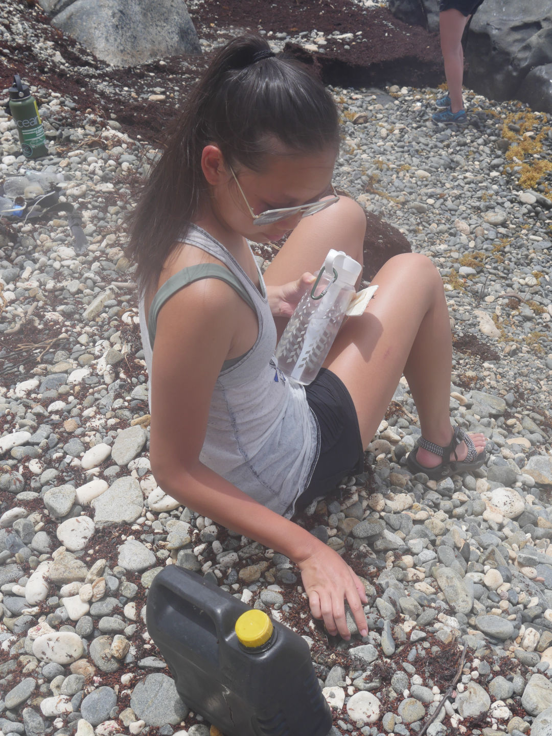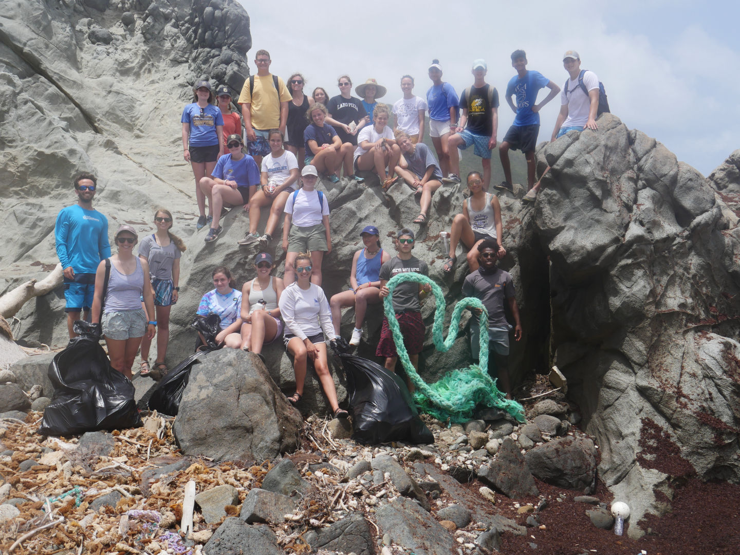 This morning we got to sleep in and woke up to a pancake breakfast. After breakfast, Elliot went over the different types of plastics and their differences. We watched videos and discussed the effects of plastic on animals and the environment. Then we got ready to go and went on a small hike to a rocky beach. There we did a short beach cleanup where we found oil containers, rope, lots of fishing net, and more. When we got back to the boat, we pulled up anchor and sailed to North Sound for our first try at turtle tagging. Elliot and BZ taught us about the importance and basics, and everyone was excited to hop in. We all got in the dinghies and got closer to the shore. Rachel was the first to spot the turtle, and soon, everyone was closely following it. Many people got really close and even touched the turtle, but Fiona caught the turtle and brought it back to the dinghy. We all came back to watch Elliot and BZ collect the data and tag the turtle who was quickly named Fifi. I got to release Fifi, along with the other GoBeyond boat’s Skipper of the Day. After that, everyone was in good spirits as we sailed to Leverick Bay and got ready for the barbecue with all of GoBeyond and ActionQuest. There we had good food, music by DJ HeavyBeatz, and all hung out there until around 10:30. It was a long, but very eventful day.