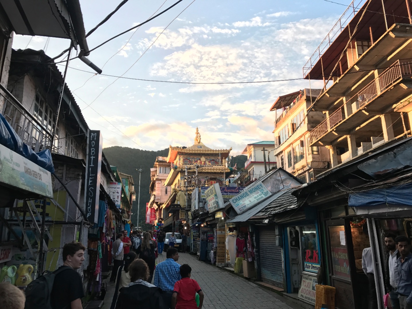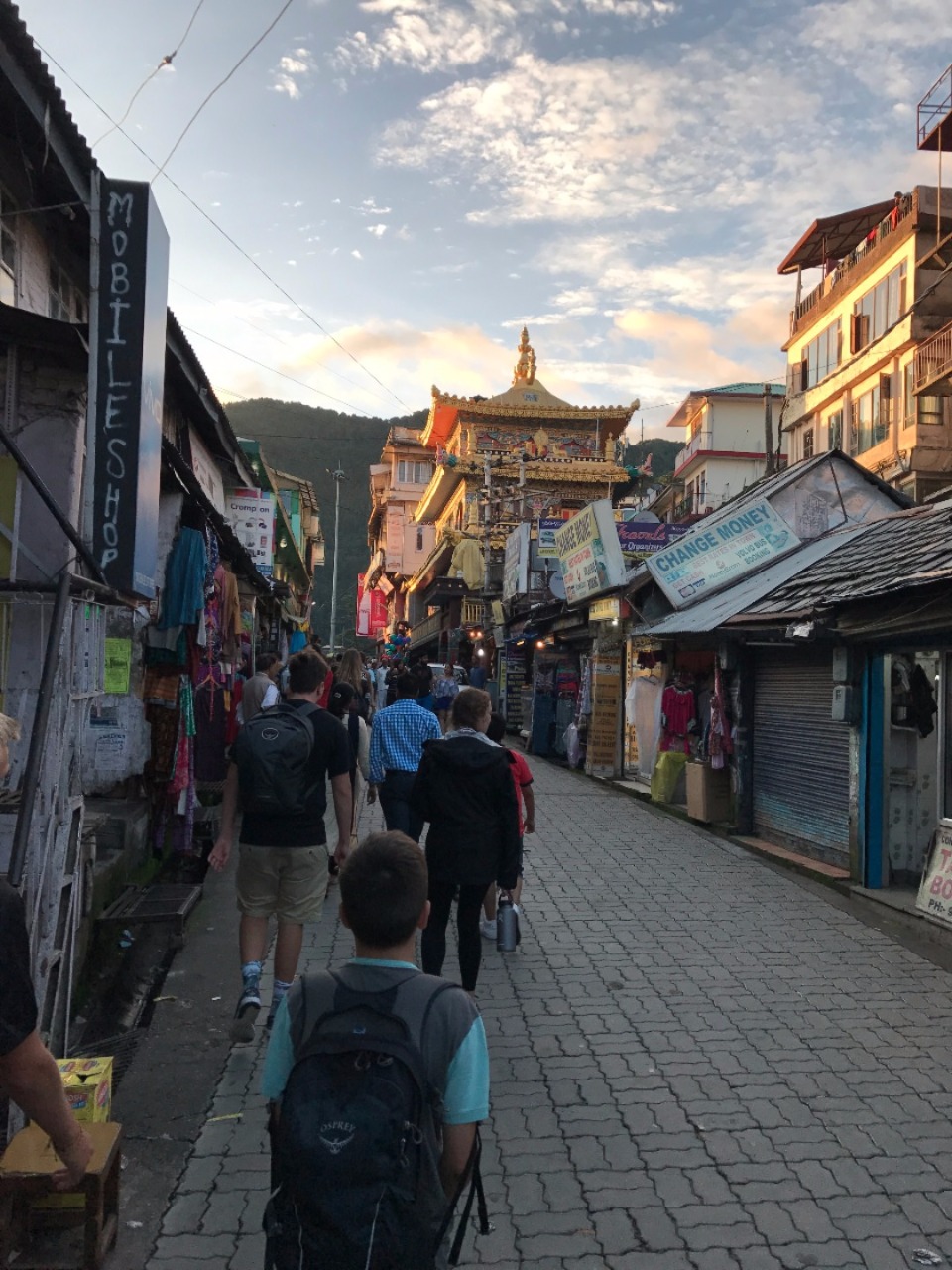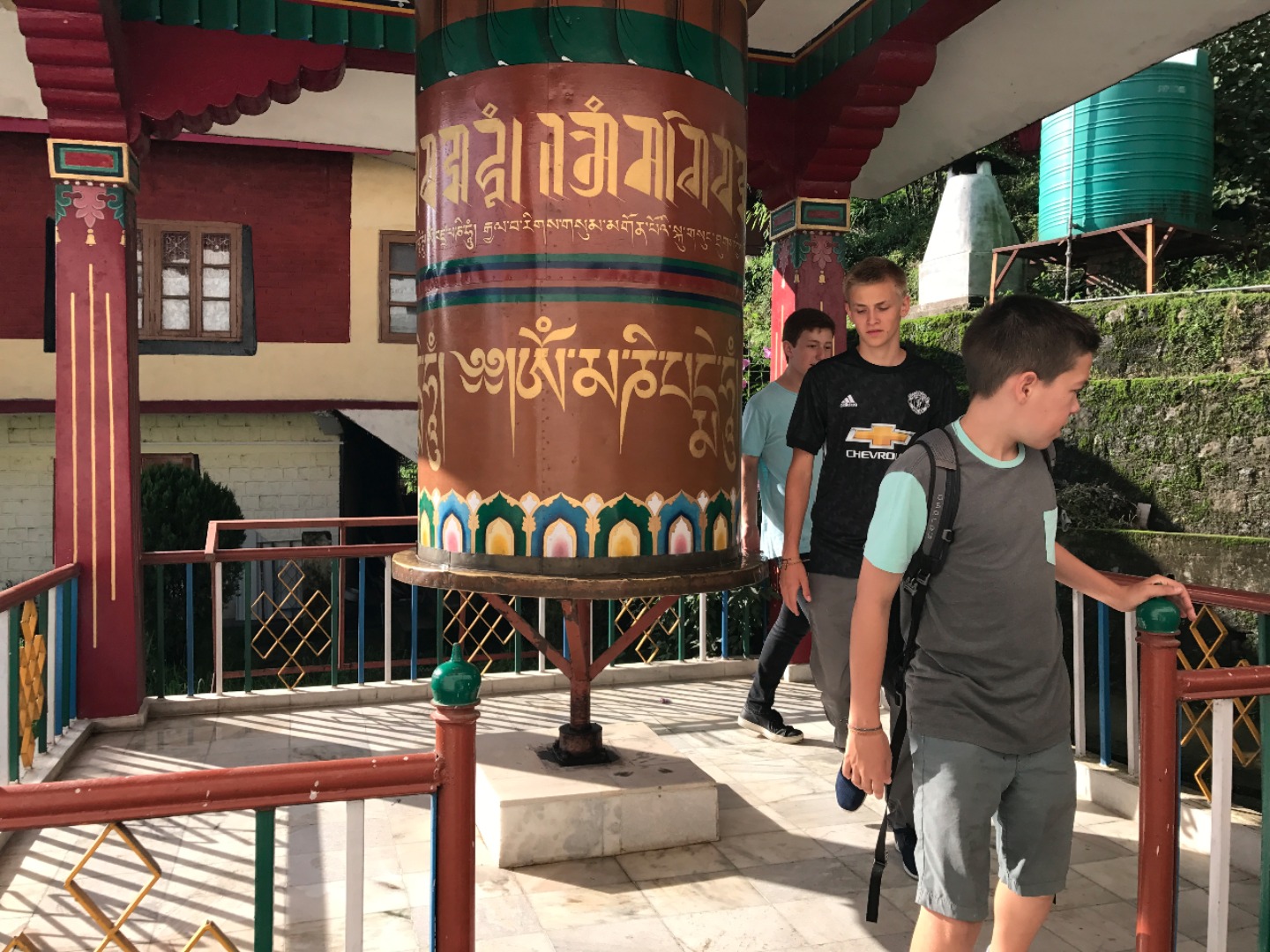 In addition to visiting the Dalai Lama Temple, we walked through the winding streets of Mcleod Ganj and began to see the combination of Tibetan and Indian culture in this town. We are also in an especially good position to experience Tibetan culture because we are staying in a monastery’s guesthouse. This afternoon, we were able to hear the monks chanting, and some of us even got a chance to walk the monastery’s kora, a loop around the monastery’s main temple lined with prayer wheels (cylindrical columns containing Buddhist scripture) to spin and other traditional Tibetan Buddhist structures.