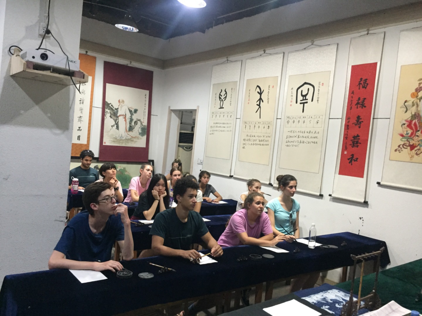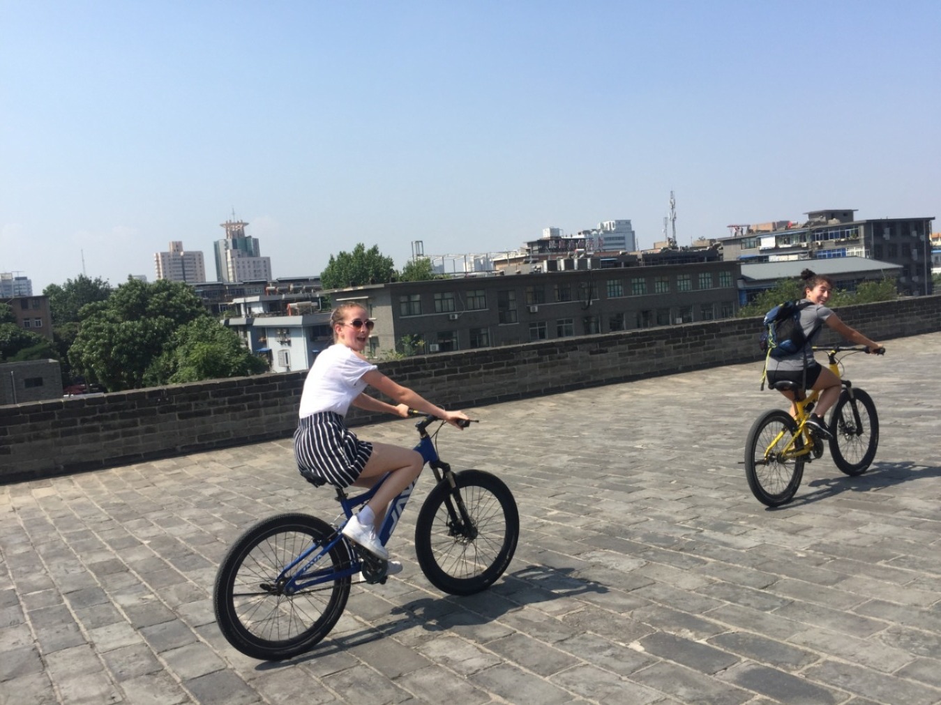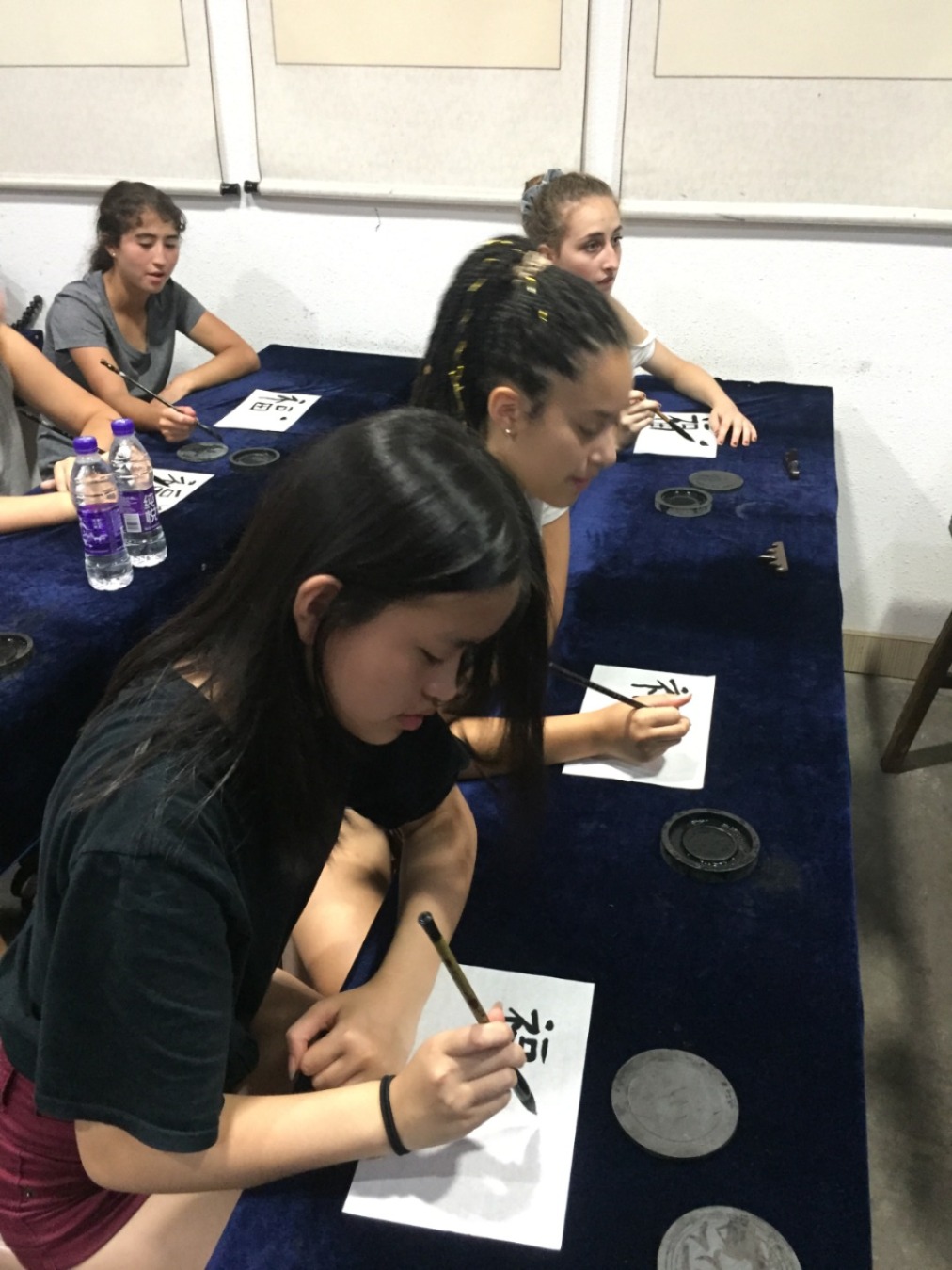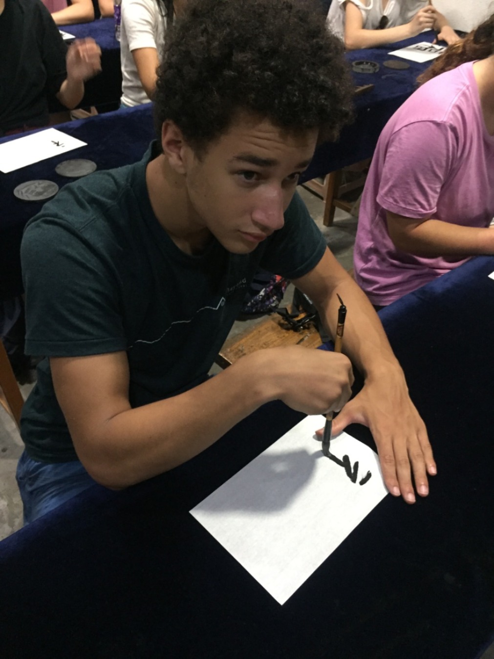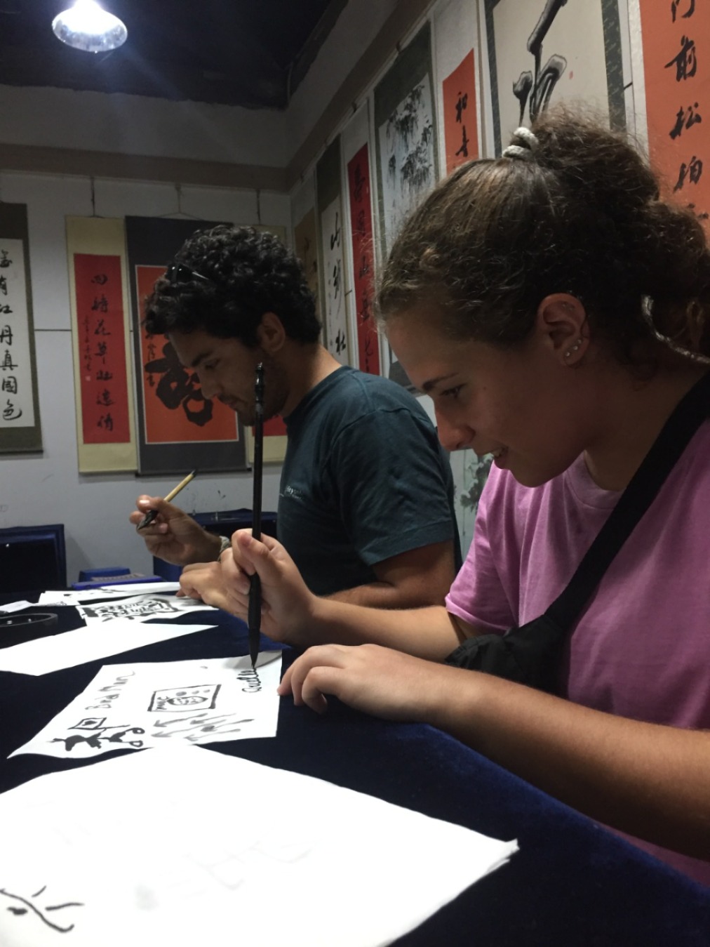 We woke up after an overnight train, and even though I didn’t get a whole lot of sleep, the rest of the group said they slept fine. Then we got to settle into the hotel for 2 hours and ate breakfast. After that, we went to go bike around the Xi’an City Wall. Some biked the whole distance, some biked halfway, and some only biked for a few minutes before heading back due to the 100-degree weather. After that, we did some calligraphy with a very nice man, and all I have to say is that it was very hard and much respect to anyone who can actually do that. Since I struggled way too much with the calligraphy, the world was instead blessed with my dear creation Bird Man (Evan will insert a photo somewhere of my drawing). After that, we went to Muslim street where we all bargained and collected many fake designer items or just cool small trinkets. I think I can safely say that most of us are bargaining EXPERTS. We scavenged for our own dinners there and explored a mall for a little. It was an eventful day, and I am ready to go to sleep, so I am ending this now. Goodnight.- – – – – – – – – – – – – – – – – – – – – – – – – – – – – – – – – – – – – – – – – – – – – – – – – – – – – – – – – – – – – – – – – – – – – – – – – – – – – – – – – – – – – – – – – – – – – – – – – – – – – – – – – – – – – – – – – – – -Here are some fun facts provided to you by Jake: Population Density inside walls — 4x Manhattan Population Density total city — 50x less than Manhattan population total city size — 7000 km^2City size inside wall — 5km^2Population inside city walls, 3 million population outside city walls, 9 million***Only city wall fully intact from one end all the way around the other in the entirety of China***