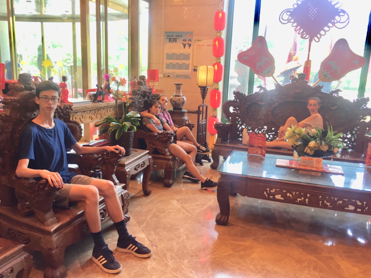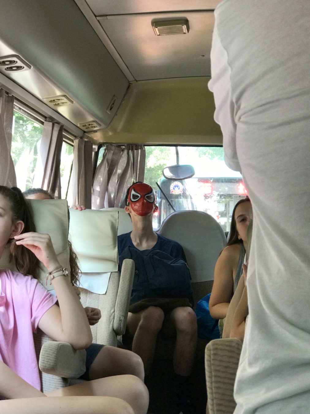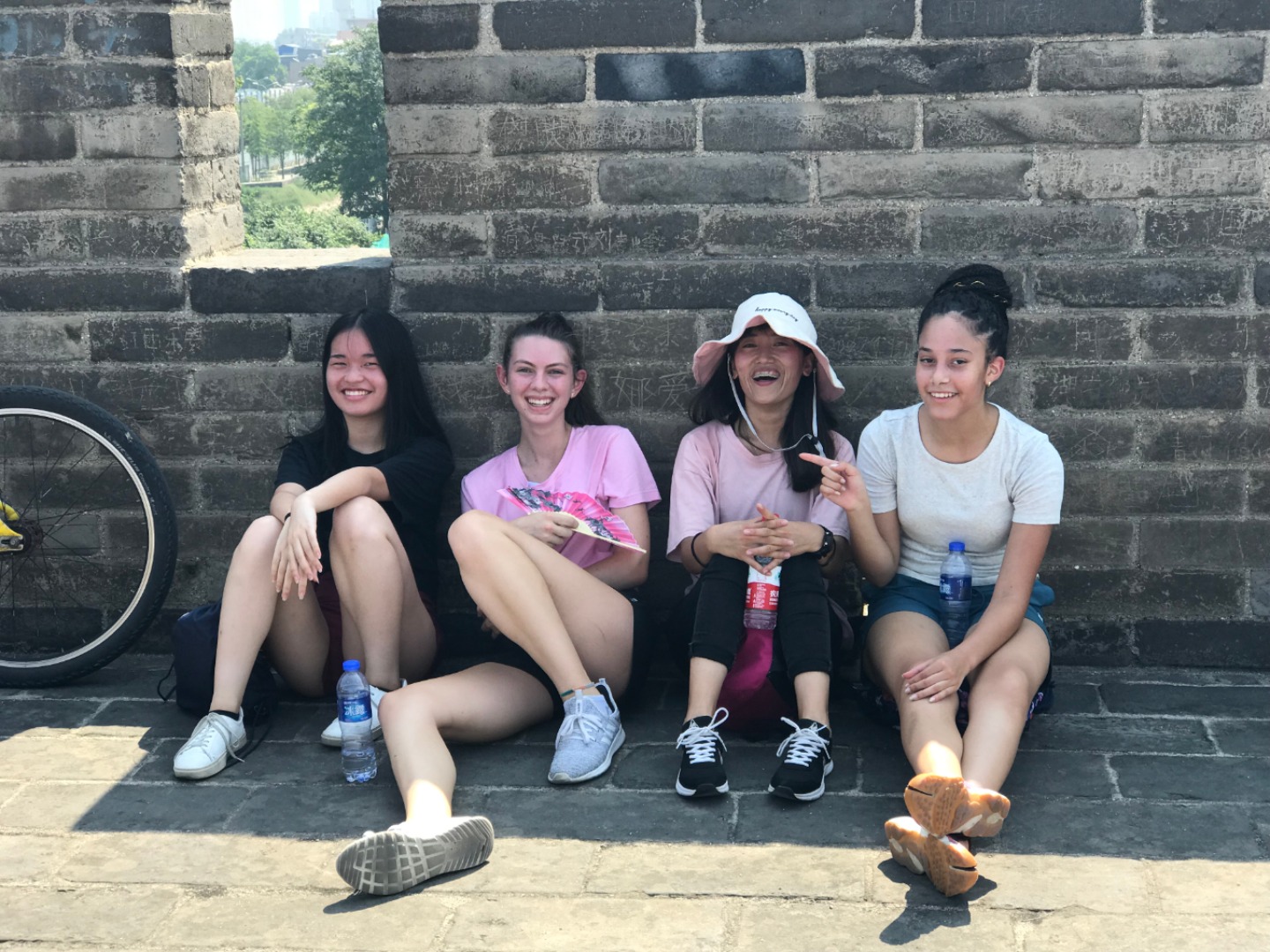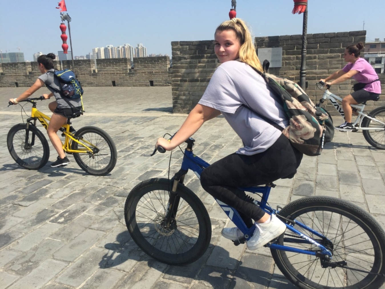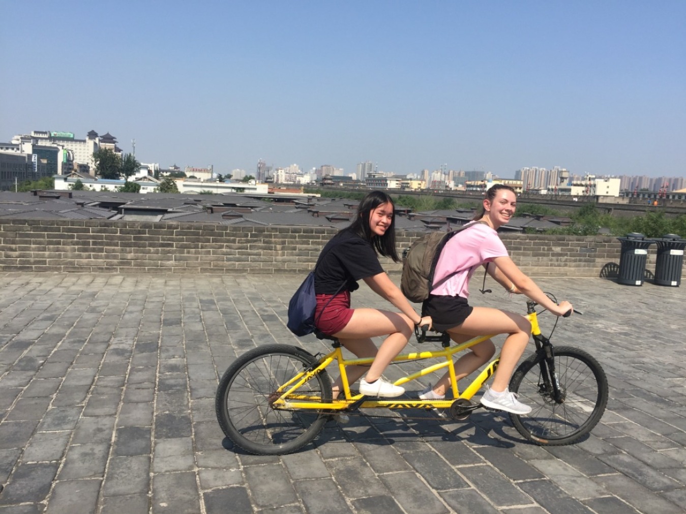 We woke up after an overnight train, and even though I didn’t get a whole lot of sleep, the rest of the group said they slept fine. Then we got to settle into the hotel for 2 hours and ate breakfast. After that, we went to go bike around the Xi’an City Wall. Some biked the whole distance, some biked halfway, and some only biked for a few minutes before heading back due to the 100-degree weather. After that, we did some calligraphy with a very nice man, and all I have to say is that it was very hard and much respect to anyone who can actually do that. Since I struggled way too much with the calligraphy, the world was instead blessed with my dear creation Bird Man (Evan will insert a photo somewhere of my drawing). After that, we went to Muslim street where we all bargained and collected many fake designer items or just cool small trinkets. I think I can safely say that most of us are bargaining EXPERTS. We scavenged for our own dinners there and explored a mall for a little. It was an eventful day, and I am ready to go to sleep, so I am ending this now. Goodnight.- – – – – – – – – – – – – – – – – – – – – – – – – – – – – – – – – – – – – – – – – – – – – – – – – – – – – – – – – – – – – – – – – – – – – – – – – – – – – – – – – – – – – – – – – – – – – – – – – – – – – – – – – – – – – – – – – – – -Here are some fun facts provided to you by Jake: Population Density inside walls — 4x Manhattan Population Density total city — 50x less than Manhattan population total city size — 7000 km^2City size inside wall — 5km^2Population inside city walls, 3 million population outside city walls, 9 million***Only city wall fully intact from one end all the way around the other in the entirety of China***