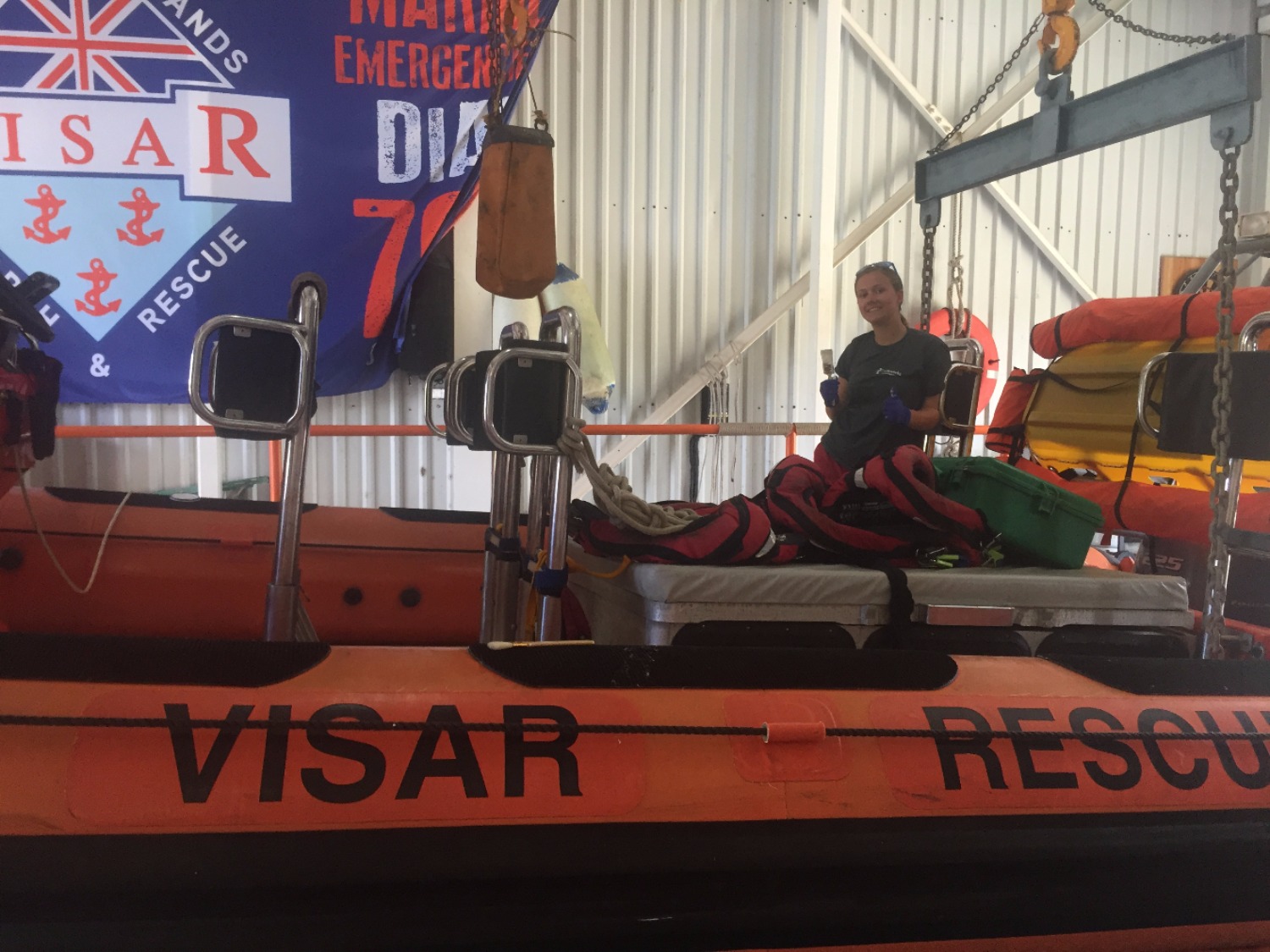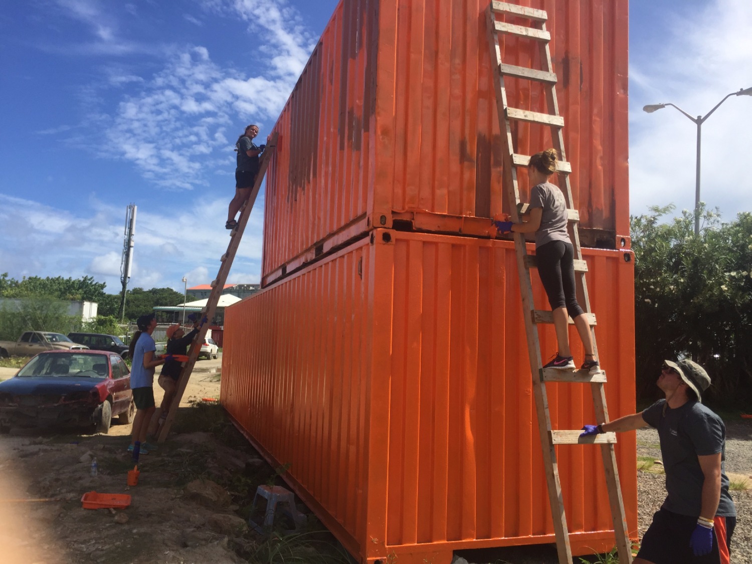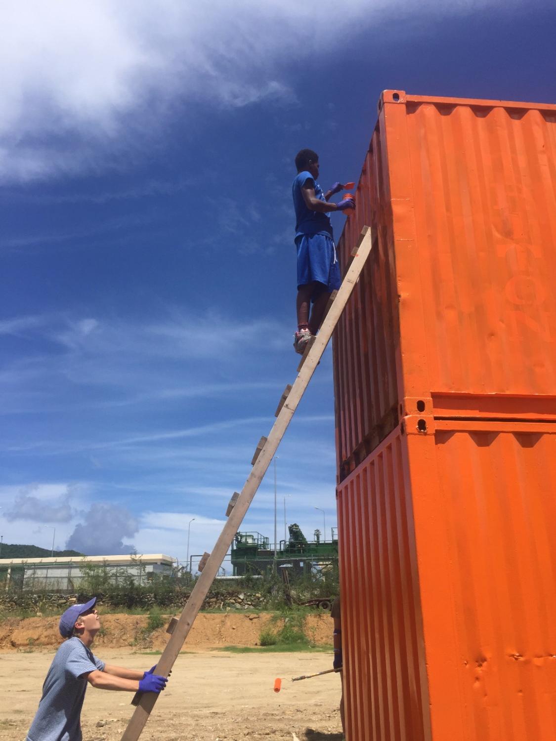 Today was a long workday. After waking up to a steaming plate  of delicious eggs, we went on dinghies to  the VISAR headquarters. A man in a  black uniform spoke in front of us in a cold room. With a wounded finger, I  wasn’t much help while I assisted with painting two huge crates. Bright  orange paint ruined my clothes and stained my skin but still did not ruin my  amazing time helping out with VISAR. Later all of Lifeworks took turns on  VISAR’s super fast dinghy. I felt my face being ripped backwards from  momentum as the dinghy sped through the water. My friends and I ate a  delicious pizza for dinner and then ate vanilla ice cream out of a carton. There were no spoons so we all used forks and had a joyful time. Finally, we  made complicated friendship bracelets with a white string. Today is  definitely one of the best days of the trip so far.
