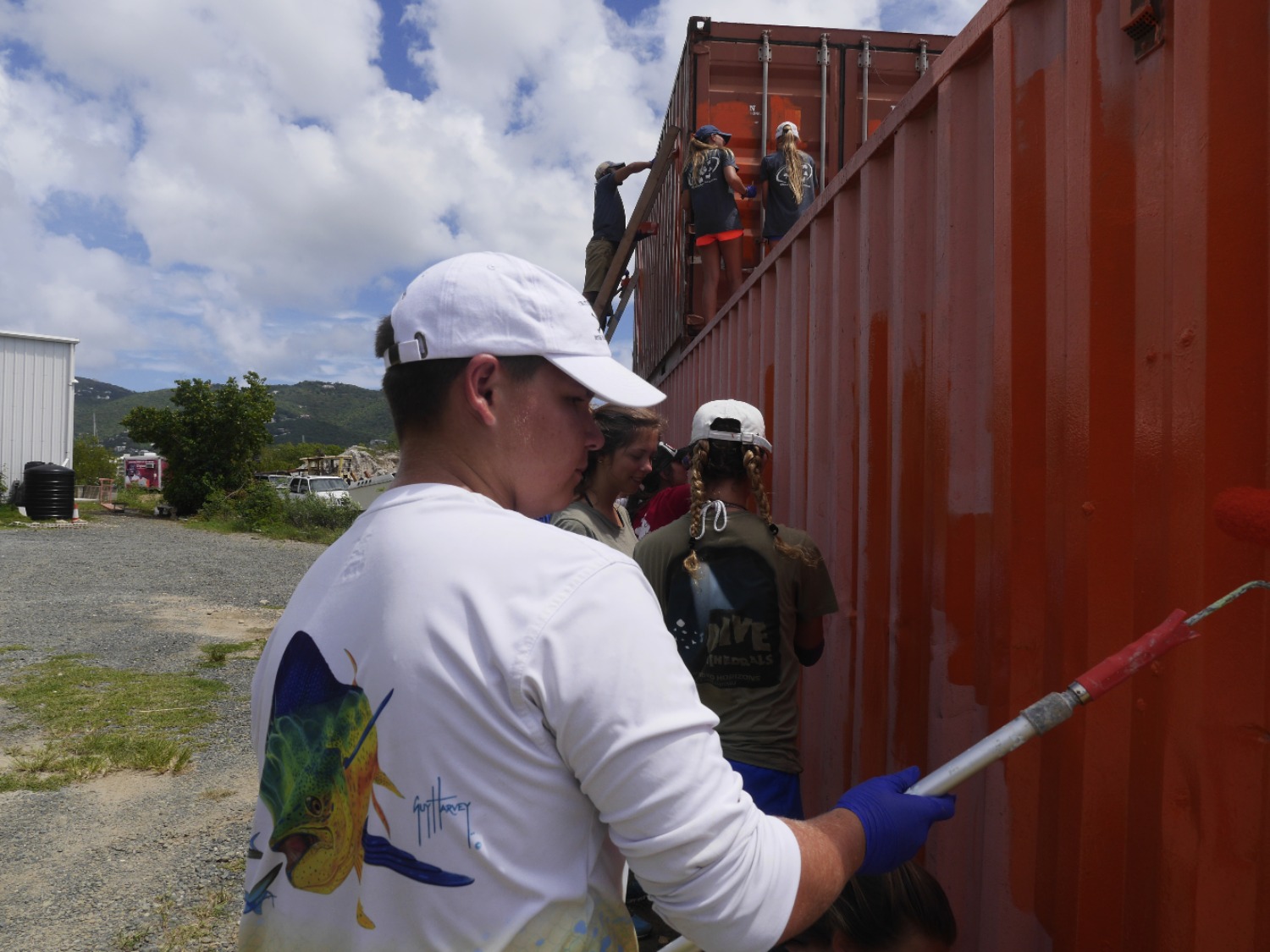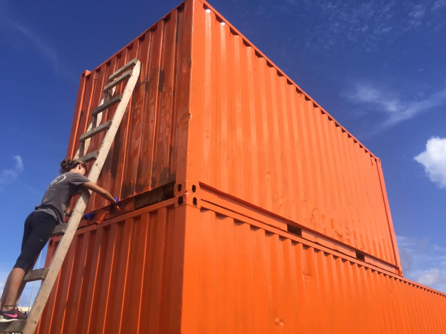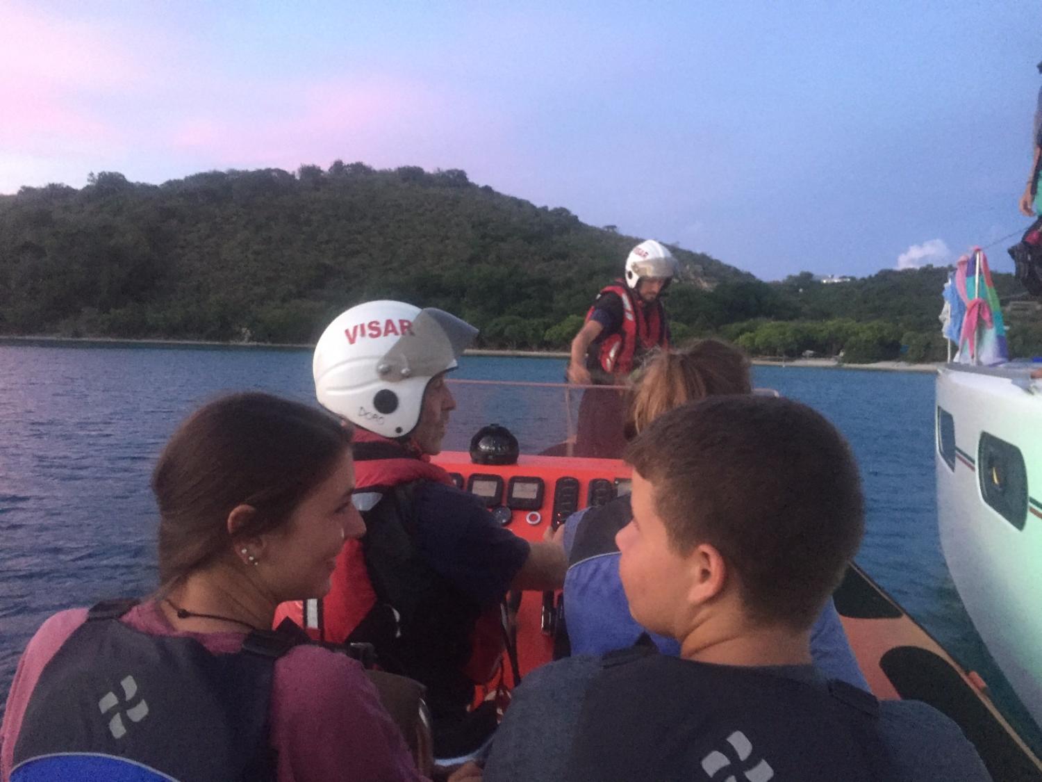 Today was a long workday. After waking up to a steaming plate  of delicious eggs, we went on dinghies to  the VISAR headquarters. A man in a  black uniform spoke in front of us in a cold room. With a wounded finger, I  wasn’t much help while I assisted with painting two huge crates. Bright  orange paint ruined my clothes and stained my skin but still did not ruin my  amazing time helping out with VISAR. Later all of Lifeworks took turns on  VISAR’s super fast dinghy. I felt my face being ripped backwards from  momentum as the dinghy sped through the water. My friends and I ate a  delicious pizza for dinner and then ate vanilla ice cream out of a carton. There were no spoons so we all used forks and had a joyful time. Finally, we  made complicated friendship bracelets with a white string. Today is  definitely one of the best days of the trip so far.