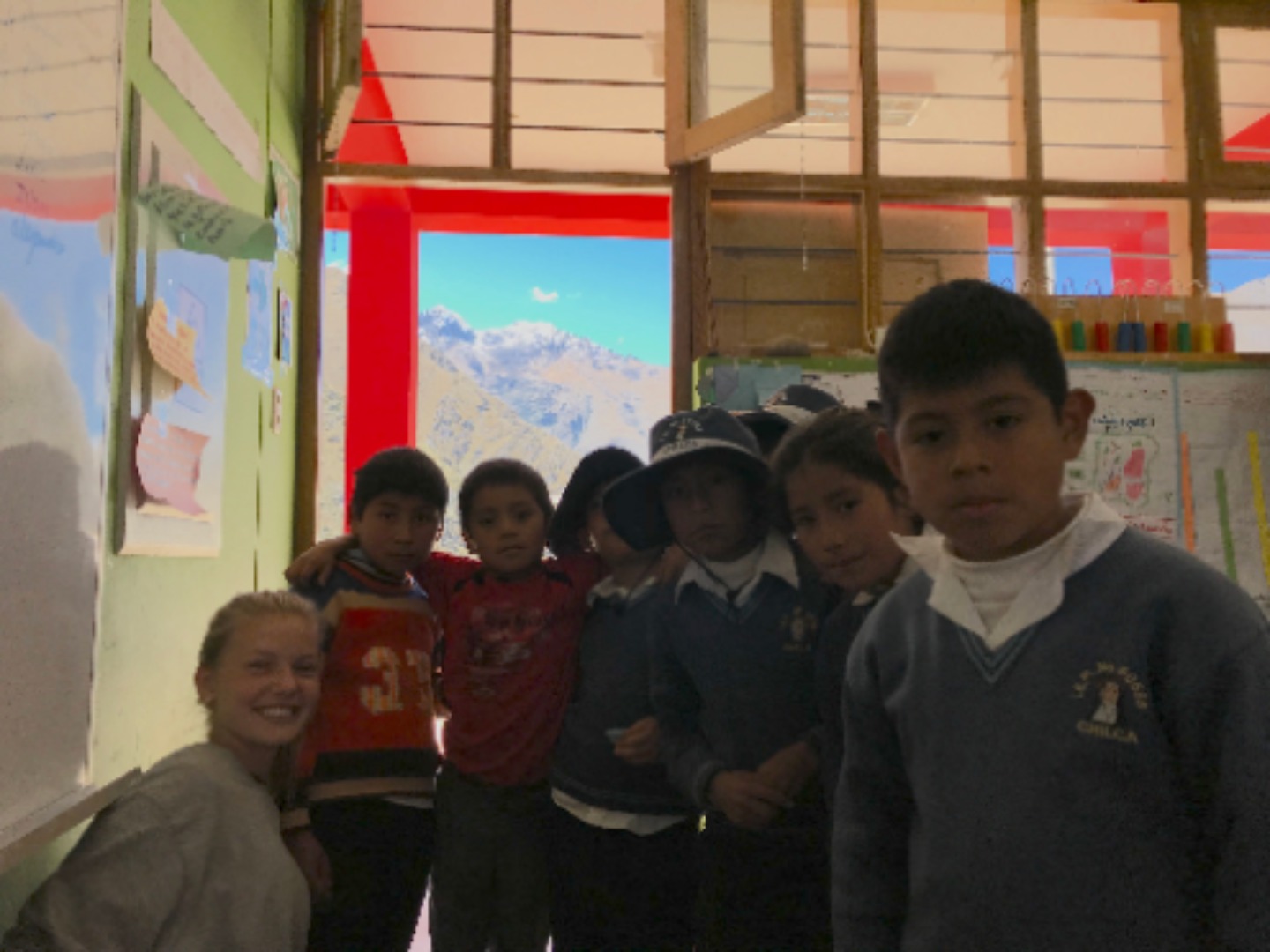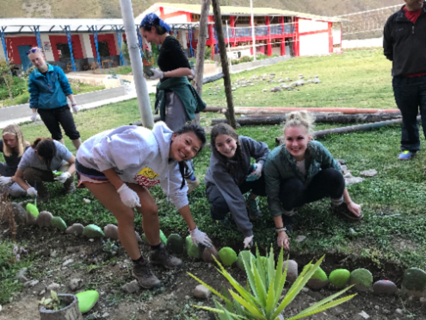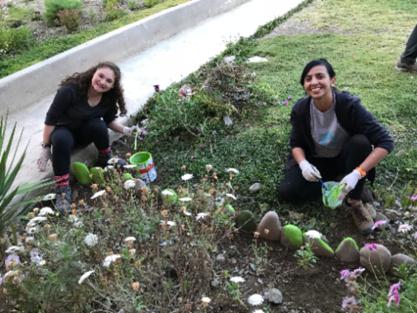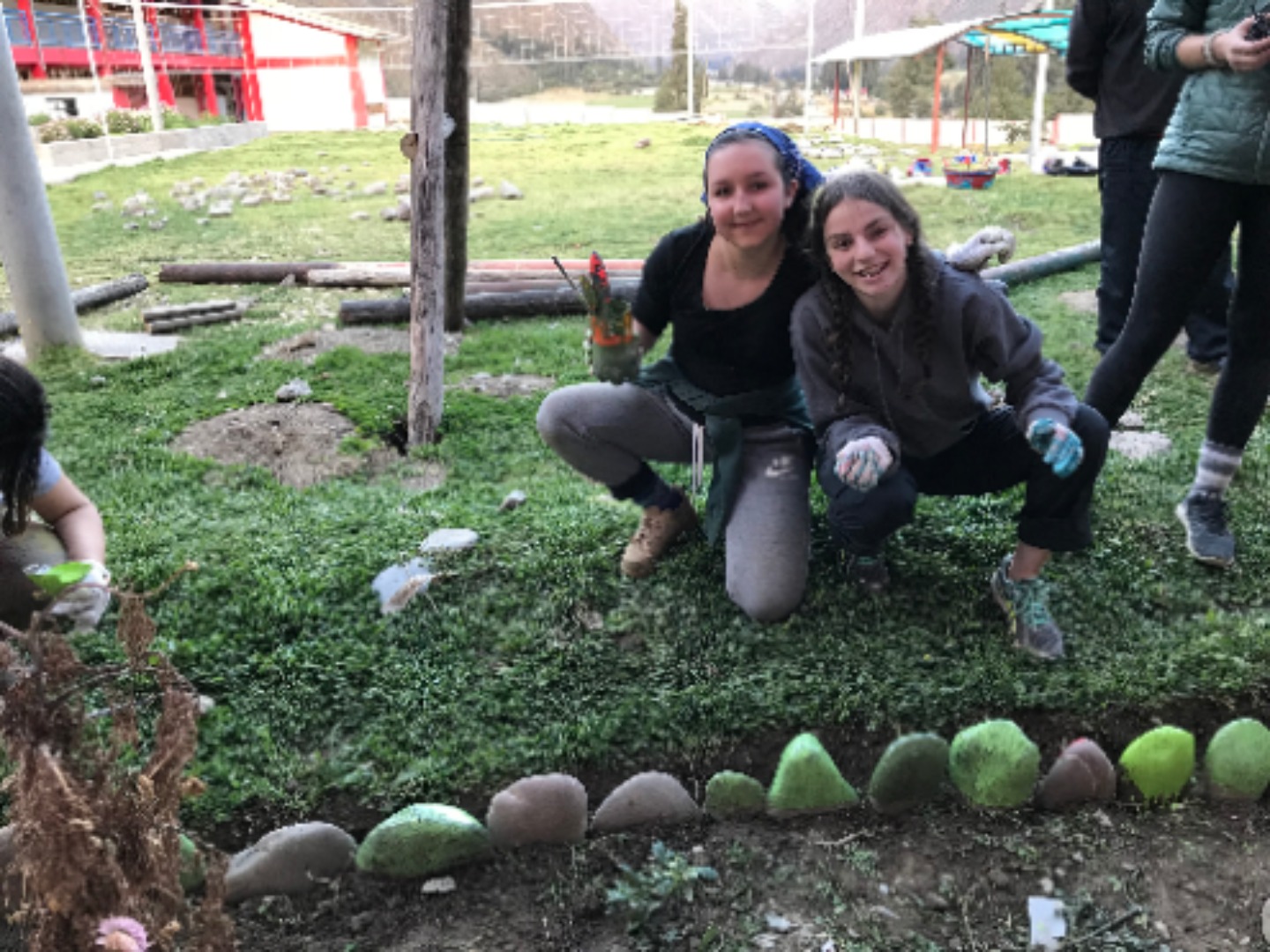 Today we all woke up early and got on the bus to go to Chilca, a colorful school surrounded by pretty mountains. The bus was about to leave when the battery died, so we had to take another bus to get to the school. The kids were so welcoming and excited when we arrived. I made friends with this little girl Daniela while playing volleyball before English class. Afterward, we taught first and second graders how to say numbers and their name in English. The children were very cute and ready to learn. I loved getting to spend time with the kids and learn about them all. A while after, we collected, washed, and painted stones to spread around the garden. Gabi, Kaylee, and I all accidentally touched a leech(?) while cleaning rocks. However, we were okay and had a lot of fun being scared of leeches(?). The stones all ended up looking great and the day was so much fun.