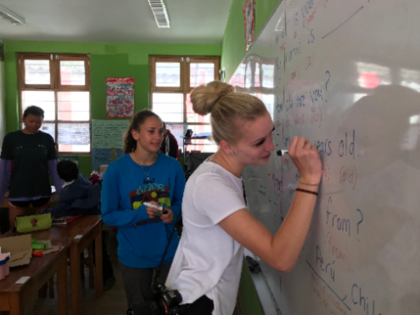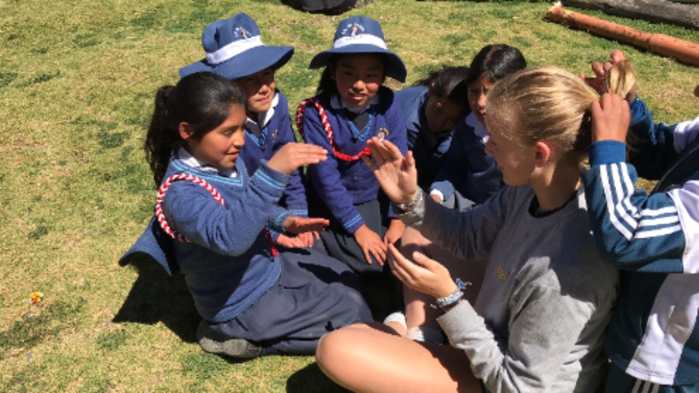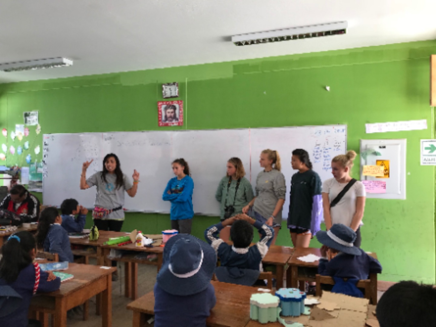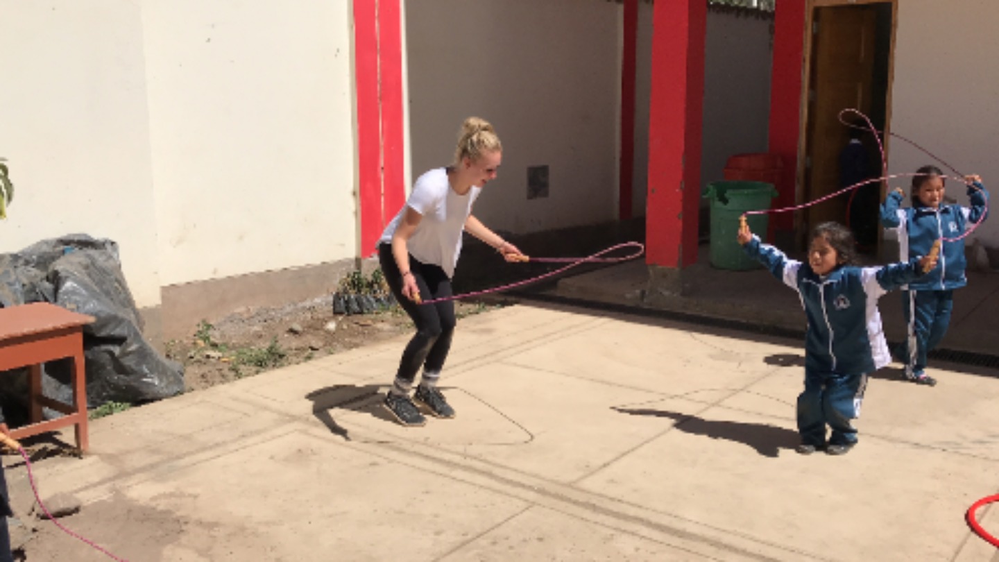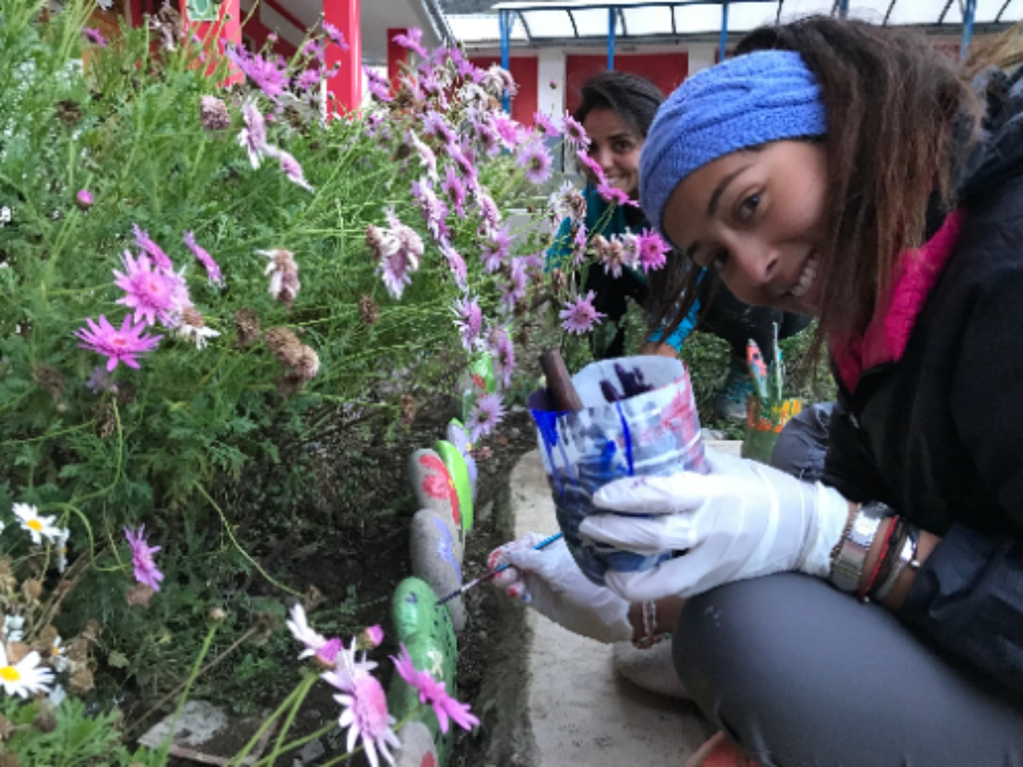 Today we all woke up early and got on the bus to go to Chilca, a colorful school surrounded by pretty mountains. The bus was about to leave when the battery died, so we had to take another bus to get to the school. The kids were so welcoming and excited when we arrived. I made friends with this little girl Daniela while playing volleyball before English class. Afterward, we taught first and second graders how to say numbers and their name in English. The children were very cute and ready to learn. I loved getting to spend time with the kids and learn about them all. A while after, we collected, washed, and painted stones to spread around the garden. Gabi, Kaylee, and I all accidentally touched a leech(?) while cleaning rocks. However, we were okay and had a lot of fun being scared of leeches(?). The stones all ended up looking great and the day was so much fun.