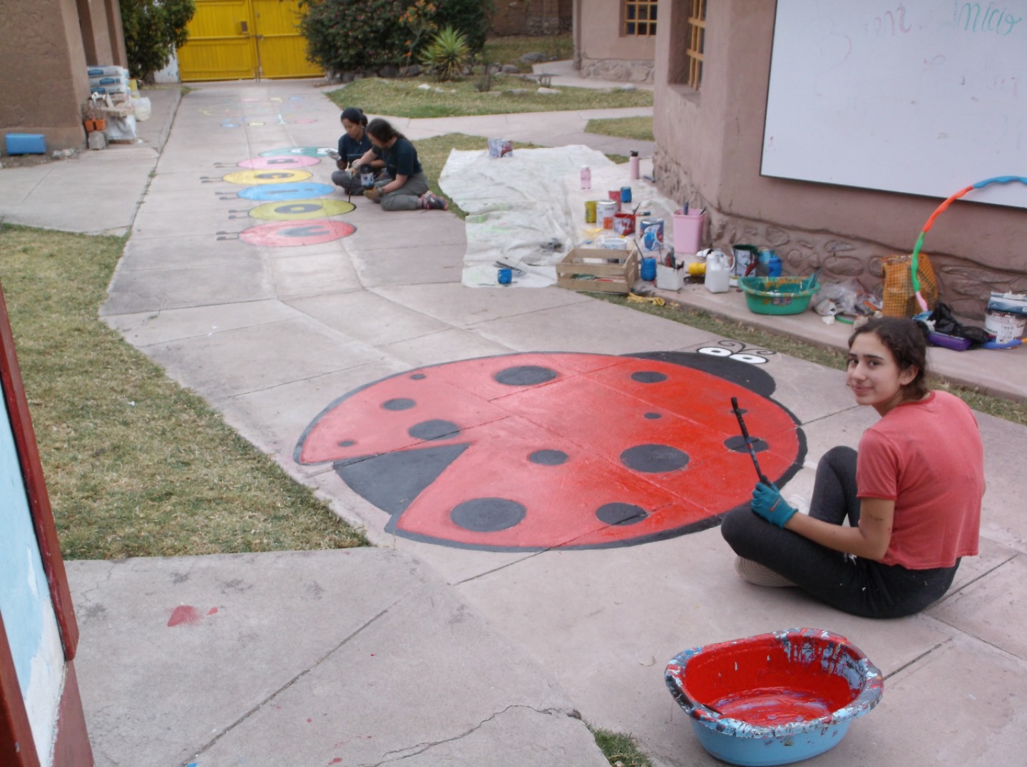 Our day began a little later than usual, and off we went to another beautiful school to work at. This school is for disabled children and today was a special day for them, so they were able to get out of school earlier, at 1:30 pm. As for the Go Beyond group, we all began in the garden, planting, and weeding. Our second job consisted of painting on the ground, such as a giant ladybug, a numbered snake, and the days of the week. We then broke for a quick lunch before heading back to our paintings, except for Bella, who decided to work in the classroom with a couple of students left. Our afternoon under the sun was spent finishing the final touches of our paintings, then sanding and painting tires. Our day ended, and we all returned to the hostel after this long day of work. After relaxing and showering, we ate dinner at this very nice restaurant (El Albergue Ollantaytambo) next to the train station. And this was our day!