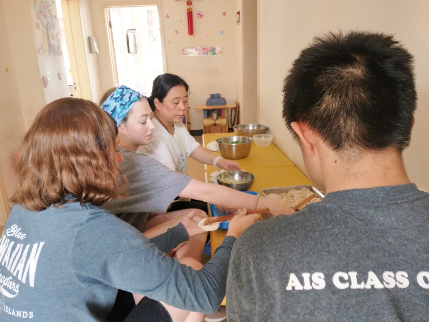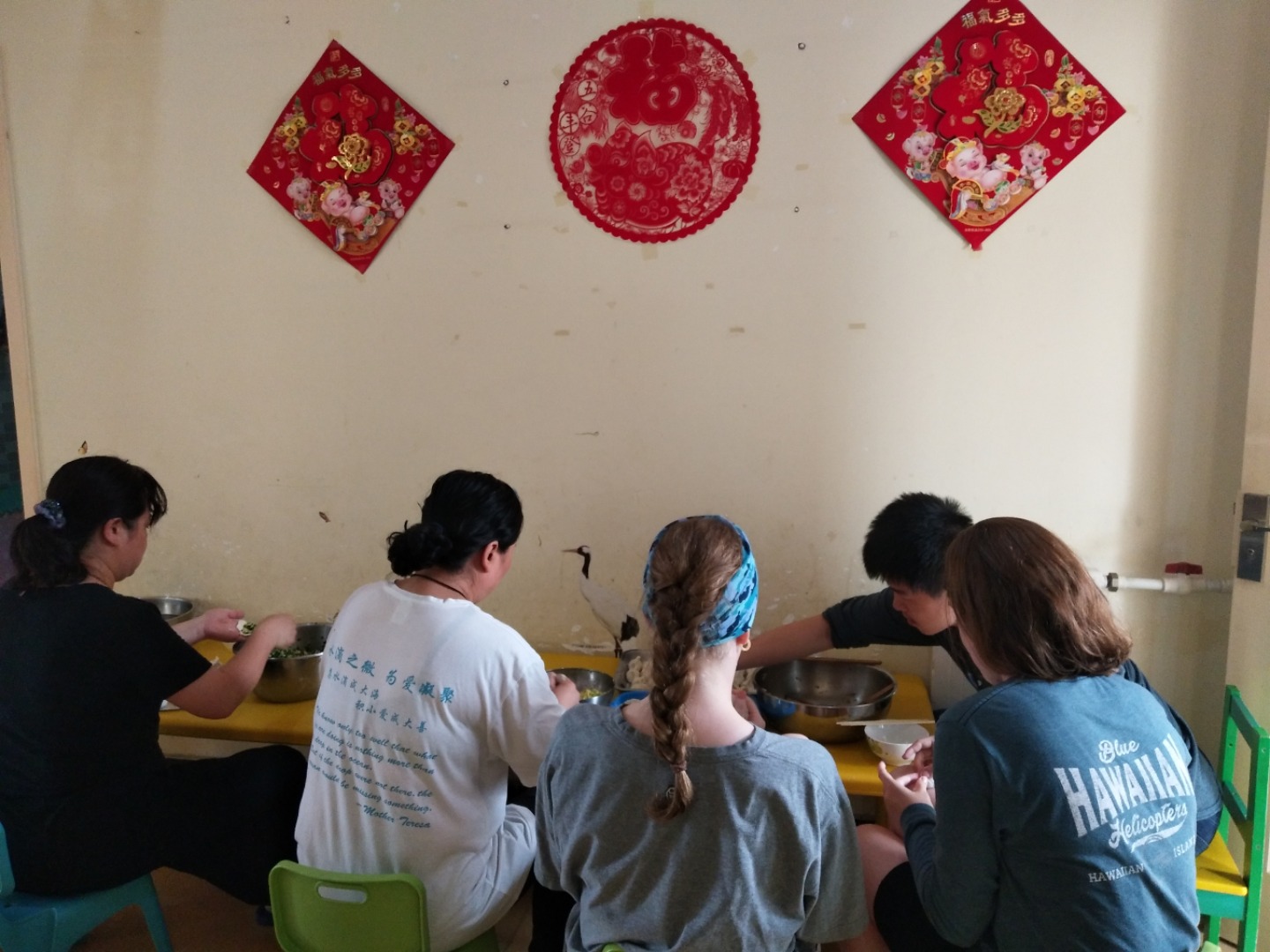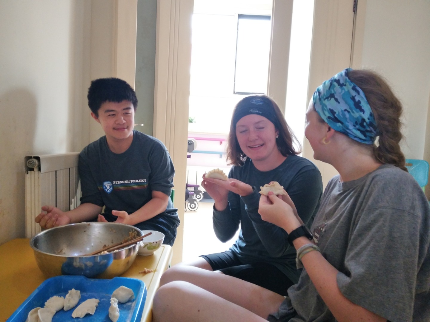 Today was a WILD day that started off pretty ordinary. We began the morning with our typical breakfast, followed by a long conversation about whatever random topic we felt like discussing that day. After, we went to do some service in the orphanage. For lunch, we had amazing handmade dumplings, made by our fellow group members, of course. Dumplings are delicious, to begin with, but when they’re homemade they’re even better. We continued service after lunch, and I really bonded with this little boy I named Robert (of course, I have no idea if that’s his real name but let’s use our imaginations.) For dinner, we ate at an authentic Chinese noodle place. From there, the fun started. On our way to dinner, some members of our group spotted a fake Gucci visor with Peppa Pig on it. Logically, we had to stop and buy the store out. By some coincidence, we passed by a bunch of Chinese ladies doing a dance outside of our hotel. What else were we supposed to do except for join in? After our dancing excursion, we went back to the Peppa visor store and bought almost every single one. We then returned to the hotel for our trip forum discussion, which was promptly crashed by a few Chinese people who were staying on the same hotel floor as us. Our conversations ranged from Van Gogh paintings to charging money for taking our pictures. I had SO much fun laughing and talking with the random people who decided to join us and just thinking about how absurd everything was. I will definitely never forget what went down today.