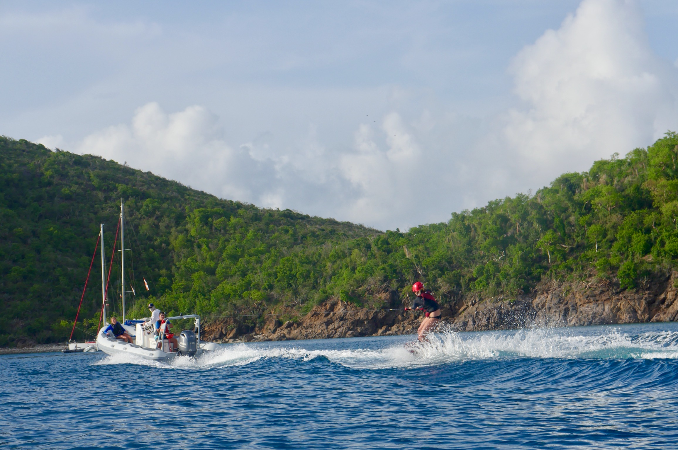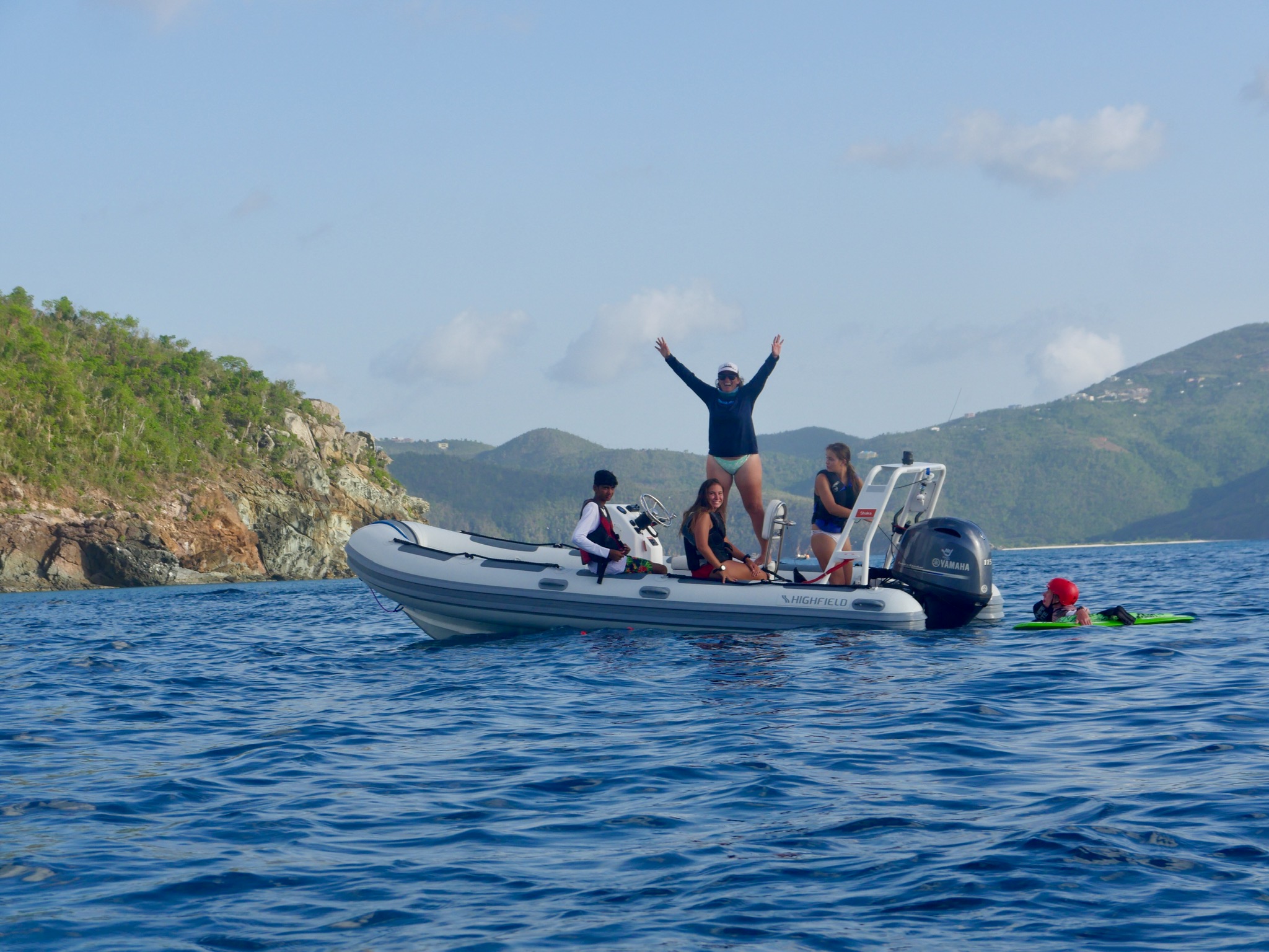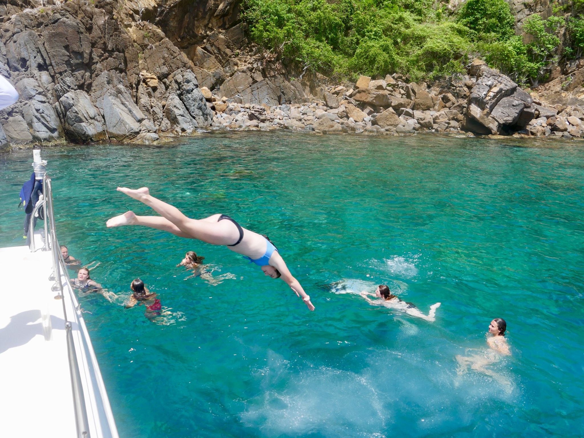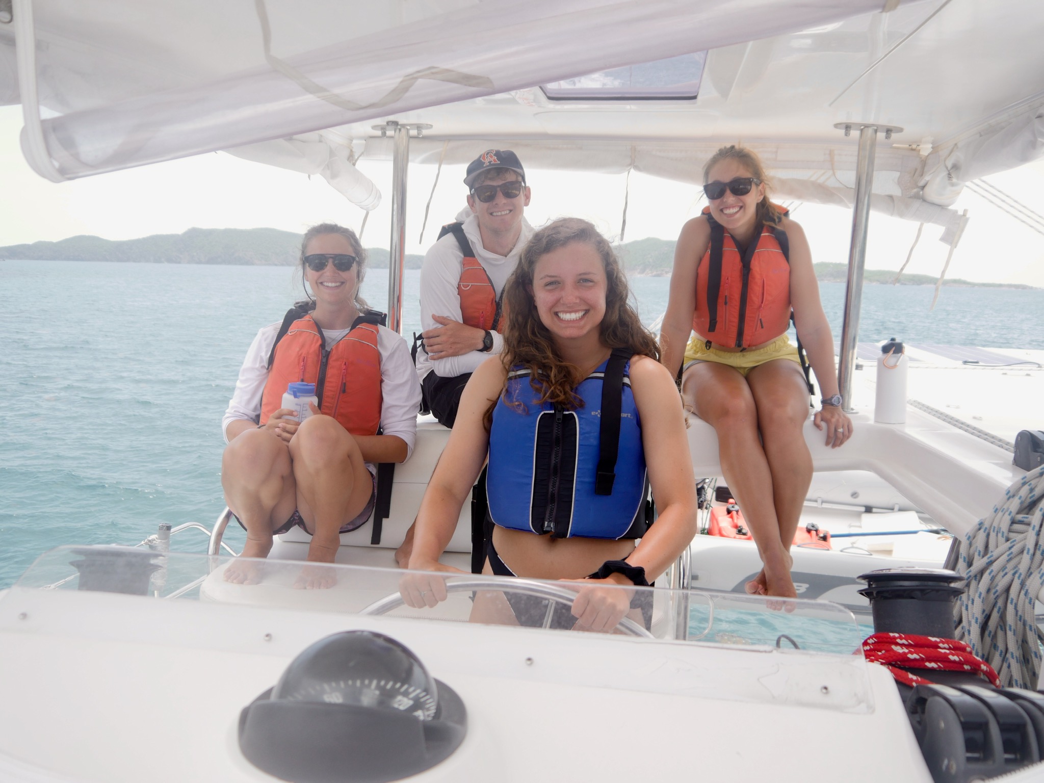 We all had a very relaxed morning. As the chefs cooked French toast, the rest of us moved outside and slept some more on the roof with beautiful views of Marina Key to wake up to. As most of the crew began to wake up for the second time this morning, the staff told us that we would have the boat to ourselves for a couple of hours while they went off to a staff meeting on the island. We finished up breakfast with our choice of music blaring through the speakers, and plenty of laughs filling up the boat. We then started an intense card game while waiting for the staff to come back and give us the news that our day would be filled entirely with water sports, pico sailing, snorkeling, and chill time for a free day. With a short sail over to Musk Mellon Bay, the crew motored Ewak into the bay, immediately setting off with our snorkeling gear and staff taking rounds of us out on the super dinghies to try wakeboarding, water skiing, and knee boarding. After a very full day, all of us were very much ready for a classic saltwater shower, and after having burned off our quesadillas that were so lovingly made by Elliot, we were even more ready for dinner. Perfectly timed as we had just learned about and seen many this afternoon around the rocks of the bay, all of GoBeyond met up on Anamacara to dissect a Lion-fish after dinner. Finishing off the best day yet in the best way possible, we have a movie night (and I get the honor of deciding on what it is we end up watching) before heading off to bed to wake up and see what tomorrow has in store.