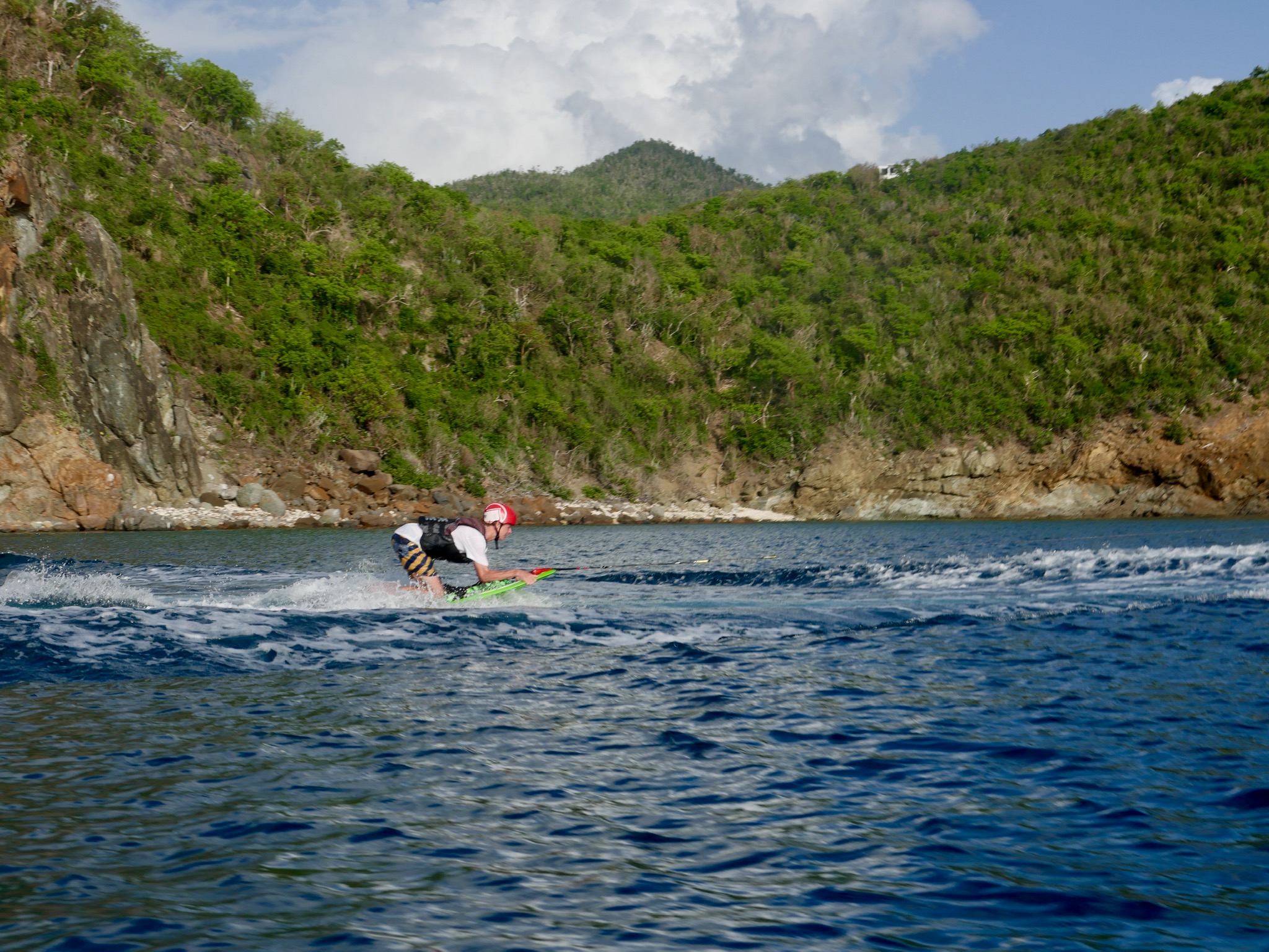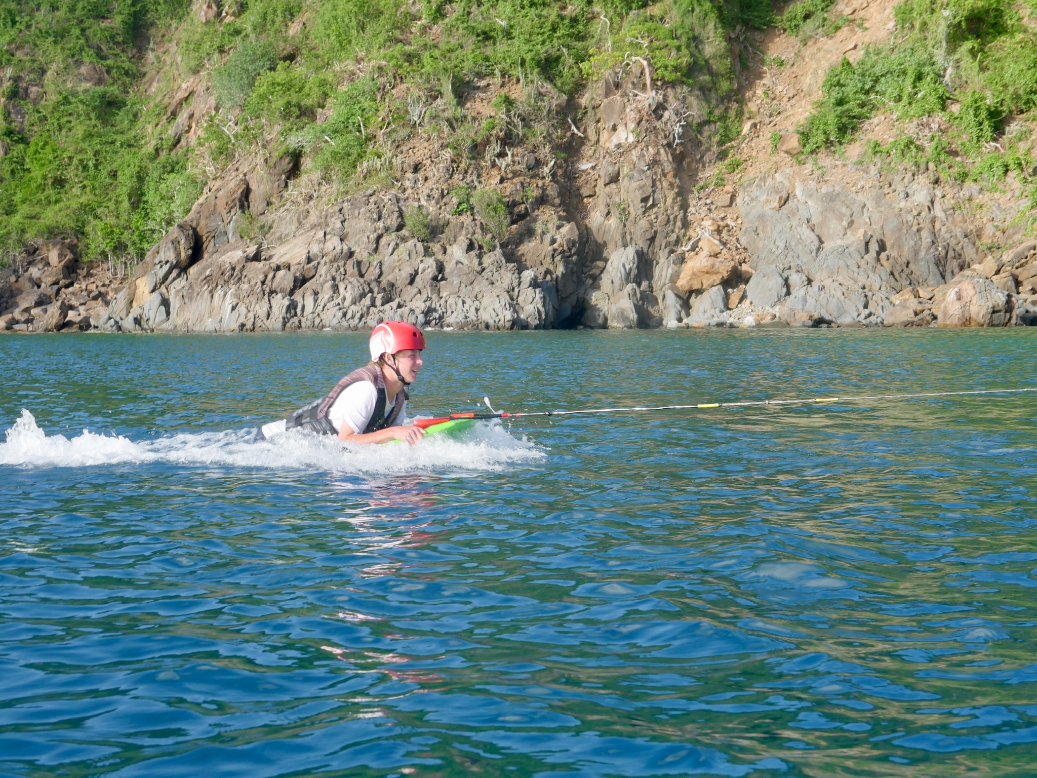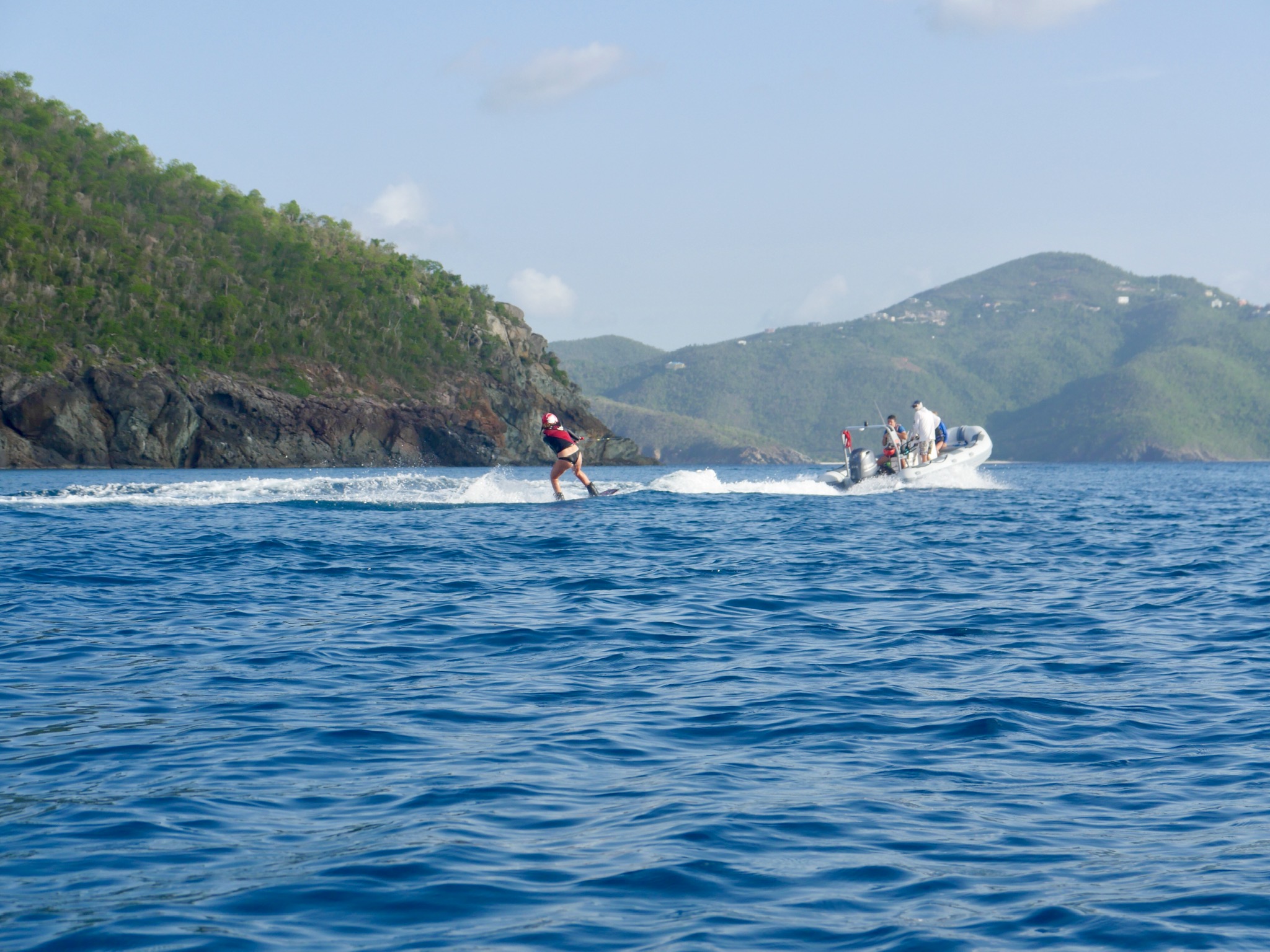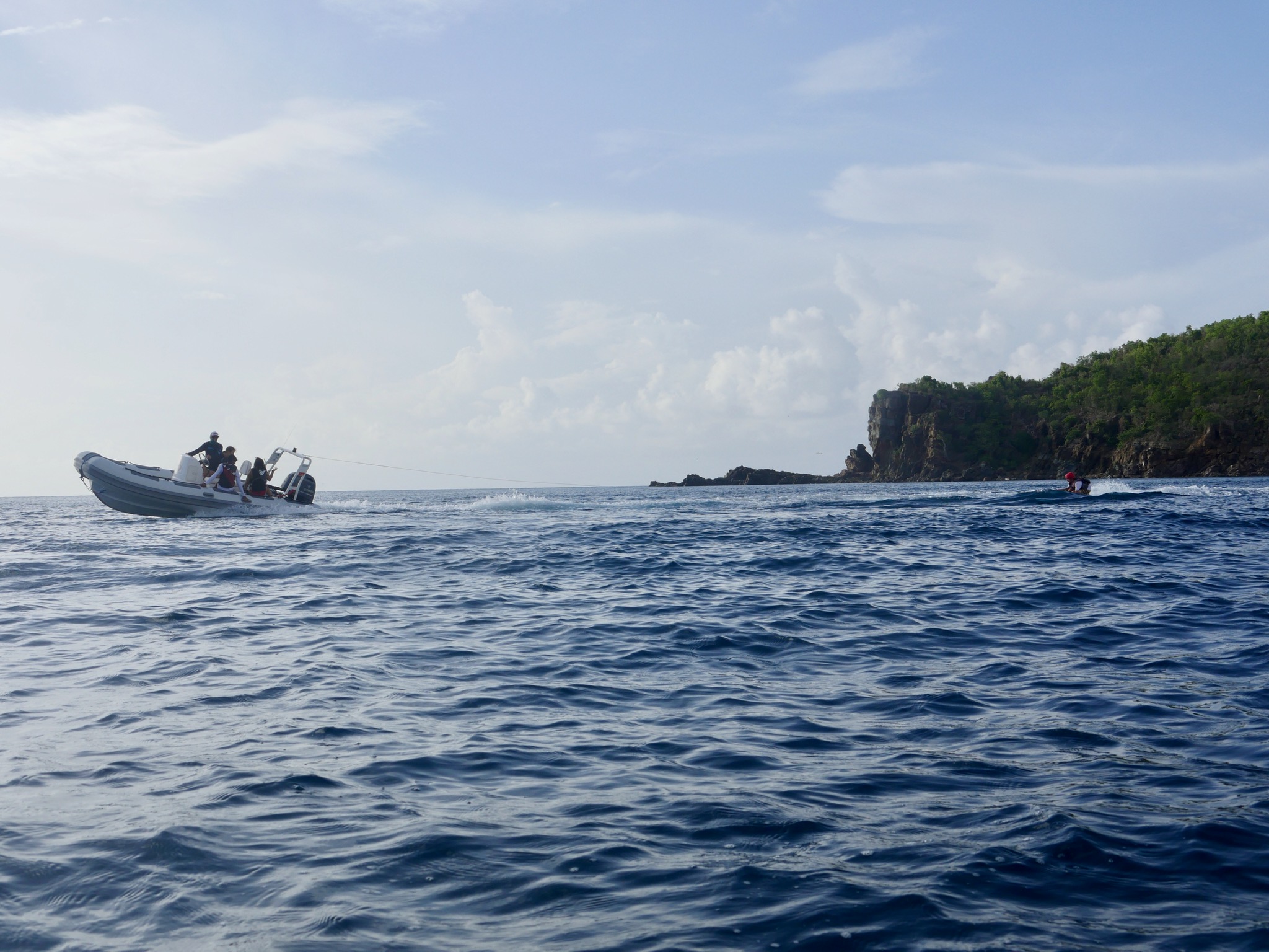 We all had a very relaxed morning. As the chefs cooked French toast, the rest of us moved outside and slept some more on the roof with beautiful views of Marina Key to wake up to. As most of the crew began to wake up for the second time this morning, the staff told us that we would have the boat to ourselves for a couple of hours while they went off to a staff meeting on the island. We finished up breakfast with our choice of music blaring through the speakers, and plenty of laughs filling up the boat. We then started an intense card game while waiting for the staff to come back and give us the news that our day would be filled entirely with water sports, pico sailing, snorkeling, and chill time for a free day. With a short sail over to Musk Mellon Bay, the crew motored Ewak into the bay, immediately setting off with our snorkeling gear and staff taking rounds of us out on the super dinghies to try wakeboarding, water skiing, and knee boarding. After a very full day, all of us were very much ready for a classic saltwater shower, and after having burned off our quesadillas that were so lovingly made by Elliot, we were even more ready for dinner. Perfectly timed as we had just learned about and seen many this afternoon around the rocks of the bay, all of GoBeyond met up on Anamacara to dissect a Lion-fish after dinner. Finishing off the best day yet in the best way possible, we have a movie night (and I get the honor of deciding on what it is we end up watching) before heading off to bed to wake up and see what tomorrow has in store.