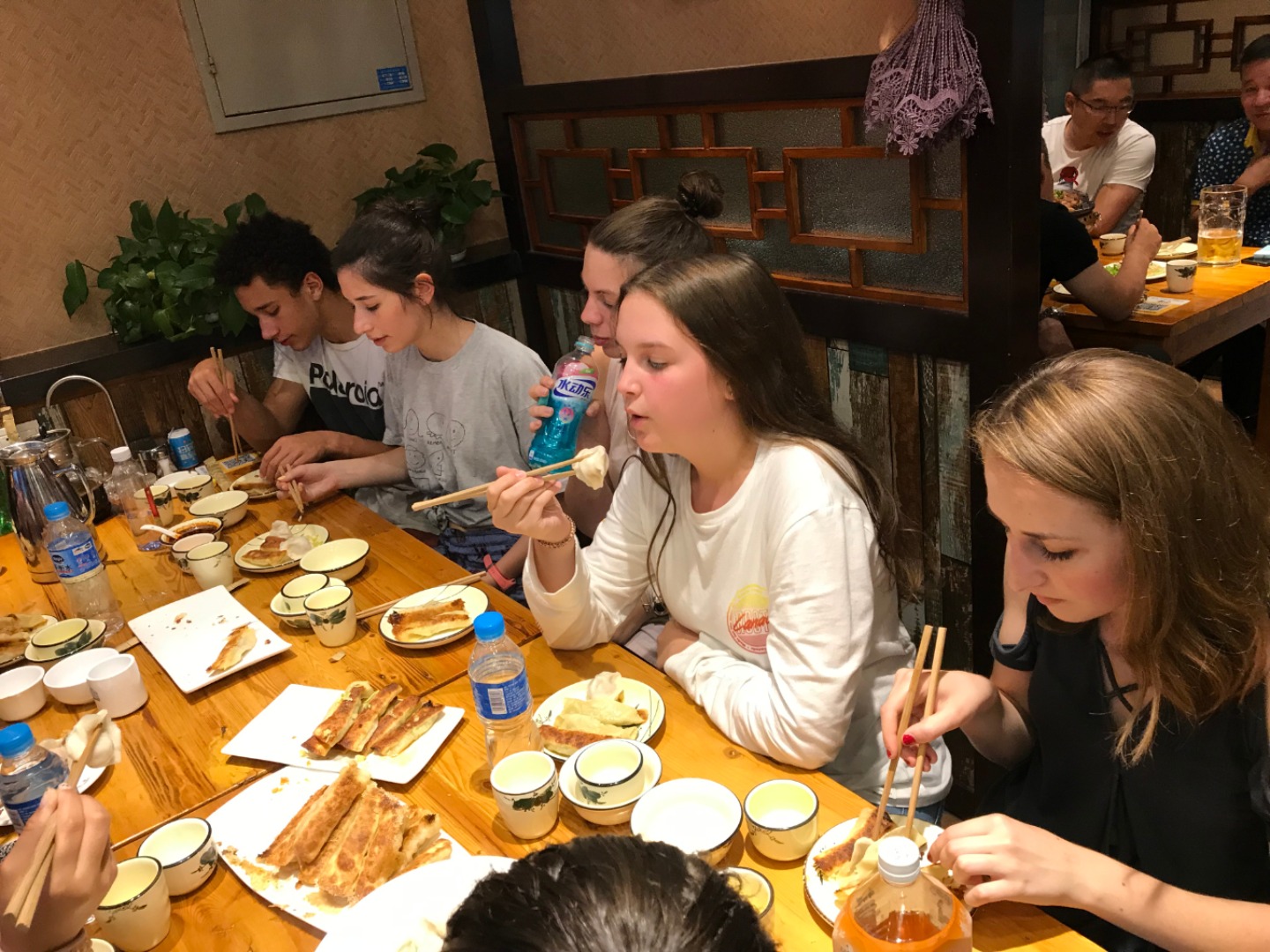 Today was a semi-standard orphanage day. It started off with an early morning breakfast at THE apartment, and soon we jumped into service at the orphanage. At lunch, we were bombarded by northern style Chinese dishes as we chatted with former orphanage volunteers and the orphanage director. When the service resumed, some of us took toddlers to a little play area inside the orphanage and played until our heart’s content (or until we collapsed due to exhaustion). Others welcomed back 13 toddlers that had gone to get dental checkups in Beijing. When service ended, some returned to the hotel before dinner, while some headed off to explore a Baotou market in which they found Marvel action figure themed snacks and goods. For dinner, we were stuffed to the brim with traditional dumplings (some eating over 20) and afterward returned to the hotel to sleep after a fulfilling day.