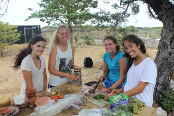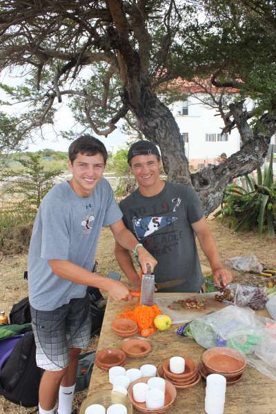 Additionally, we cut up some tree branches to help decorate the cages. After a quick snack break, we gathered our materials, got changed into our long pants, and drove to a new area. Here we learned about the endangered Anegada iguanas, and how to identify one of their nests. We split into groups and fanned out into the shrubbery. Since there are only about 300-400 of the iguanas still existing, I was very excited when my group got to see a wild iguana for a second before it vanished into the brush. The other groups weren’t so lucky, but one group successfully discovered ten new iguana nests. After our long morning, lunch at a local restaurant provided much-needed relief. We also were given a chance to rest for an hour after lunch on a beautiful beach. It was pretty relaxing until a local pet goat caused some trouble. The good memories continued to form when we found out that we had to clean the boat in its entirety. We returned to Catalinaville and began the massive wipe-down, but it only took about an hour with everyone lending a hand. Shortly afterward, Kelly came to our boat for dinner, which consisted of chicken Caesar salad and risotto. It was the perfect finish to a cool, cloudy day filled with interesting experiences.