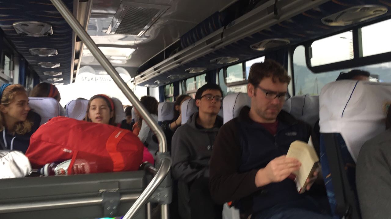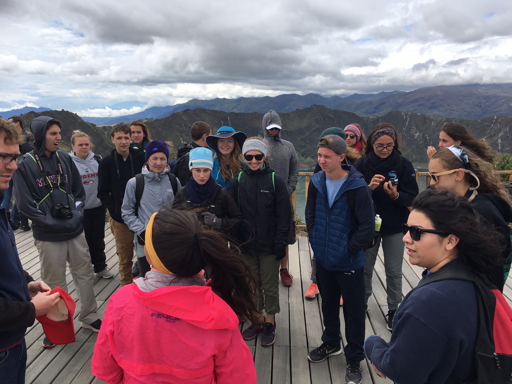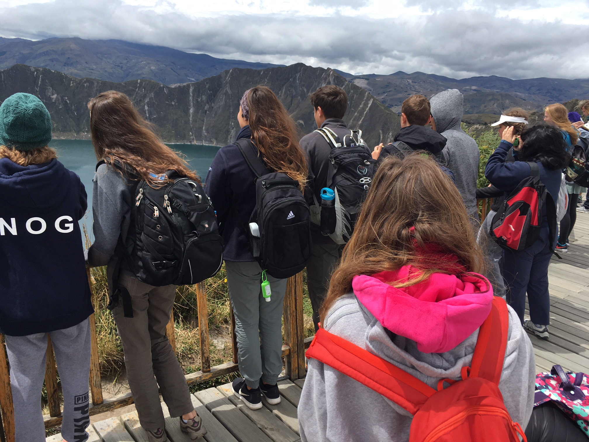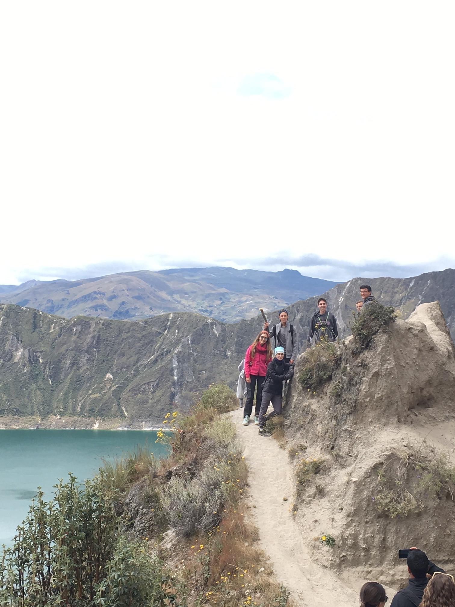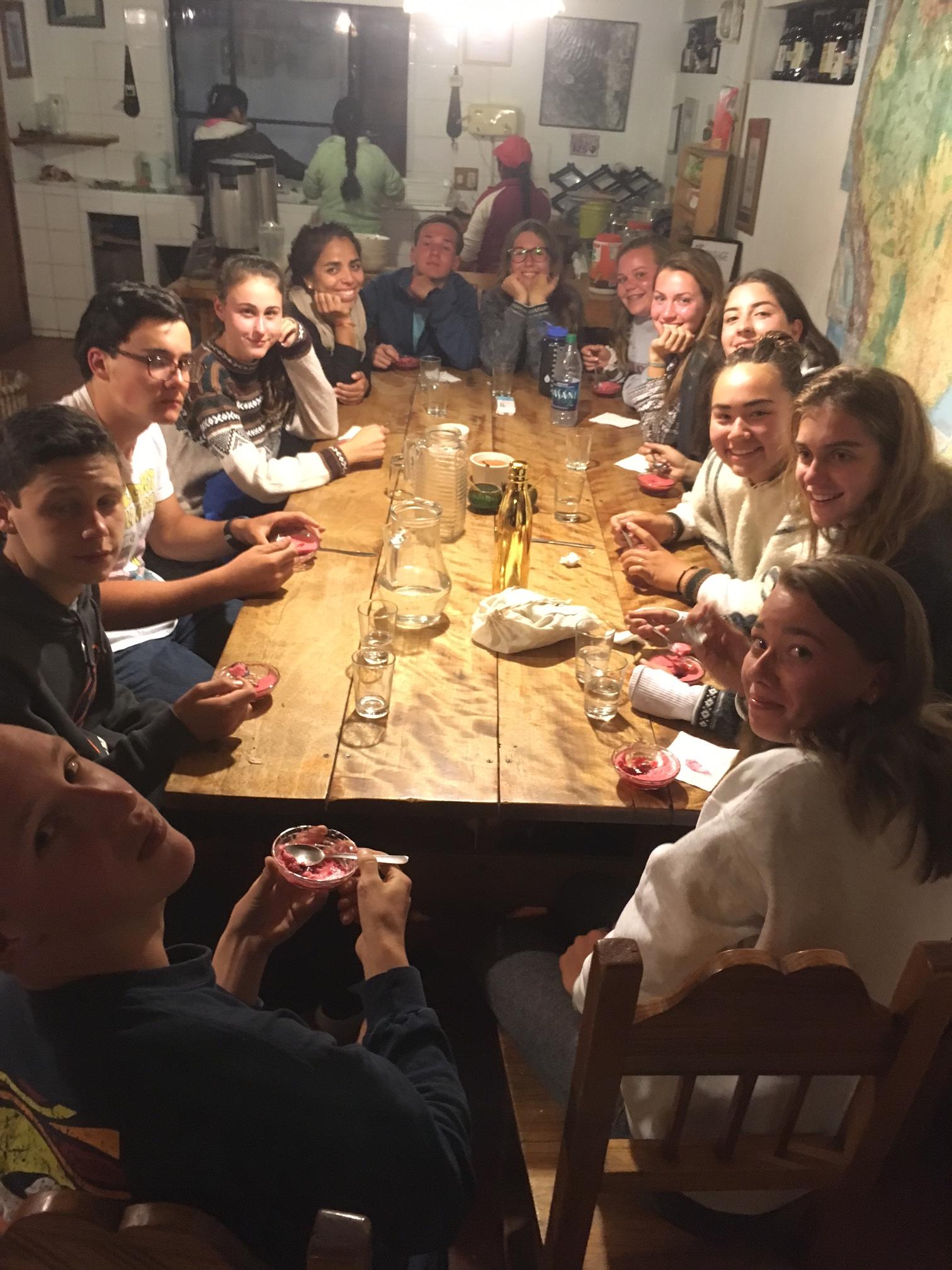We traversed the near impossible terrain, dust flying into the air as we skidded down the dirt path. People wiped out, sliding down the pebbles and getting up, their clothes turned a light shade of beige. We finally arrived at our destination, the turquoise waters of the lake at Quilotoa Crater. Walls of earth bathed in the green of trees surrounded the lake, and as we looked back, we saw the snaking trail that we had descended, dotted with hikers braving the path. The sight was truly breath-taking, the lake green at the edges and turning a darker shade of blue near the center. It looked as if a giant bowl had been carved into the earth, and filled with the most pristine water in Ecuador. We went down to the lake and touched the water, skipping stones and pondering the possibility of fish inhabiting the depths. We felt drops of water start to pelt us, and decided to return to the bus before it started to pour. We then started the arduous journey up the hill — the easy trail we had once descended turned into an exhausting endeavor, as we battled uphill against gravity. We groaned and wailed as we slowly ascended, the sand under our feet sliding us downhill with each step. The lack of oxygen also contributed to the difficulty of the hike, as we all felt our lungs ache and our chests heave in a desperate attempt to provide us with the strength to go on. Finally, we bested the challenge and found shelter in a nearby hostel. We found warmth, rest and refreshments there. We talked for about a half hour before we boarded the bus to continue our way to The Black Sheep Hotel. Some people suffered from the side effects of altitude sickness, causing people to barf multiple times and blacking out while riding donkeys. One member (a Scot who shall not be named) was given altitude sickness pills to help with their altitude sickness. During the bus ride back, they were in an, let’s say, woozy, state. They were laughing and making mind-bending observations, such as that our bus had a backward window. The bus provided the perfect environment to learn about our peers and make fast friends with them. Without electronic distractions, we discussed many things, including politics, philosophy, science, school, and the subtleties of life. After many hours of laughing and talking, we left for our next destination, the Black Sheep Eco Hotel. We were given time to rest and explore the broad reaches of the hotel, finding lamas, sheep, and stick bugs. We then were given a wonderful dinner (a delicious soup followed by a savory dish of potatoes, cheese, and various beans, and finished by a bowl of star fruit). We then retired to a bonfire after feeding a llama and talked well into the later hours of the night.