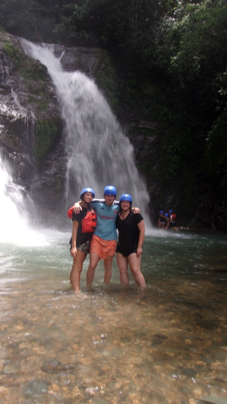 The day started off pretty early. We went to the rafting office and had some delicious Costa Rican breakfast. After a filling breakfast, we had a long drive to the top of a mountain, to start off our rafting adventure. Our rafting guide (Nicolas) gave us some safety instructions, and then we started a really fun rafting experience. Halfway through the river we stopped for a little snack and to see a beautiful waterfall! The rafting was extremely fun, we all got really wet! We then drove back to the rafting office and had a really yummy lunch. Hugo was then ready to drive us to Uvita, which is down near the southern portion of Costa Rica, where we are going to spend the next couple of days.