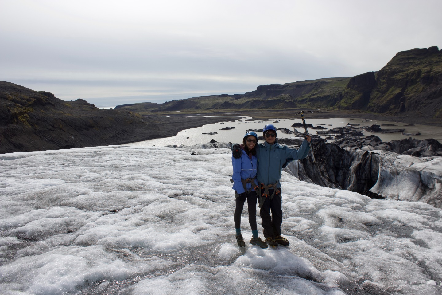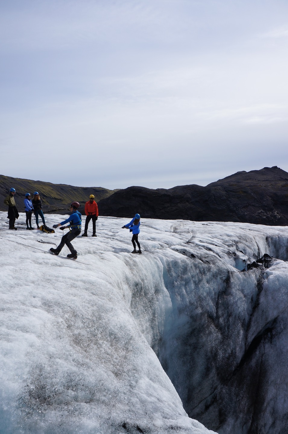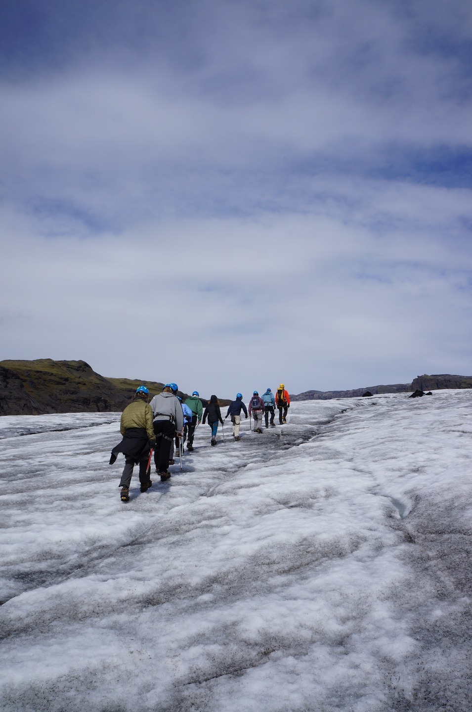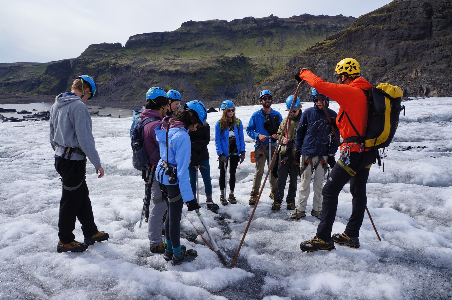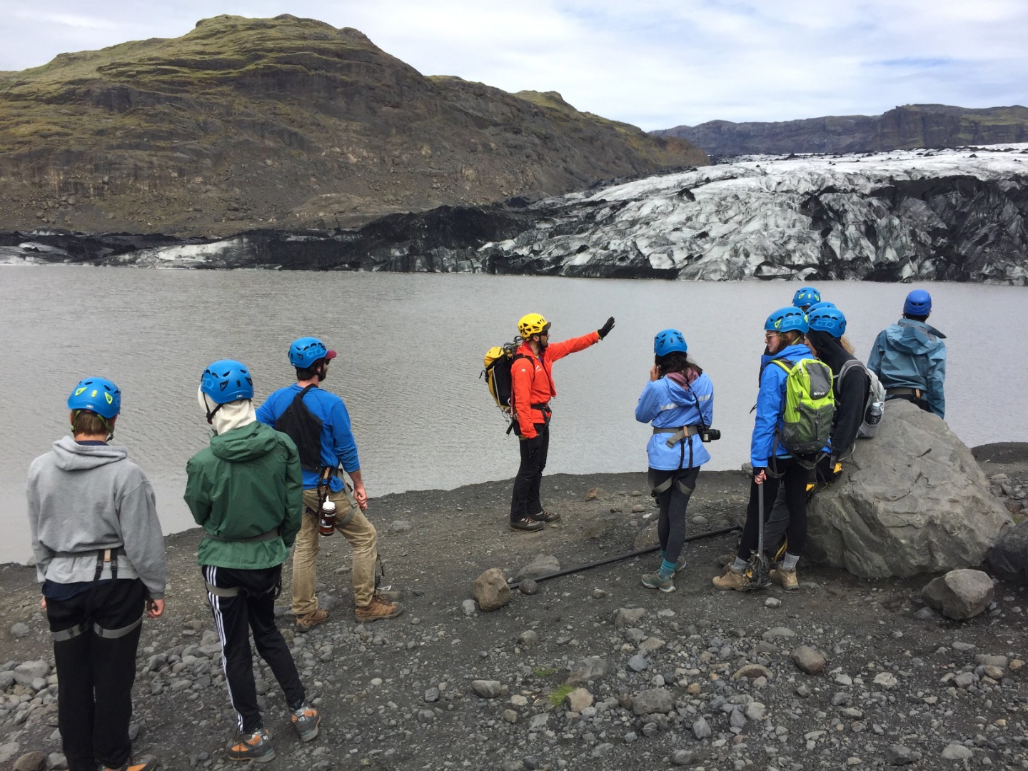 Today was a travel day but still full of activities. We had an early wake up to get everything packed up to hit the road at 9:00 am to head back to Reykjavik. During the bus ride, we made several stops to check out some of the beautiful views near the coast of Iceland. Our first stop was at Dyrholaey and Reynisfjara. Here, we got to see the beautiful black sand beaches and basalt columns, stacks, and arches. The black sand was such a unique thing to see because there is nowhere like that around where I live. After we took a few photos on the columns and got to climb a little, we got back on the bus. The next stop was a plane crash site. A plane had to make an emergency landing in 1973 and was preserved to create a tourist site. Our guide told us that Justin Bieber had actually filmed one of his music videos on top of the plane and showed us the clip, which was really cool to see. We got back on the bus again to make the biggest stop of the day. We got to do a glacier walk with our guide Mat at Solheimajökull. We had to hike quite a bit on the ice to get to the flat part on top. Just the fact that we were walking on top of a glacier blew my mind.