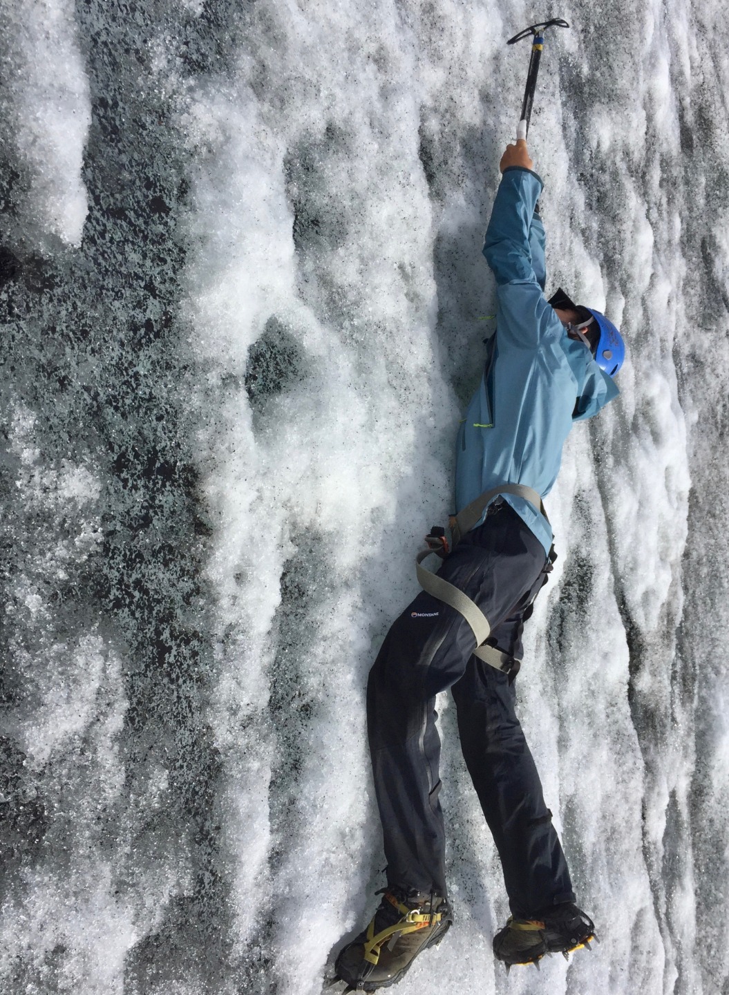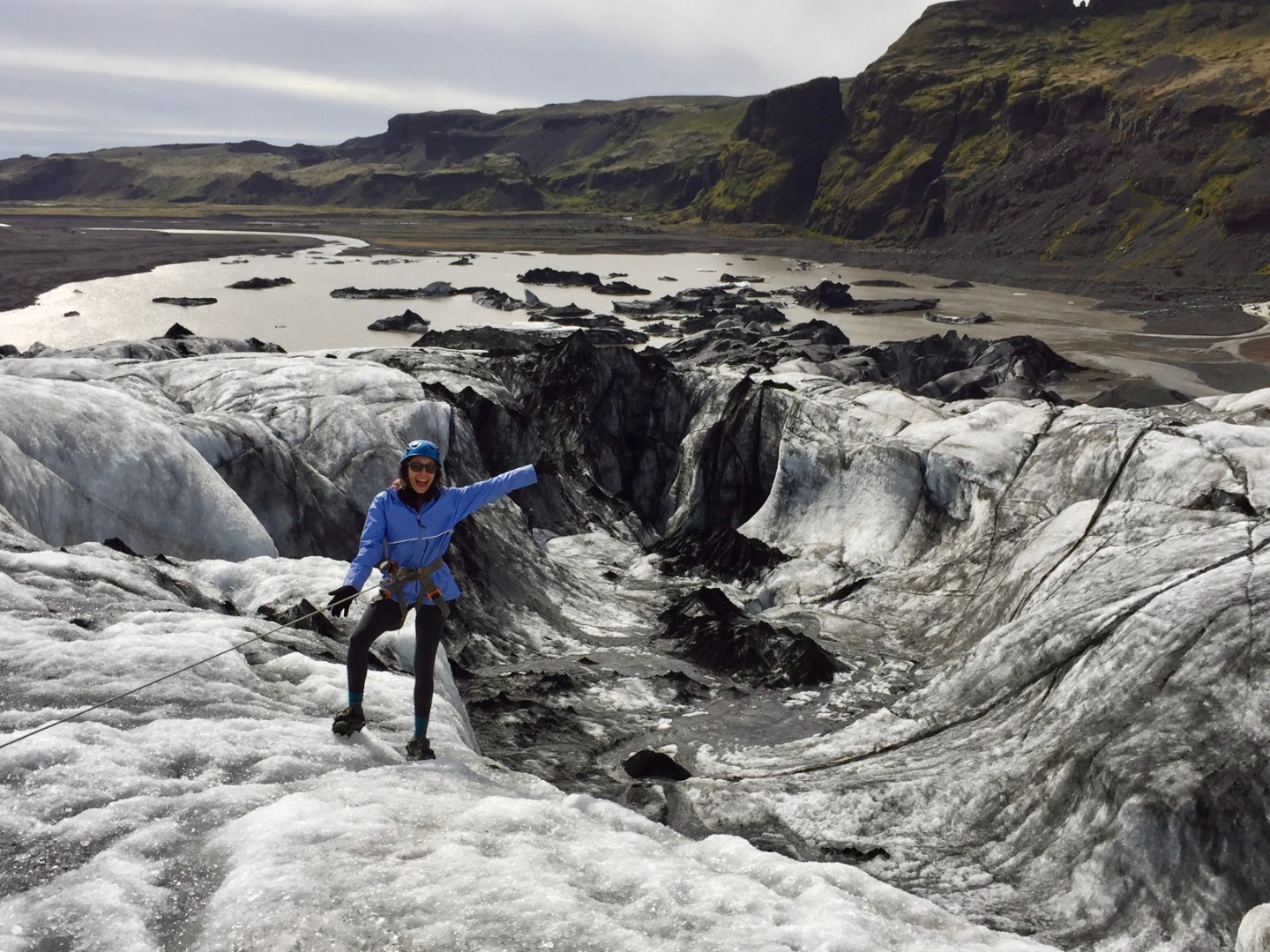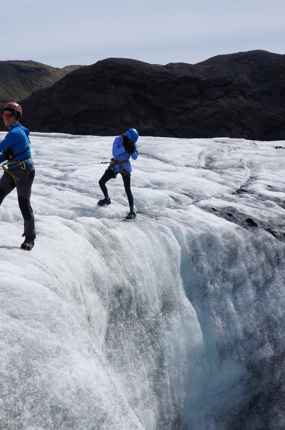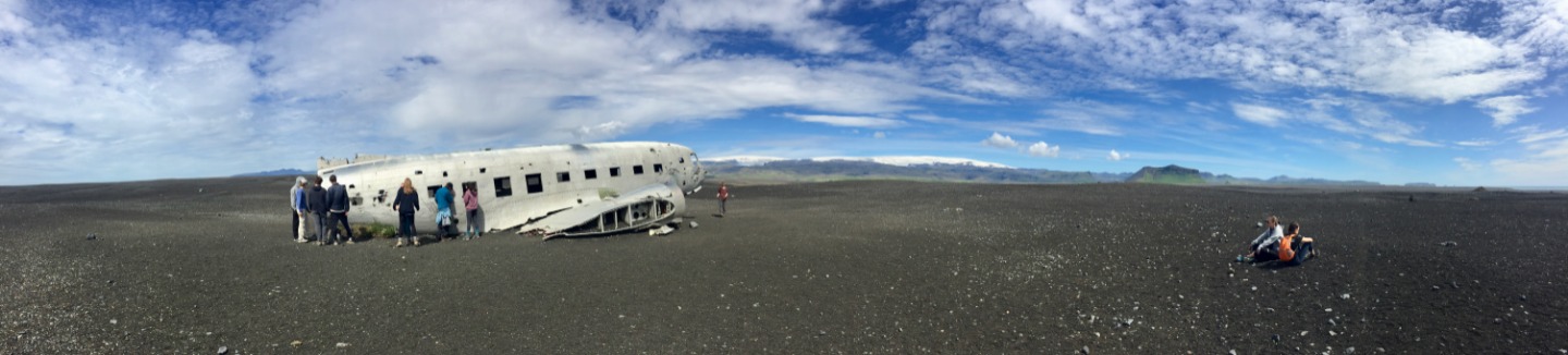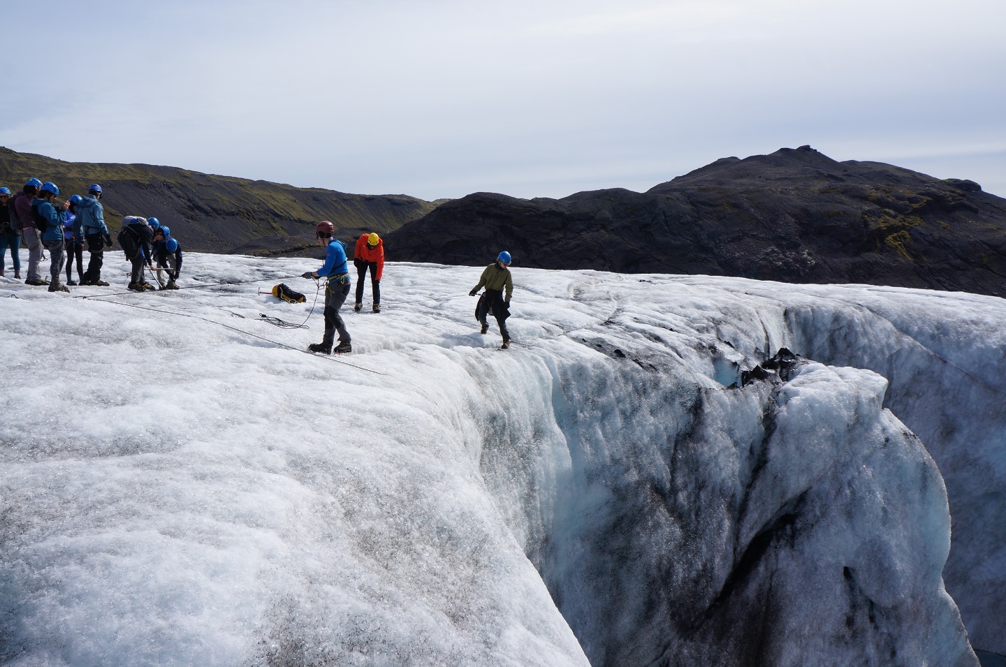 Today was a travel day but still full of activities. We had an early wake up to get everything packed up to hit the road at 9:00 am to head back to Reykjavik. During the bus ride, we made several stops to check out some of the beautiful views near the coast of Iceland. Our first stop was at Dyrholaey and Reynisfjara. Here, we got to see the beautiful black sand beaches and basalt columns, stacks, and arches. The black sand was such a unique thing to see because there is nowhere like that around where I live. After we took a few photos on the columns and got to climb a little, we got back on the bus. The next stop was a plane crash site. A plane had to make an emergency landing in 1973 and was preserved to create a tourist site. Our guide told us that Justin Bieber had actually filmed one of his music videos on top of the plane and showed us the clip, which was really cool to see. We got back on the bus again to make the biggest stop of the day. We got to do a glacier walk with our guide Mat at Solheimajökull. We had to hike quite a bit on the ice to get to the flat part on top. Just the fact that we were walking on top of a glacier blew my mind.