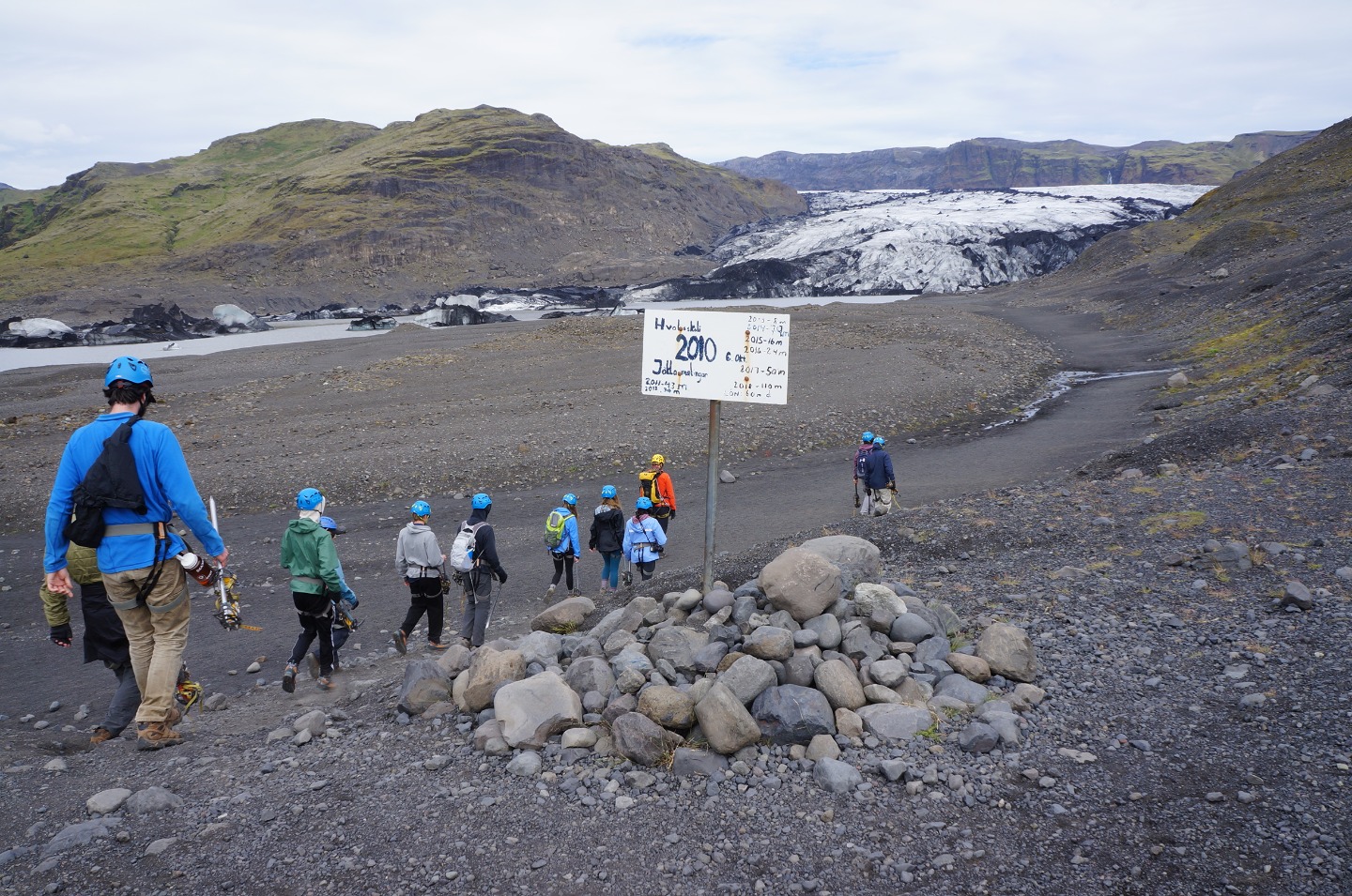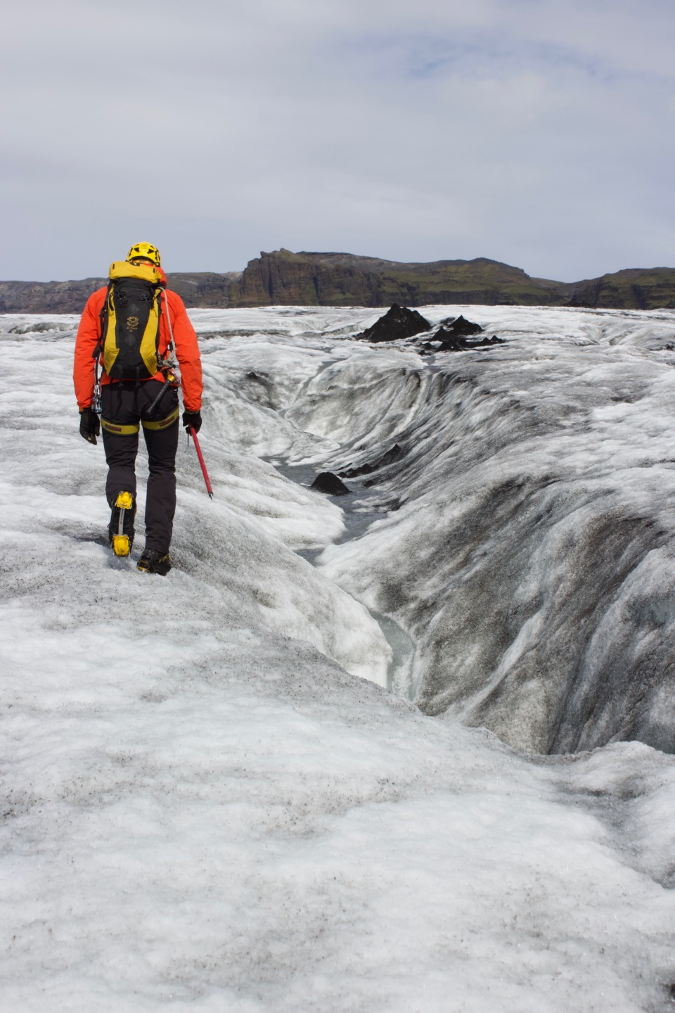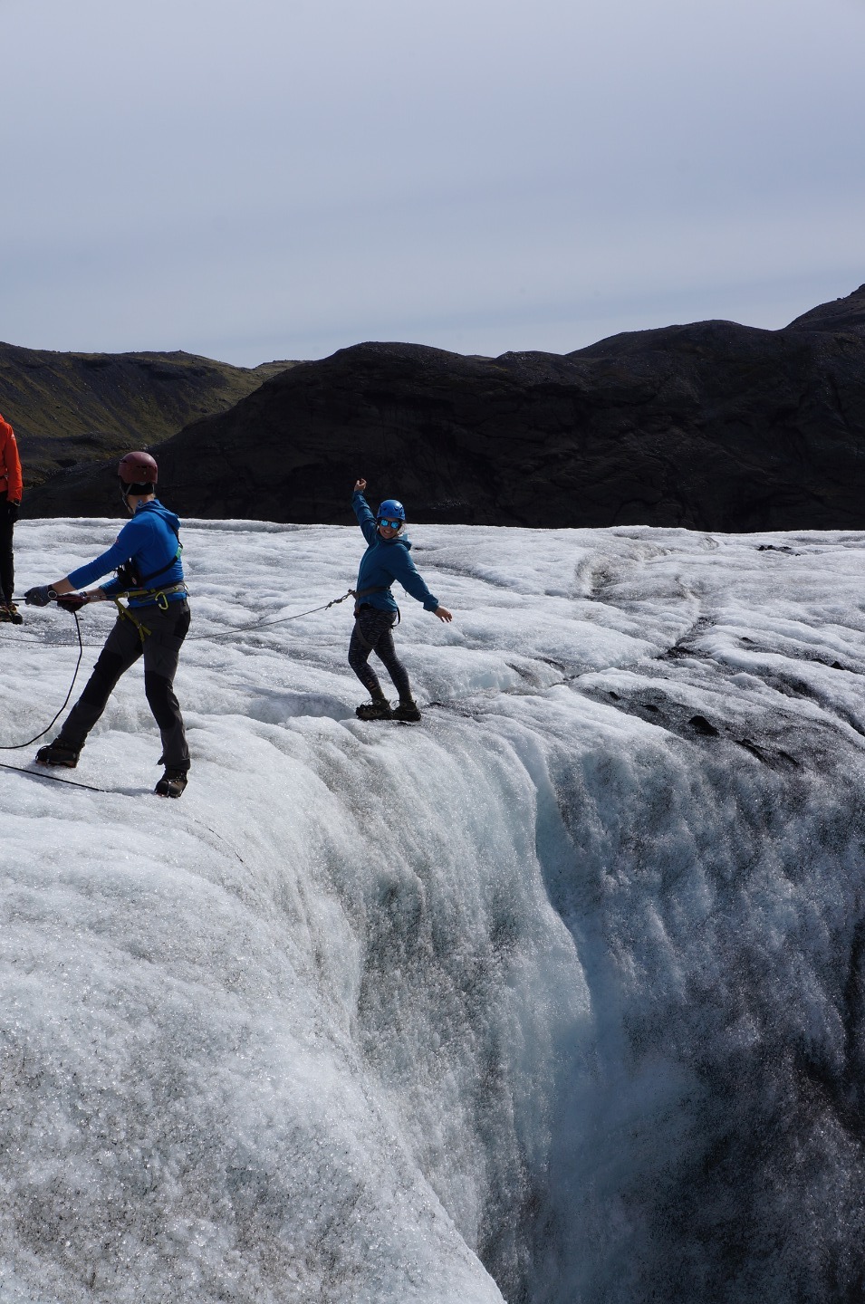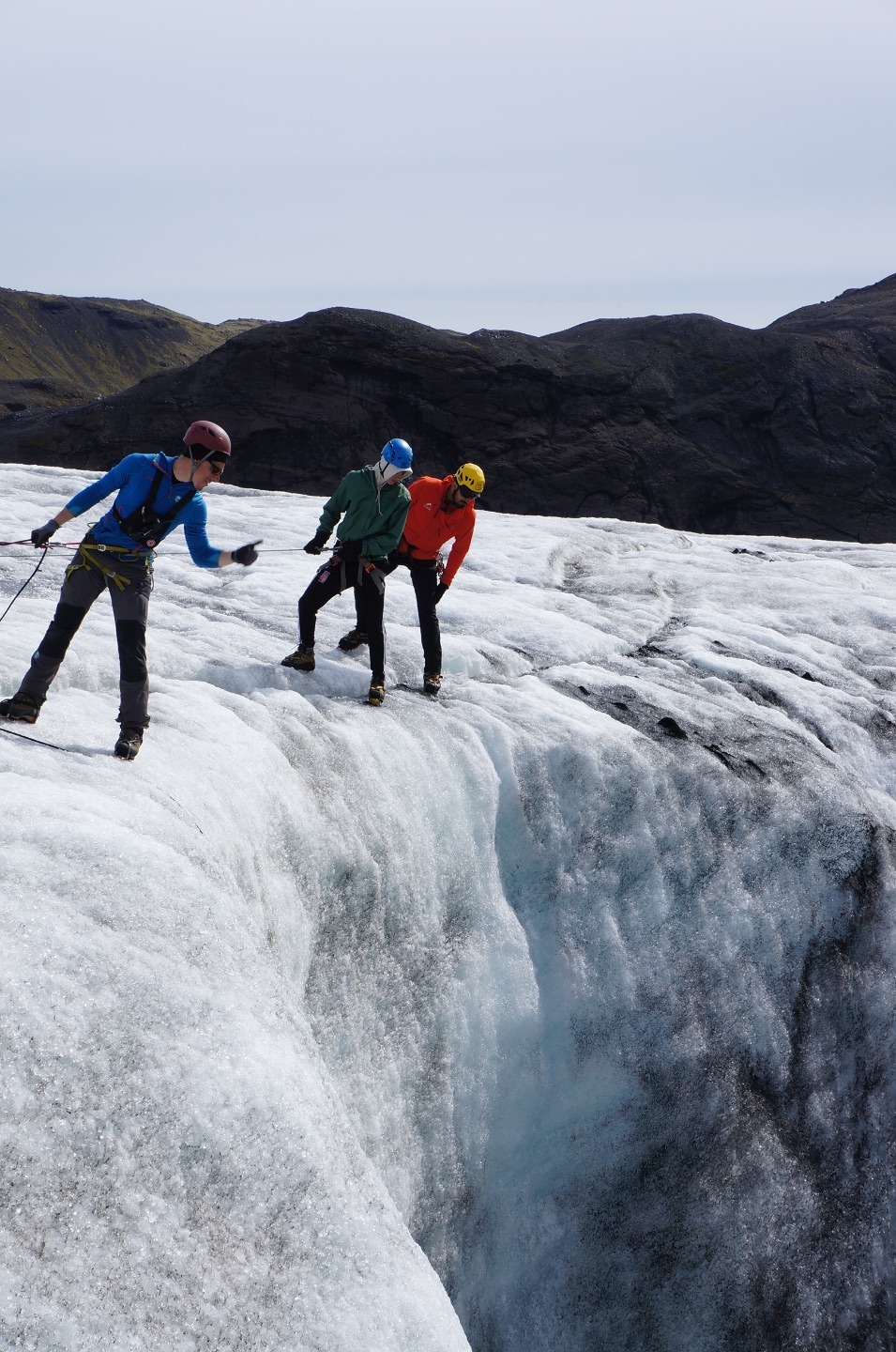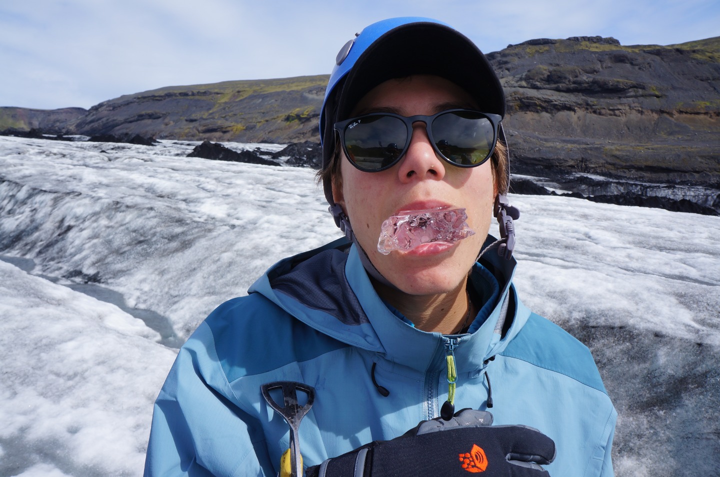 Today was a travel day but still full of activities. We had an early wake up to get everything packed up to hit the road at 9:00 am to head back to Reykjavik. During the bus ride, we made several stops to check out some of the beautiful views near the coast of Iceland. Our first stop was at Dyrholaey and Reynisfjara. Here, we got to see the beautiful black sand beaches and basalt columns, stacks, and arches. The black sand was such a unique thing to see because there is nowhere like that around where I live. After we took a few photos on the columns and got to climb a little, we got back on the bus. The next stop was a plane crash site. A plane had to make an emergency landing in 1973 and was preserved to create a tourist site. Our guide told us that Justin Bieber had actually filmed one of his music videos on top of the plane and showed us the clip, which was really cool to see. We got back on the bus again to make the biggest stop of the day. We got to do a glacier walk with our guide Mat at Solheimajökull. We had to hike quite a bit on the ice to get to the flat part on top. Just the fact that we were walking on top of a glacier blew my mind.