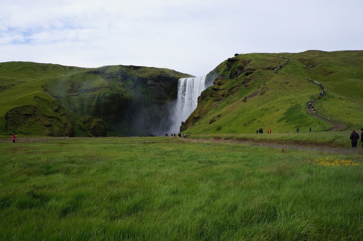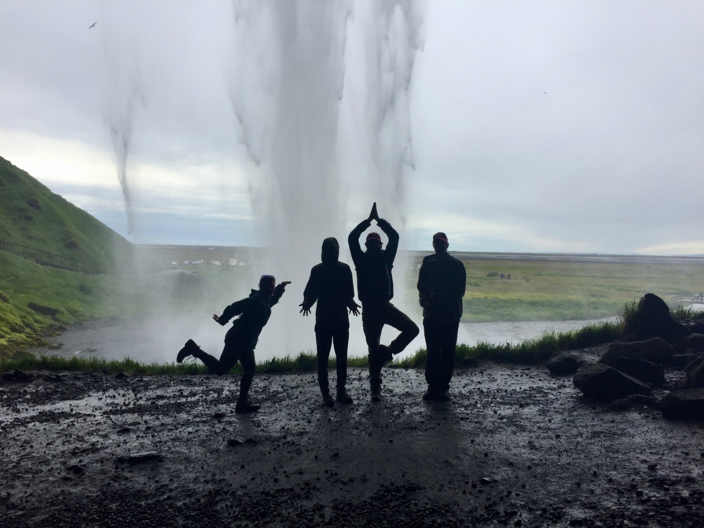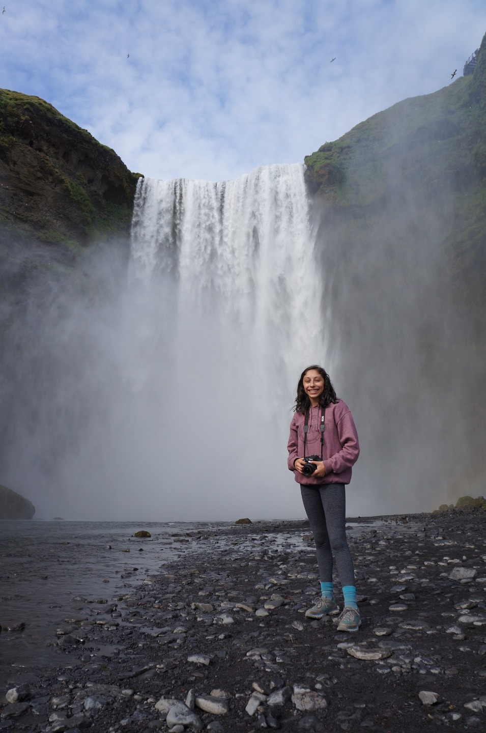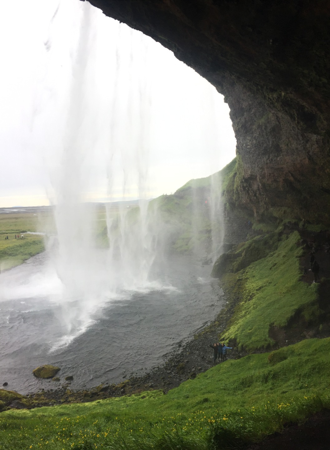 We had to have lots of gear including crampons, which are something you put on the bottom of your shoe to help your feet grip the ice, a harness, a helmet and an ice ax for our safety. Once we got to the top, we were able to clip into a rope and lean back and look into a crevice in the ice to see a different perspective. Getting to do this glacier hike was such a unique experience. After the glacier, we got to visit two different waterfalls called Skogafoss and Seljalandsfoss. To get a beautiful view of Skogafoss, we climbed 427 stairs, but it was definitely worth it. Seljalandsfoss was interesting because we got to walk behind the waterfall to see it from a different side and we got soaked, but also, it was definitely worth it. By the end of all this, we were all exhausted and ready for some food, so we stopped at a gas station to get famous Icelandic hotdogs, called pylsunur here. After a tiring but exciting day, we arrived in Reykjavik at 9:00 and got settled into our rooms for a good night’s sleep.
