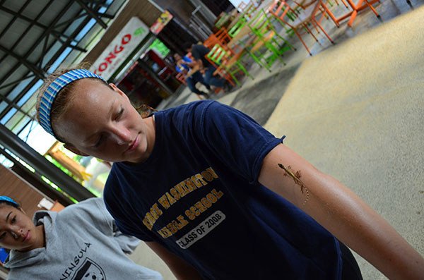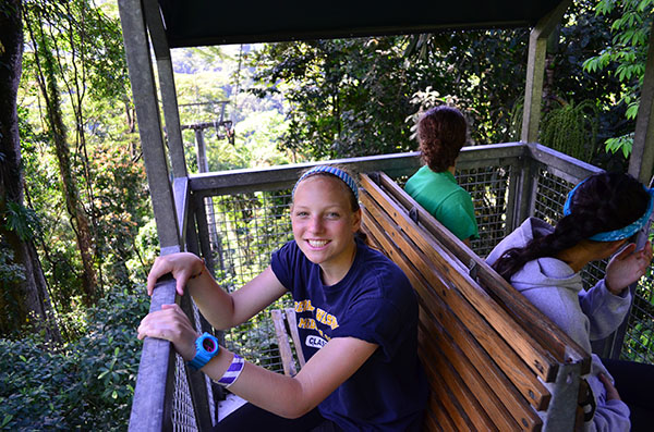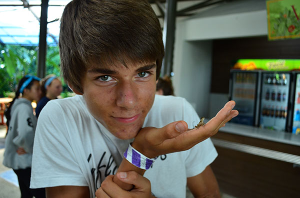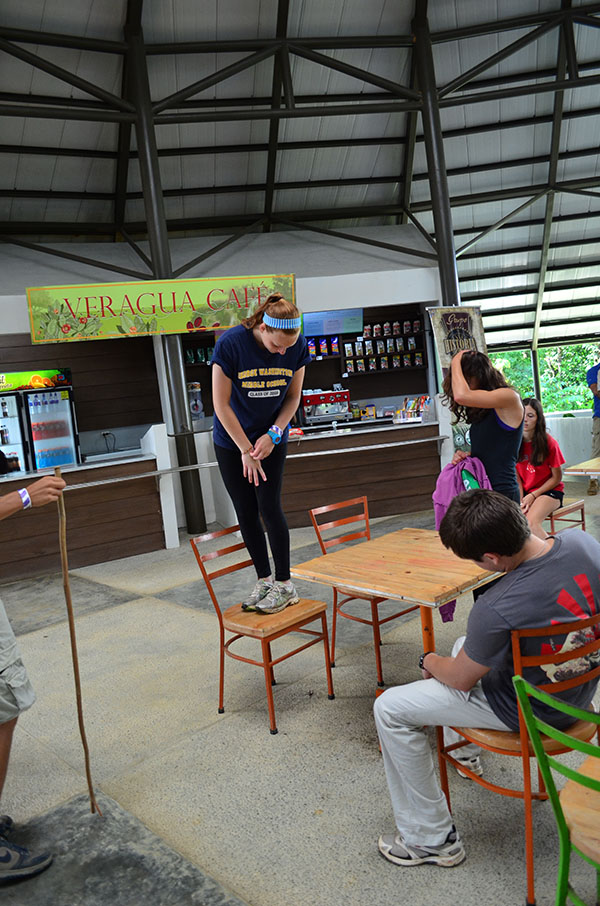 We were awoken at a brisk and early 6:30 am. After breakfast, the group split in two. Half of us enjoyed a thrilling and beautiful zip line canopy tour. While the other half toured the grounds and facilities of Veragua, seeing snakes, poisonous frogs, and insects. Afterward, the groups switched. We then mounted our beloved air-conditioned bus as our dear friend Carlos drove us to our next destination. A stop to get coconut rice and beans and other Caribbean specialties before Frisbee and chillin’ on the beach pumped us up for the night on the Caribbean. At the extremely nice hotel, we had pool time, milkshakes, and philosophical discussions. After a delicious dinner, we had a forum night and a dramatic game of Times Up! to end the night. Great day!