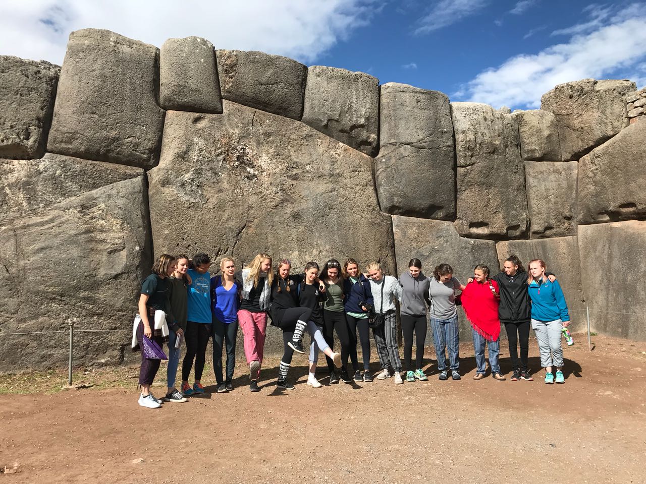 Most of the girls got up bright and early to spend our last morning in Cuzco watching the beautiful sunrise from the terrace of our hostel looking over a sea of red roofs surrounded by mountains. Something we’ll never forget. After breakfast, we started to carry out hundreds of bags (or at least that’s what it seemed like) up the stairs and hill to the bus so that we could start the road trip to Ollantaytambo. Along the way, we took many stops to Sacsayhuaman ruins, a llama and alpaca farm, and Pisaq. My favorite was the Pisaq tour with everything from Inca stones dating back to the 1350s, absolutely incredible views, and many ancient neighborhood ruins; it was a remarkable place to stop when we got to the Sacred Valley. When we got to the llama farm, we learned all about the softest alpaca and the different types of llamas and alpacas. We got to feed, take pictures with, and even hug their soft fur. During the rest of the drive, there were a lot of naps, laughs, and murder mystery riddles. As we drove, we were engulfed by mountains so big that it hurt my neck to look up at them. When we arrived at lunch, it started to not just rain, but also hail, so we had a little change of plans. Instead of mountain biking through Urubamba Valley, we went back to the hotel instead. As we entered Ollantaytambo I knew that just I had fallen in love with Cuzco, this small city was just as beautiful. The first thing we did when we got to the hotel was to check the amenities like hot water and heat. At first, we didn’t. I will never take these things for granted again. After having some local food at a restaurant nearby, we barely had enough energy to get through the rest of the movie before we passed out. Another amazing day!