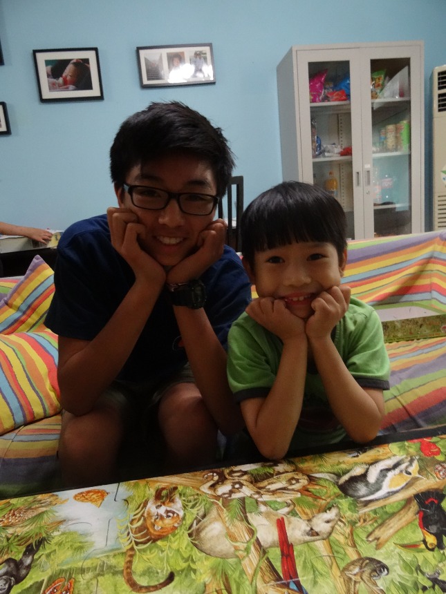 Hi Mom, today was a fun and exciting day. I woke up today at 6:30 to Nathan’s snoring, and went to brush my teeth. After about 3 minutes of brushing my teeth, I went back to the room, and the snoring was gone. I couldn’t go back to sleep and ended up waiting for everyone to wake up. After eating breakfast, we set off to the baby home. Since some of the toddlers were sick, we had to stay upstairs and play with the babies. There was a lot of sanitizing going on to make sure everyone stayed healthy. After coming back from the baby home, we came home to a lunch of hot dogs, and beans. The hot dogs looked like there was plastic wrap around it, but it was just the skin, so I still ate it. The beans had a bit too much sugar and were too sweet (thanks to Thomas). After lunch, we had time to rest before heading off to Round-A-Bout. When we got to Round-A-Bout, we were all assigned jobs. Half the girls were sent off to sort out books, while the rest had to dress Barbie Dolls. The boys, including myself, had to test the electronics. The other Alex and I had to test some old GBA games, while Nathan and Emily were testing different electronics. While we were hard at work, we were all offered watermelon and brownies. Coming back home from Round-A-Bout, we had tofu, tomatoes and eggs and garlic shoots for dinner. After dinner, we all sat down to watch a movie and practice our flash mob dance. All in all, today was a great day full of fun and interesting things.