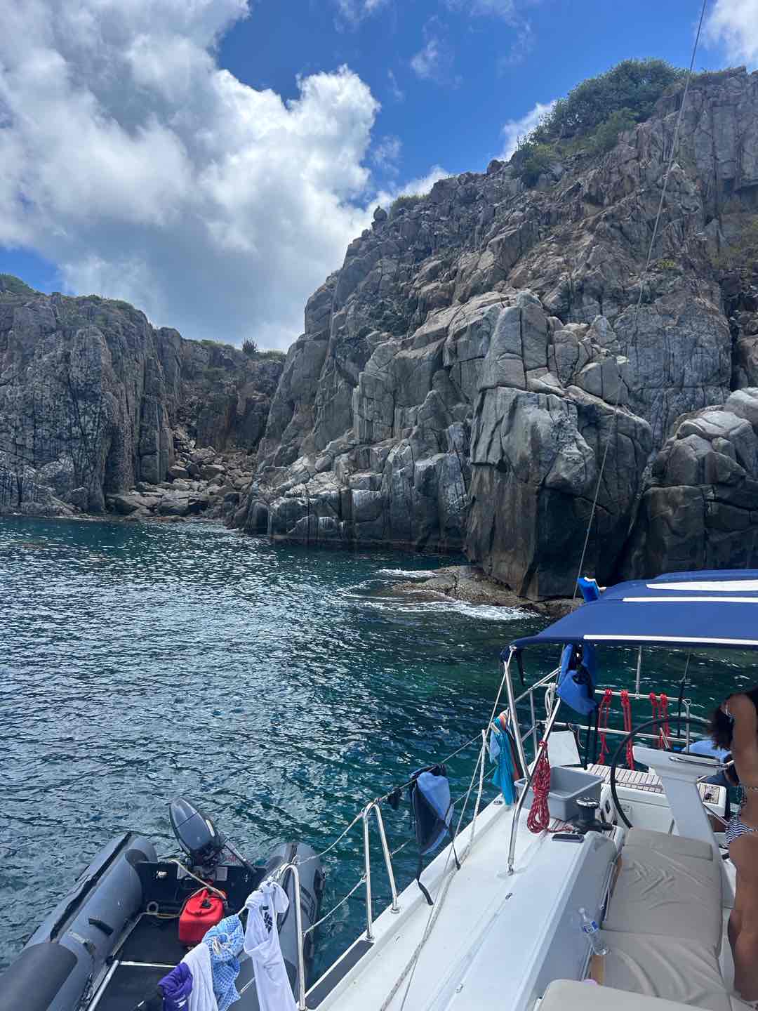 We started the day bright and early at 7:00 am. Toby and Scarlet, our chefs for today, greeted us with the most perfect breakfast, scrambled eggs, and crumb cake. After we set sail to pick up fuel and water, we stopped at a cafe for a special treat! The iced coffees and mango smoothies gave us energy to continue our sail. On the way to our next destination, Will spotted a huge sea turtle! This was especially exciting for the Go Beyond Crew, Maddie, Scarlet, Leah, and me after our 4 hours of failed attempts at tagging them! West Dog is where we anchored next, there Lacey, Atlin, Liv, Toby, Maddie, Aubrey, and Cole went snorkeling. They saw a school of colorful fish, coral, and seaweed. While they were diving, Scarlet, Leah, Jonah, and I tried new friendship bracelet patterns; however, we struggled a little, but we finally got the hang of it. Mac n Cheese was for lunch with ketchup, of course! Atlin and Lacey introduced this combo to our boat, and surprisingly, we all loved it! We put back on our PFDs and went back to home base island of Tortola, where we are sadly going to say goodbye to our Quest friends, Jonah and Audrey. We quickly took ocean showers so Luke could burn our Turks Head bracelets before dinner. The last dinner before we said our goodbye to the Questies was Thanksgiving-inspired, consisting of mashed potatoes, stuffing, casserole, and chicken. It was delicious! To end the night, we listened to a motivational speaker and drank chocolate milk. Tomorrow will be another great day! Love and miss you all! Canβt wait to call you on day 12! ππ