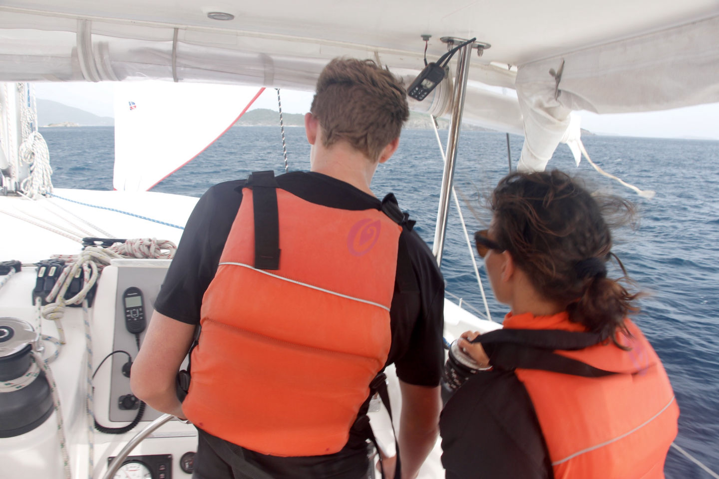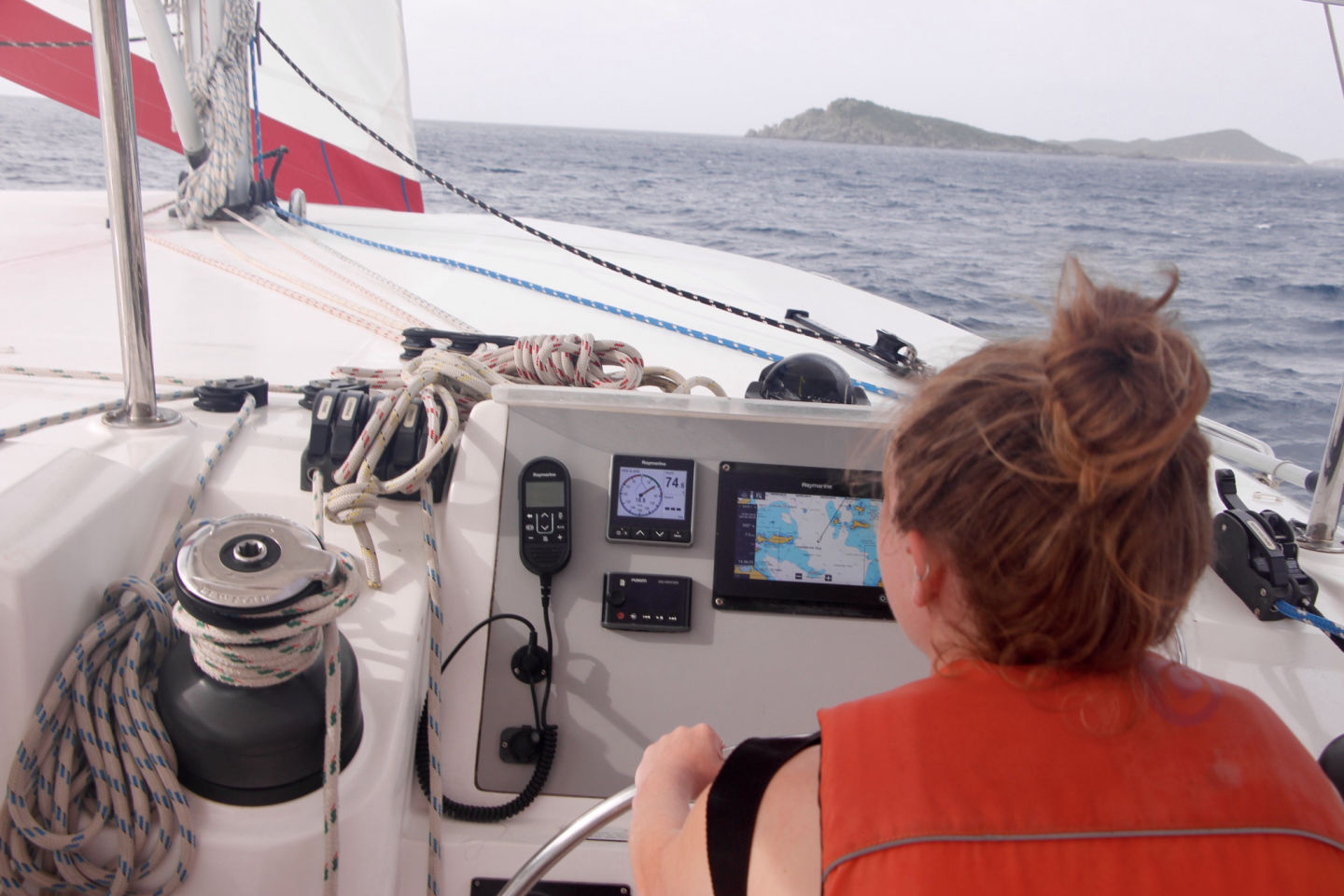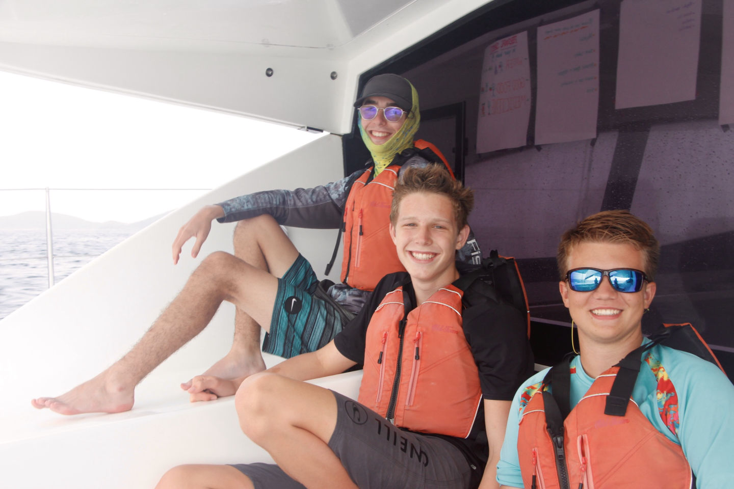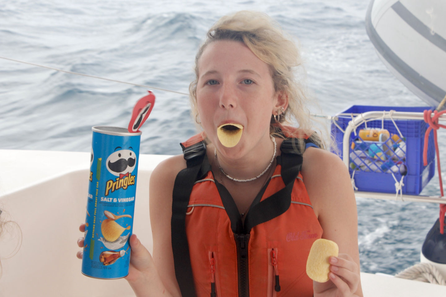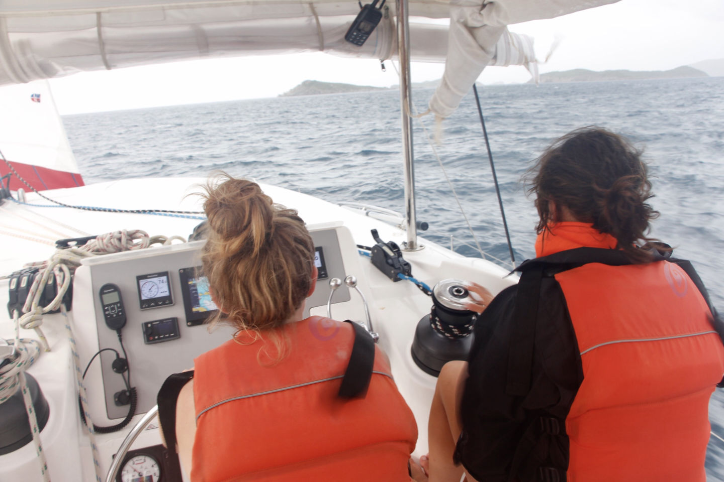 Although we had the opportunity to wake up at a later time today, none of us took it, and most people woke up by around 7:10 am. Some of us joined Em for an early morning workout on top of the boat, which was a great way to get energized for the day. For breakfast, we raised anchor and ate yogurt and bagels (with cream cheese, peanut butter, and jelly as toppings) while on the way to Road Town, where some people got their Day 4 Covid test. Before they left, we all took some time for boat appreciation (a deep cleaning of the boat). We cleaned the cabins, heads (bathrooms), salon, galley, and the aft cockpit with bleach and disinfectant wipes. While in the marina, the boat received an engine check. Then, the people needing Covid tests went into town and took a taxi to a nearby hospital. Meanwhile, everyone back on the boat played card games, braided hair, and prepared lunch (sandwiches and cereal). After eating, we prepared the boat to go on a sail. We raised the mainsail and jib. We made our way to Savannah Bay on Virgin Gorda. During the sail, many of us took turns steering the boat and keeping it on course. We arrived and went to work lowering the anchor. Our anchor windlass malfunctioned, so with a bunch of teamwork we put our backup anchor down instead. Next, we took our saltwater showers, and some people got very excited about the jellyfish and took out their goggles for the shower. Then, we sat down for dinner with our party lights around the table and ate beef stroganoff, salad, garlic bread, and pineapple (the pineapple was reallyyyy good). After eating, we did clean up and sat around the table for a science talk about islands. Today was a wonderful day!