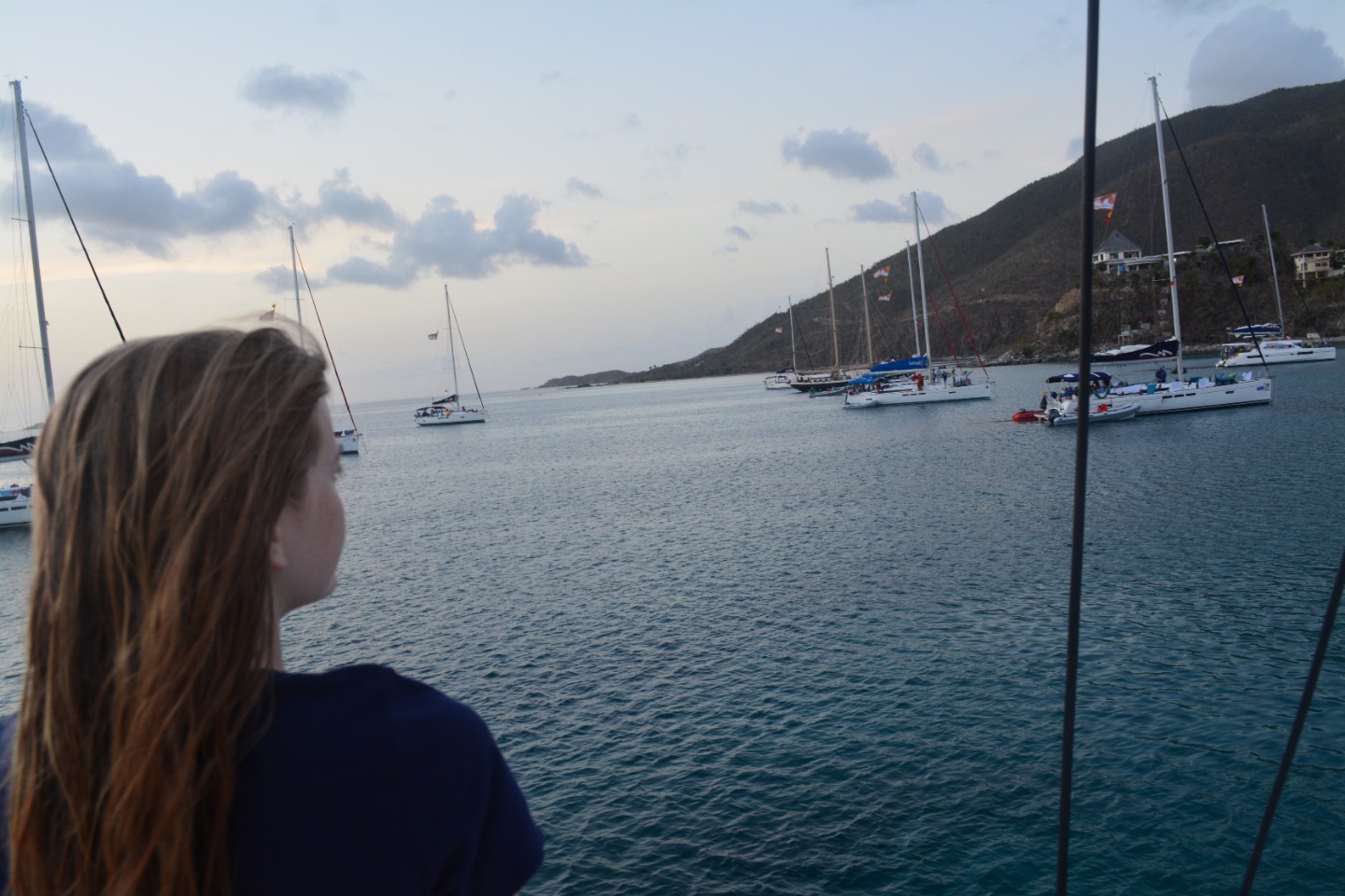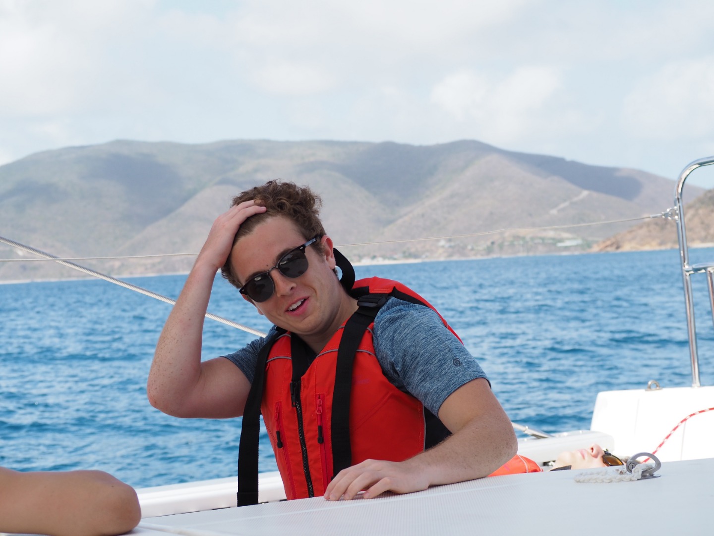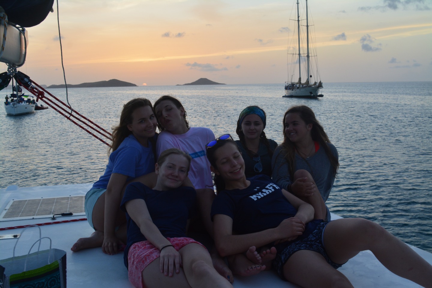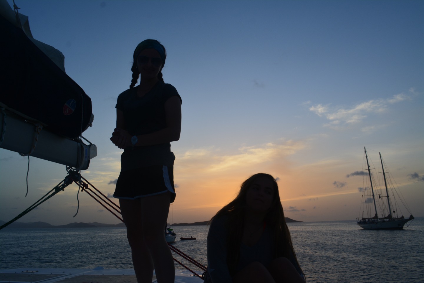 Today was our longest sail of the session. We woke up early so we could explore our docking site, Norman Island. We went on an hour long hike on the island and learned about the history of the land. The top of the hike was a helipad intended for mega-resort that was never built, and the view was great. At the top, we did an exercise where we traced our hands and wrote our goals inside of the drawing. These goals will be given back to us at the end of the session. After our hike, we ate breakfast and began our sail. I was skipper, so I was able to sail our boat all the way to Savannah Bay which is where we’ll be staying for a couple of nights. At first, I needed some help getting the hang of the steering but afterward I was fine. Initially, I wasn’t too excited about sailing for around four hours, but it turned out to be pretty fun. Upon our arrival, our head staff Elliot decided to brief the crew and us from the boat Shazam on one of our missions for the session, sea turtle tagging. After the conversation, we were able to dingy to the beach and play around for a while. After the beach, we ate dinner and wrapped up our day.