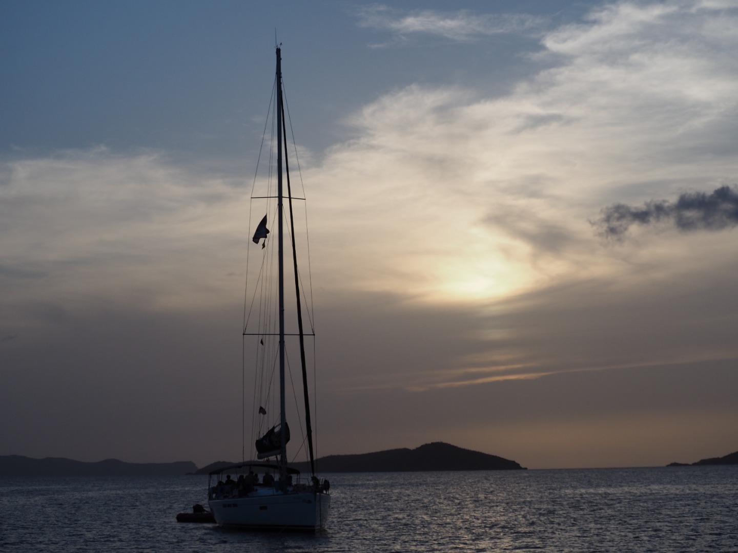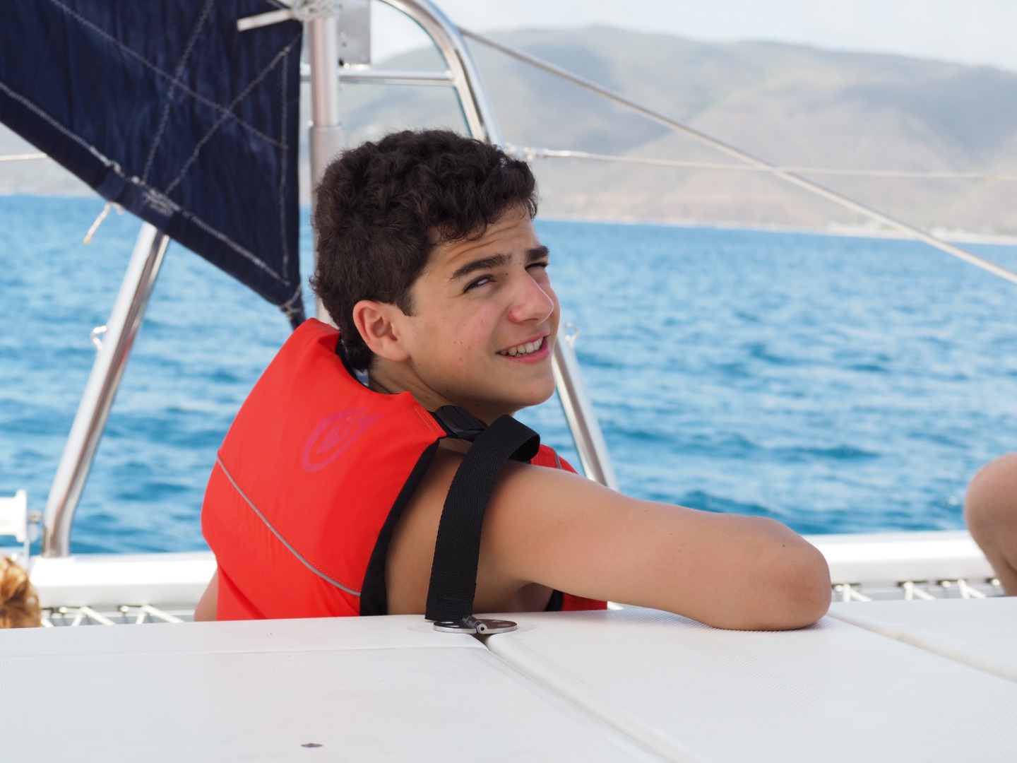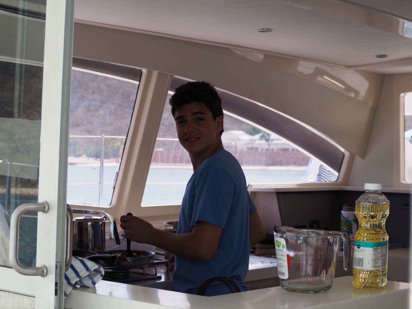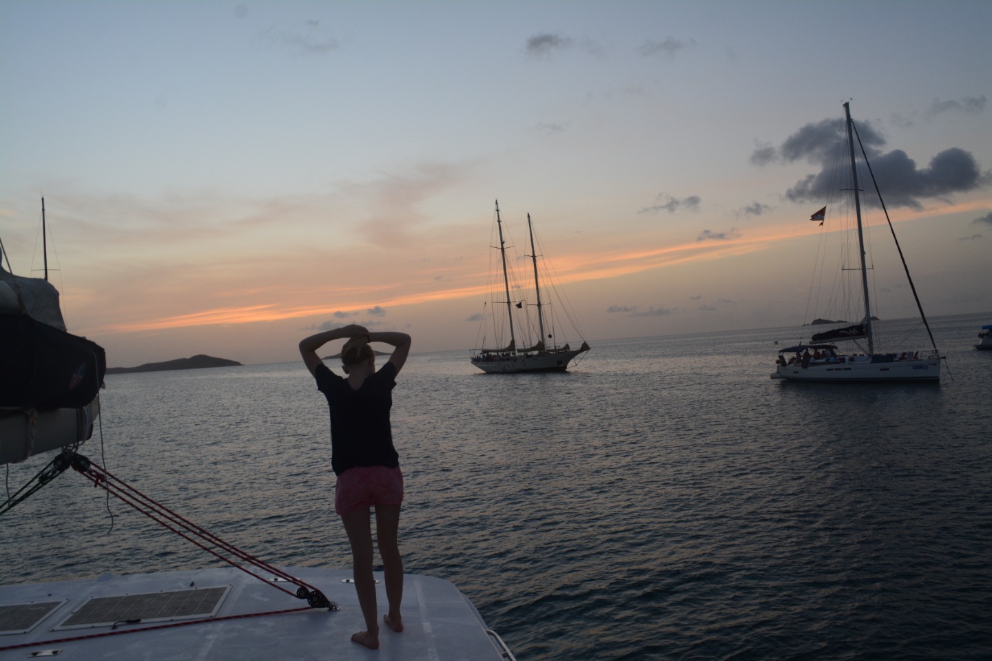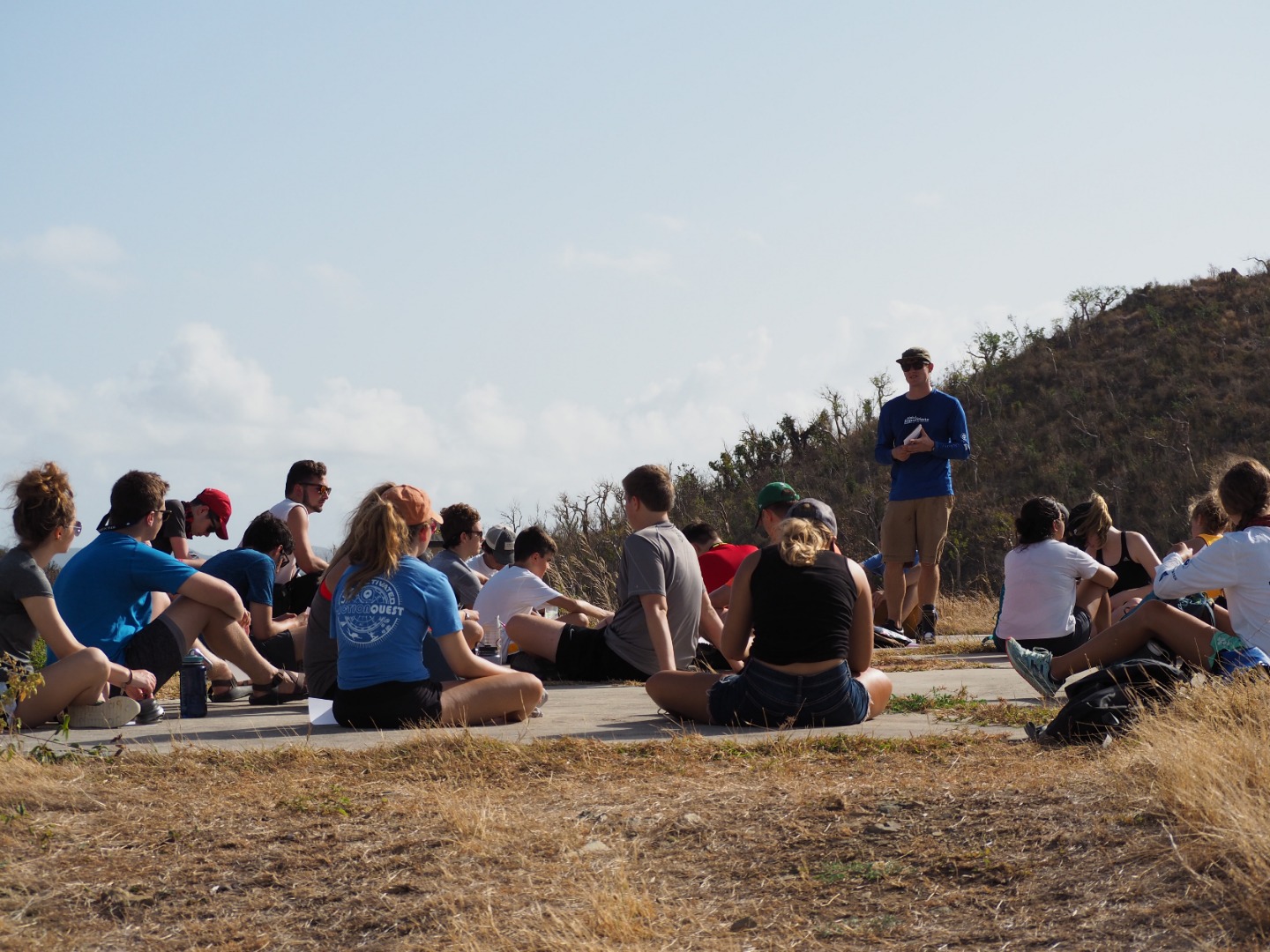 Today was our longest sail of the session. We woke up early so we could explore our docking site, Norman Island. We went on an hour long hike on the island and learned about the history of the land. The top of the hike was a helipad intended for mega-resort that was never built, and the view was great. At the top, we did an exercise where we traced our hands and wrote our goals inside of the drawing. These goals will be given back to us at the end of the session. After our hike, we ate breakfast and began our sail. I was skipper, so I was able to sail our boat all the way to Savannah Bay which is where we’ll be staying for a couple of nights. At first, I needed some help getting the hang of the steering but afterward I was fine. Initially, I wasn’t too excited about sailing for around four hours, but it turned out to be pretty fun. Upon our arrival, our head staff Elliot decided to brief the crew and us from the boat Shazam on one of our missions for the session, sea turtle tagging. After the conversation, we were able to dingy to the beach and play around for a while. After the beach, we ate dinner and wrapped up our day.