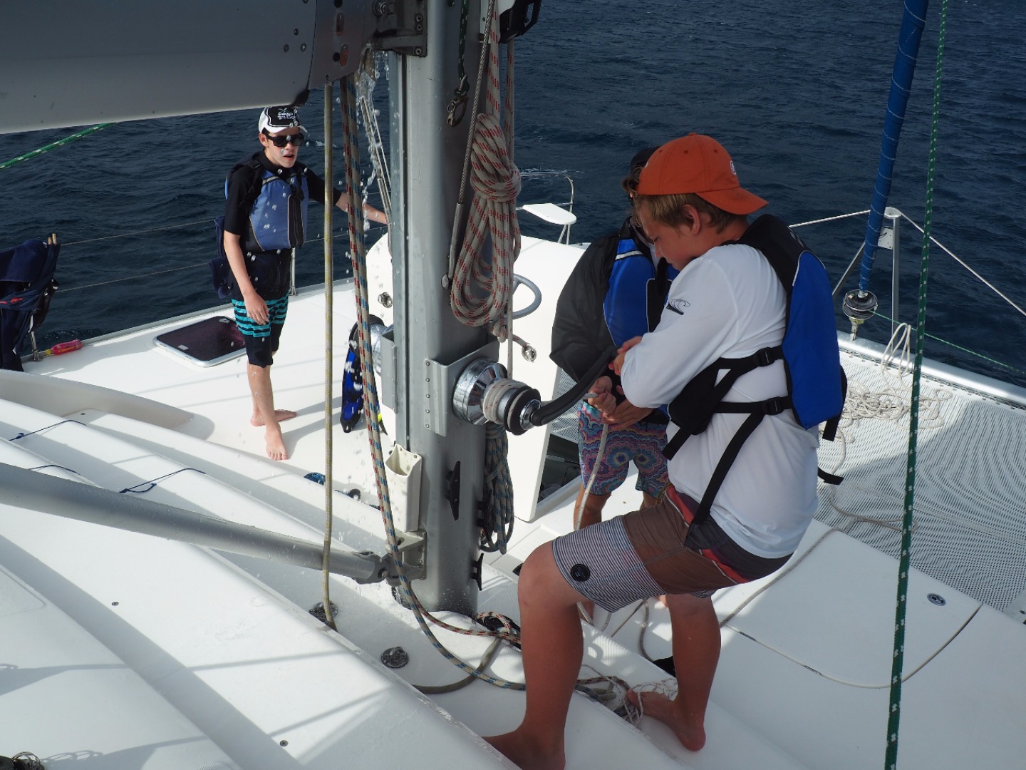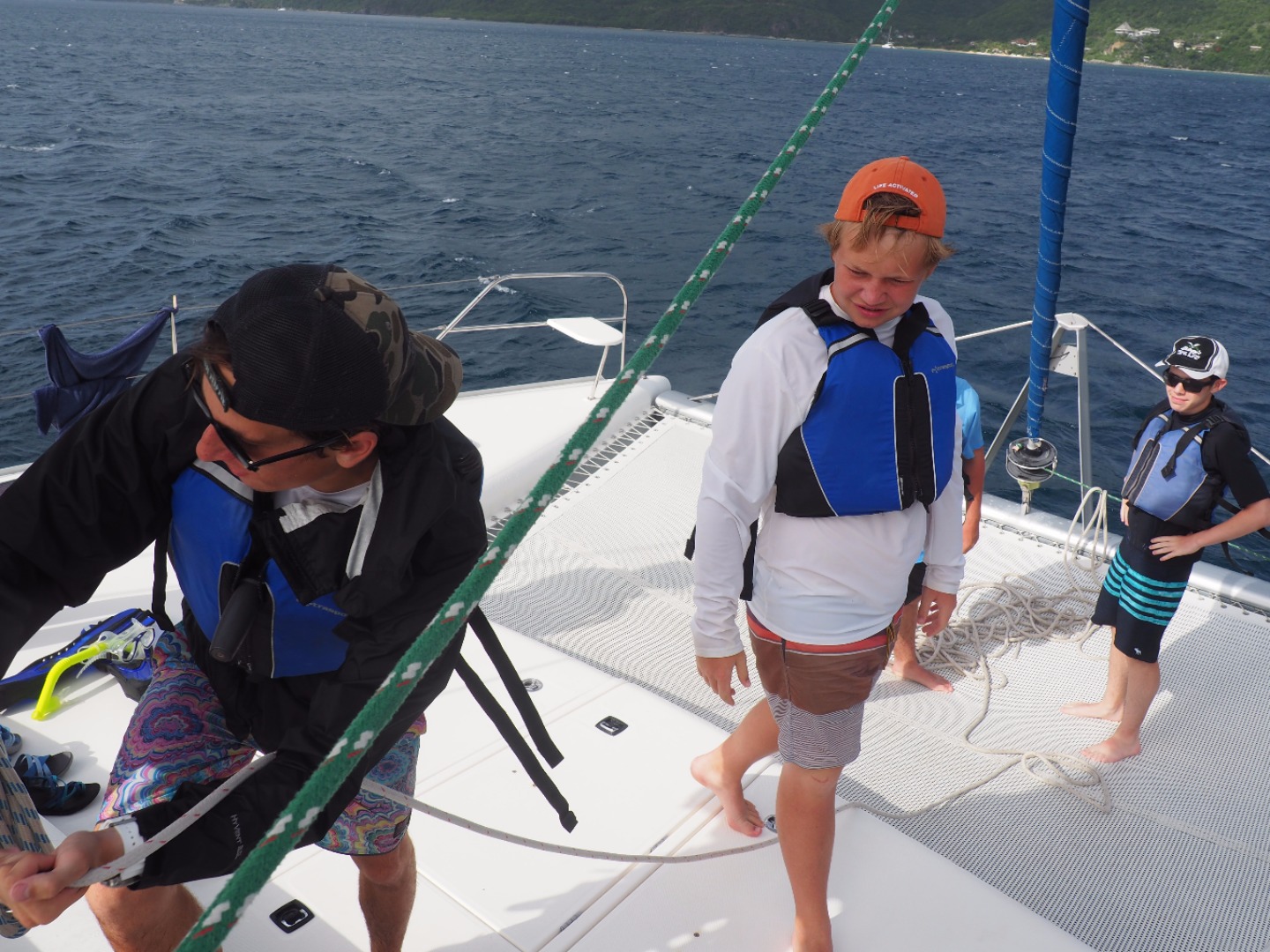We woke up this morning to heavy rains and cloudy skies. It was a slow morning on the boat, and it wasn’t until 8 am that we finally dragged ourselves from our beds. We spent the first few hours of the morning relaxing in the saloon, cooking pancakes and listening to Jack Johnson. After our filling breakfast, we hunkered down and began to watch some educational videos on plastic, and it’s impact on the ocean and the species within it. Something that I retained from the videos is that it would take tens of thousands of years to generally rid the ocean of all it’s plastics. After a long discussion about how we as individuals can help prevent the pollution of our oceans, we began to put on bathing suits and sunscreen to prepare for our day. We grabbed our snorkel gear and headed out on the dinghies towards the reef. Our mission was to locate lionfish and to successfully remove them from the reefs. We had learned beforehand that lionfish are an invasive species and that they have no natural predators. This means that they have the capability to eat whatever they want without the fear of being eaten. Entire reefs can be affected and destroyed because of one single lionfish. To protect these reefs, we need to remove the lionfishes from wherever we find them. On our first snorkel trip, we didn’t find a fish, and our mission ended unsuccessfully. We returned to our boats and got on our PFDs because we were relocating farther down the coast for the night. It was my turn to be skipper today, and I had the opportunity to steer the boat. It was a lot more difficult than I expected.