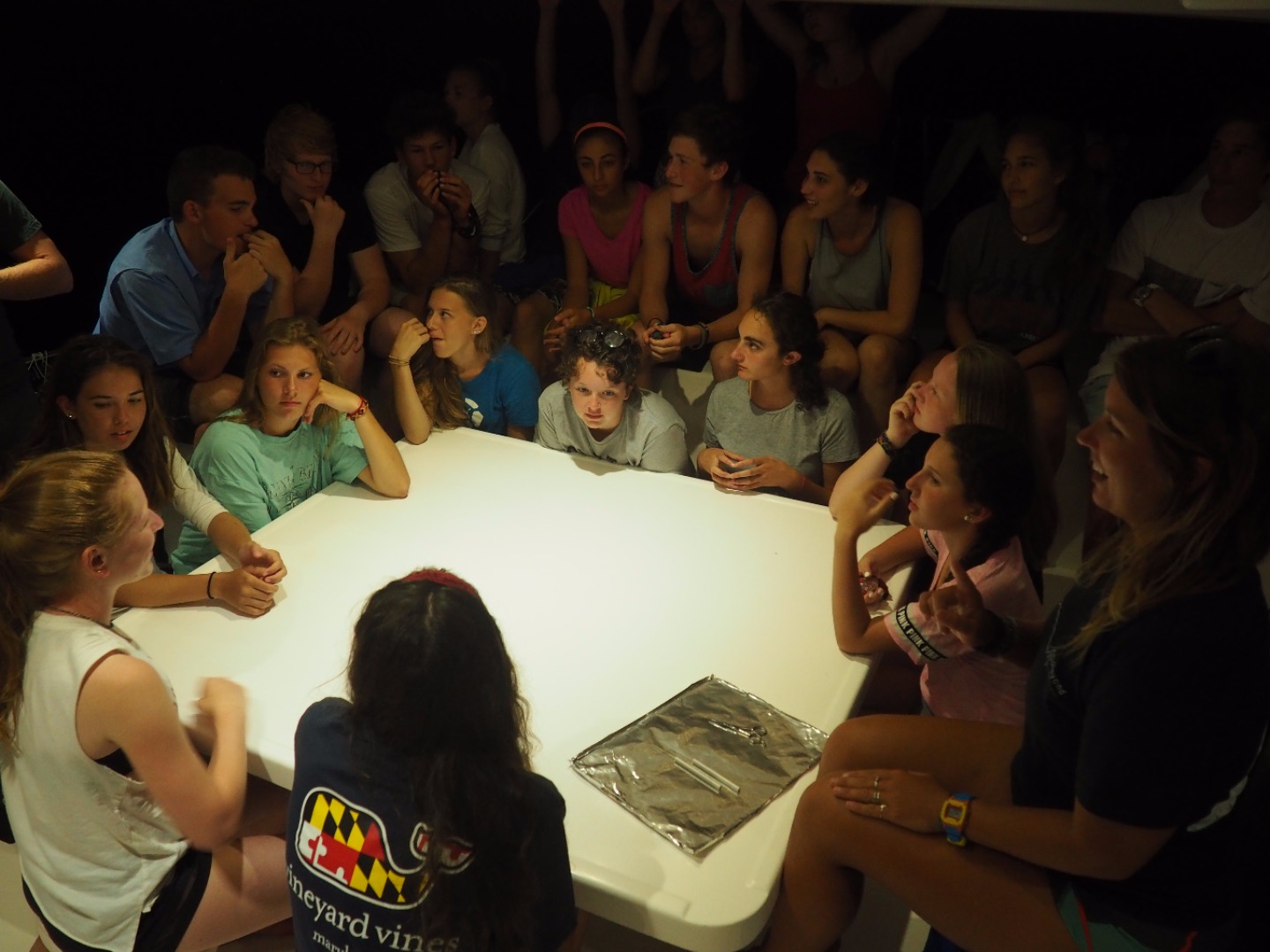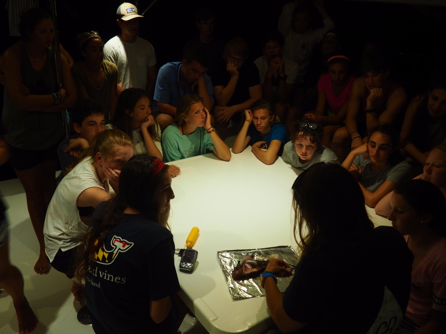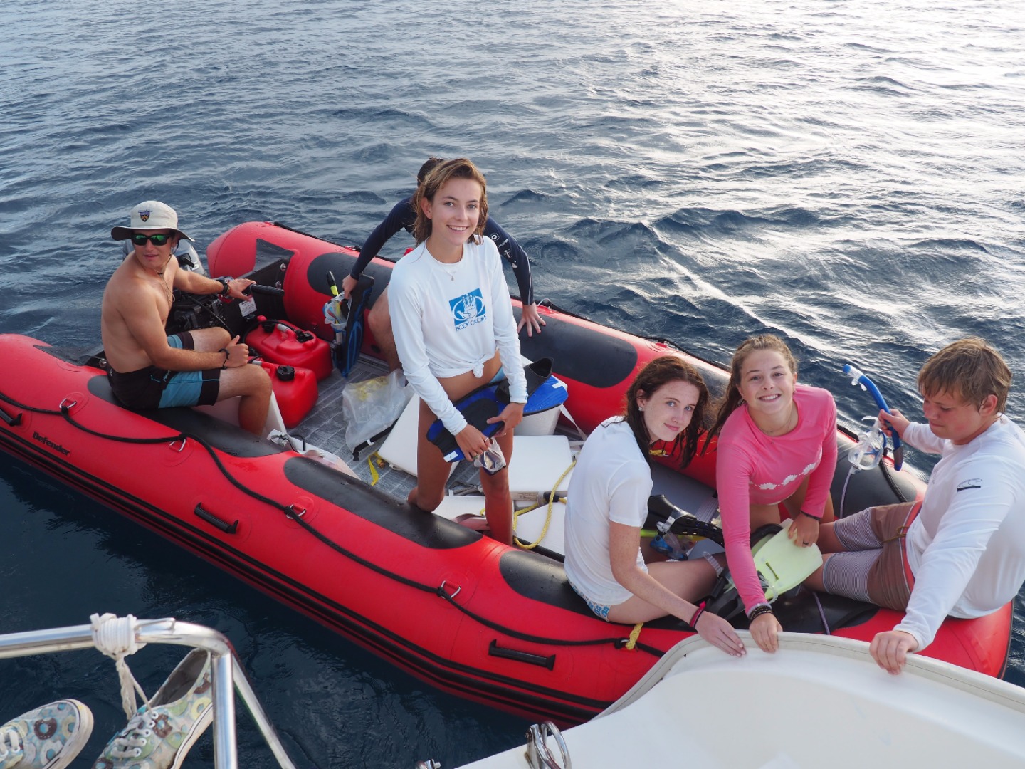 Nevertheless, we made it to the harbor in one piece. Immediately when we got to the harbor and dropped our anchor, we got ready to go back on the dinghies to go snorkeling for some more lionfish. This time we were lucky. We located a lionfish just off the coat of Mountain Point and brought it back to the boat. Later tonight, we are going to do a dissection on the fish to better understand the species. Other than that, we ended up coming back to the boat, swimming around for a little and then eating a dinner of pasta. Overall, today was a day of many activities and aspects. We all had an amazing time and grew to learn more about our environment and how to take care of it.
