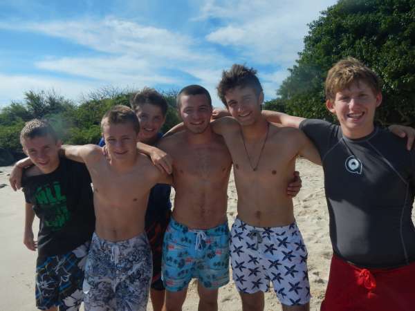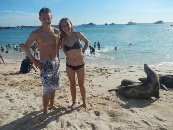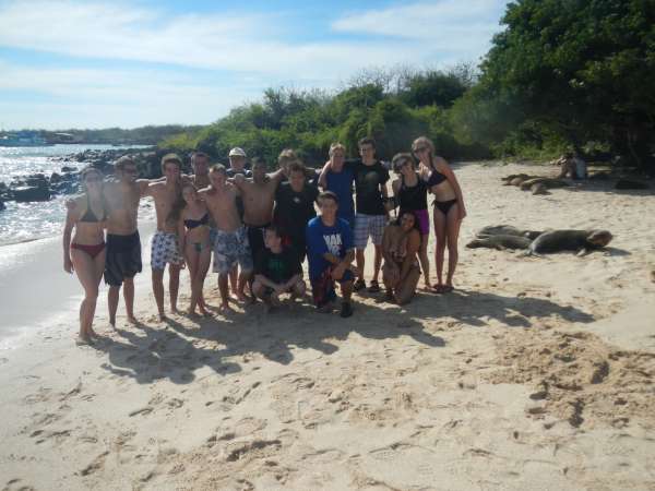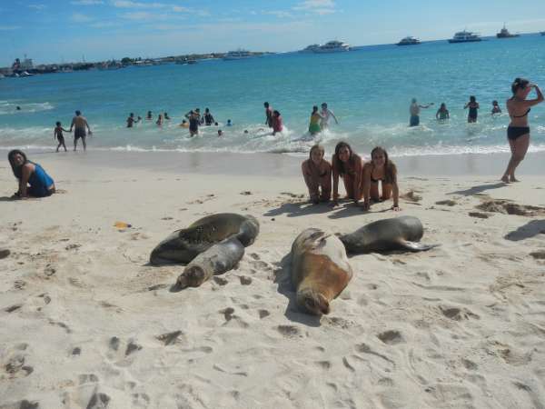 Hi readers!!! Today we arrived in the Galapagos after waking up at 4 am to catch our flight, we cried a lot. Especially Blake because Nora didn’t help him wake everyone up. After finally getting through 7 hours of customs we went snorkeling at midnight– just kidding! After a hike to the beach, we put on our fins and masks and swam with the fish, turtles and sea lions. YAY! Henry almost drowned when he had his first leg cramp, but luckily Rishi saved him from the terrifying turtles. After this traumatic event, we walked back to a different beach and relaxed in the beautiful Galapagos sun. We had a few scary experiences with the sea lions, but everyone was ok, and we got some good pictures. We ordered dinner for the group and failed miserably. The ordering took just as long as the food, so we were waiting for a while. After dinner, we came back to the hostel and set up a game of Mafia. After finally getting chosen as the angel, Sadie got killed on the first round and was sad for the rest of the night. The game finished and everyone was exhausted and went to sleep almost immediately. Overall everybody is having a wonderful time and collectively hates Blake and Nora. Just kidding we are super cool! We’re tired and worked hard on this blog. I know you enjoyed it. Goodnight everyone!