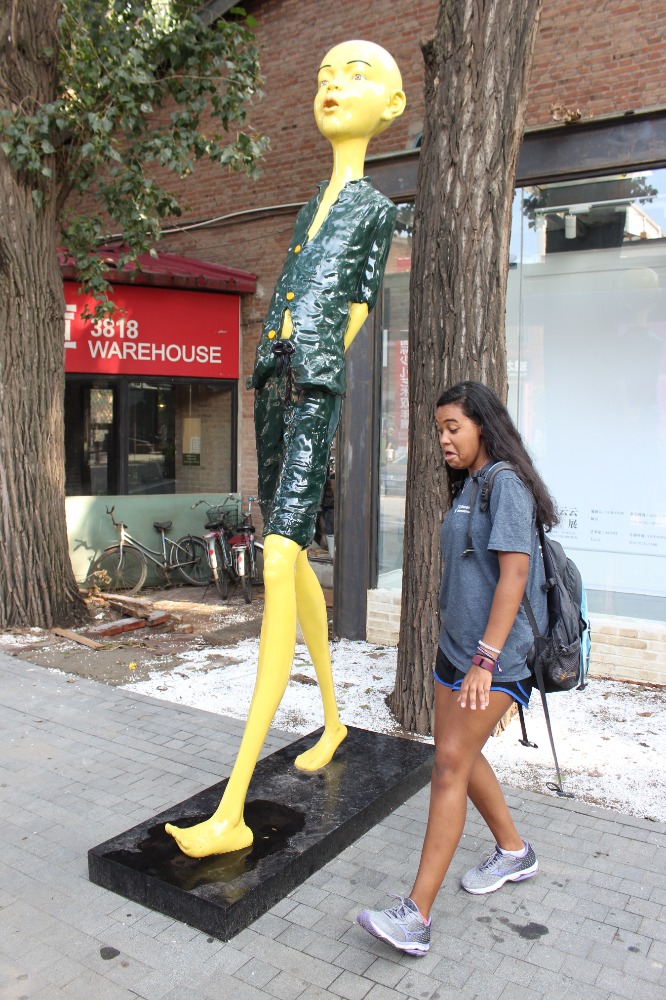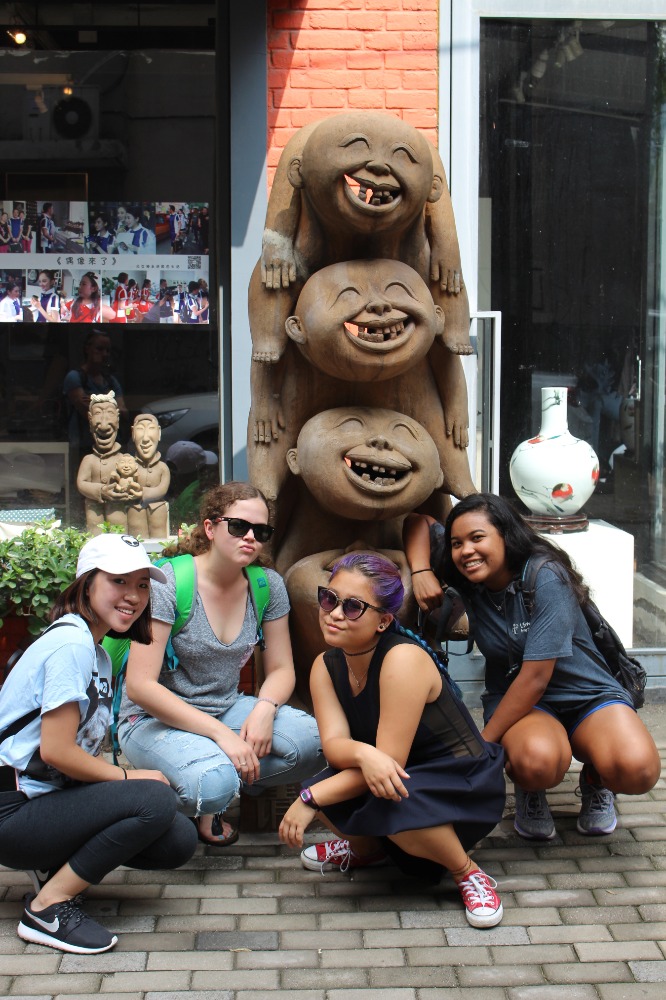 Today we woke up and had eggs and bread prepared by Maddie and Rachel! We then headed over to dewdrops (about a 10 min. ride away) where we all played with the babies/toddlers like usual. We went back at like 11:30 AM and the chefs of the day made us pasta and salad. Afterward was the best part of the day! The 798 art district! (Imagine a town full of art galleries, cafes, and shops). We all walked around as a group (8 people including the leaders) going in and out of little stores full of cute things from clothes to patches to panda boxes after we got ice cream cones and sat around for a while. We then went to more stores; I think everyone’s favorite store was the last one we went to. It had fake Ray Bans, a bunch of hats, iPhone cases and little miscellaneous things you never knew you needed. We took a lot of pictures because the place was full of unique street art and sculptures that brought out the inner artists of China. We headed back to our apartment at like 5:30 PM where we made some dumplings (Beef and vegetable). Everyone loved them; we saved dishes by using napkins as plates. We watched a little bit of The Last Emperor after/during dinner. At around 8:30 we headed over to Dewdrops where we did the “squeeze” (holding hands and going around answering a question from the skipper and stating our favorite part of the day) but surprisingly we didn’t play with the babies, we put the floor in the toddler’s room back together! (The toddler room is covered in soft tiles that fit together like puzzle pieces) Now we’re back in the apartment getting ready for another day!