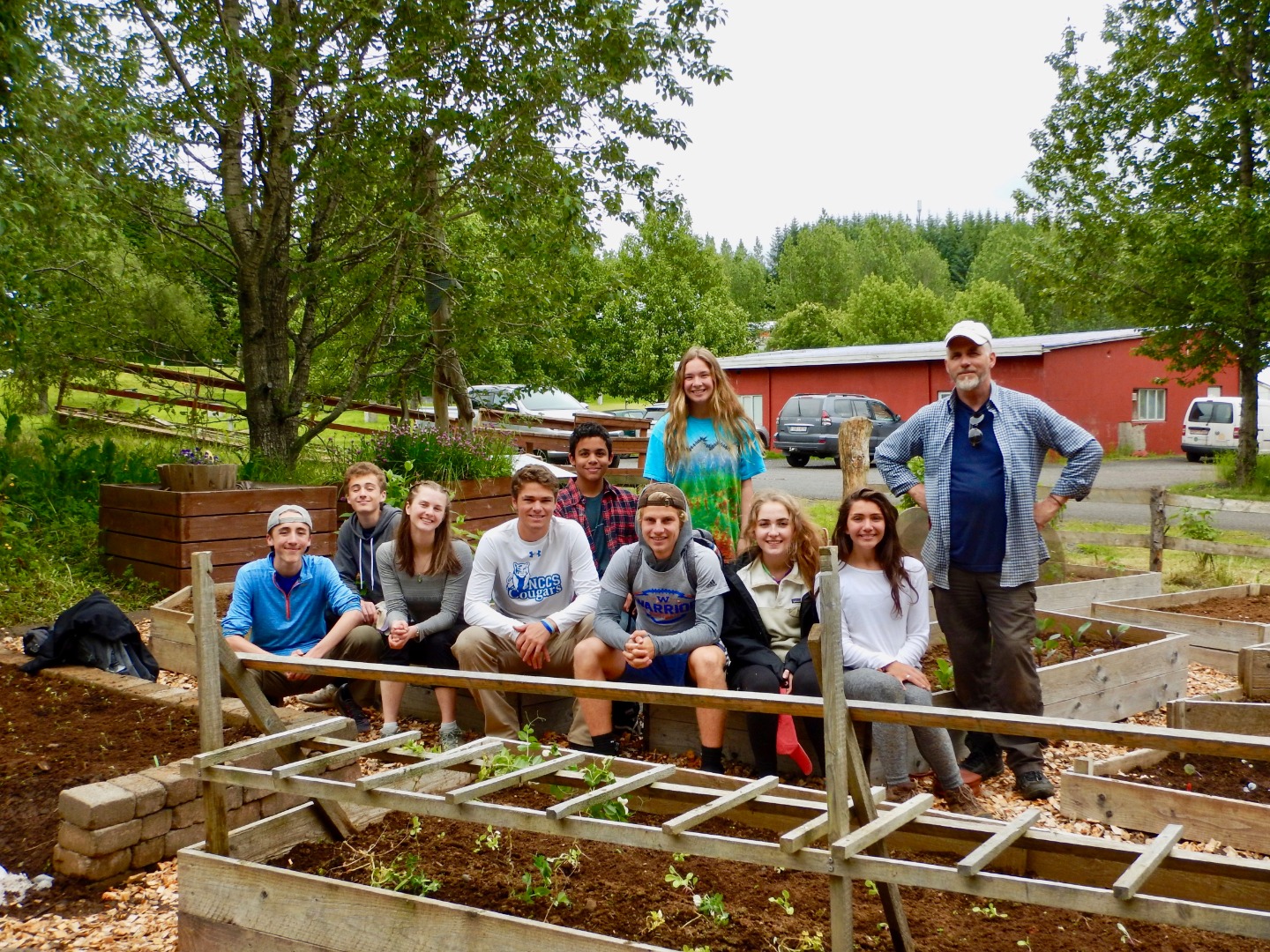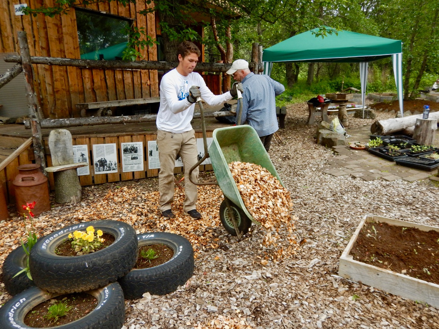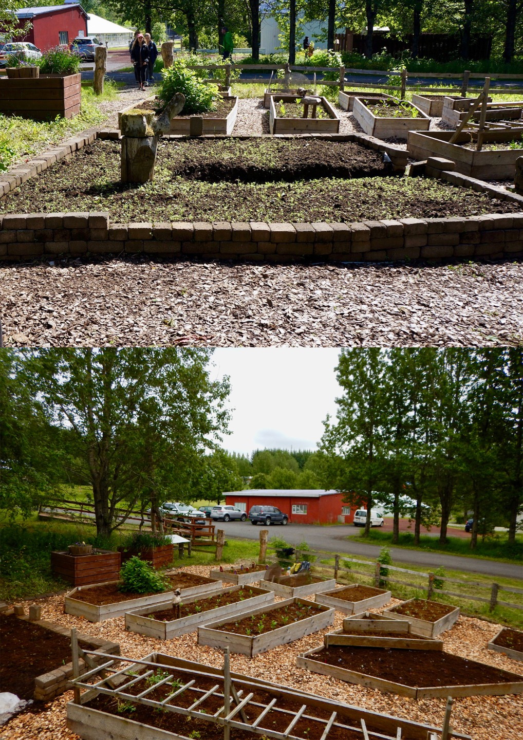 Lunch was lamb and noodles; then we were back to work. We were assigned buckets of baby vegetables to plant: kale, chard, vegetables with Icelandic names that were probably carrots and spinach, and more kale. By 2:00, we had finished planting and laying new wood-chips, and the garden looked more like Eden and less like a weed sanctuary.