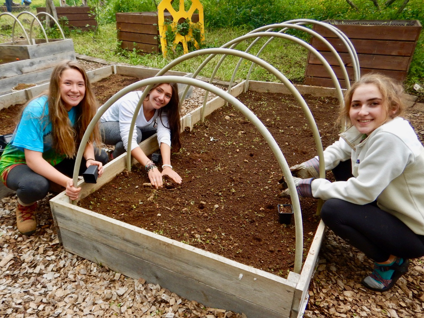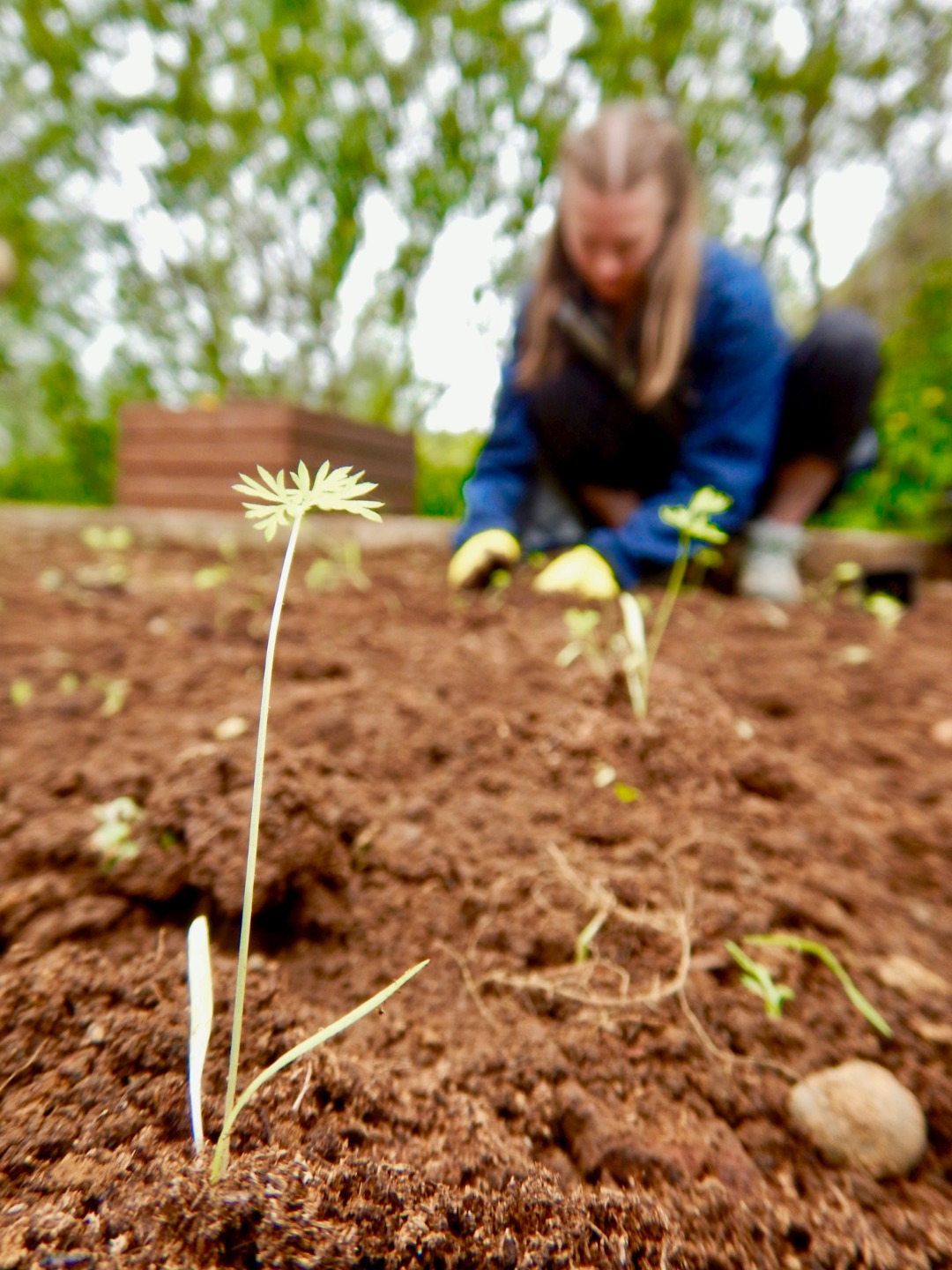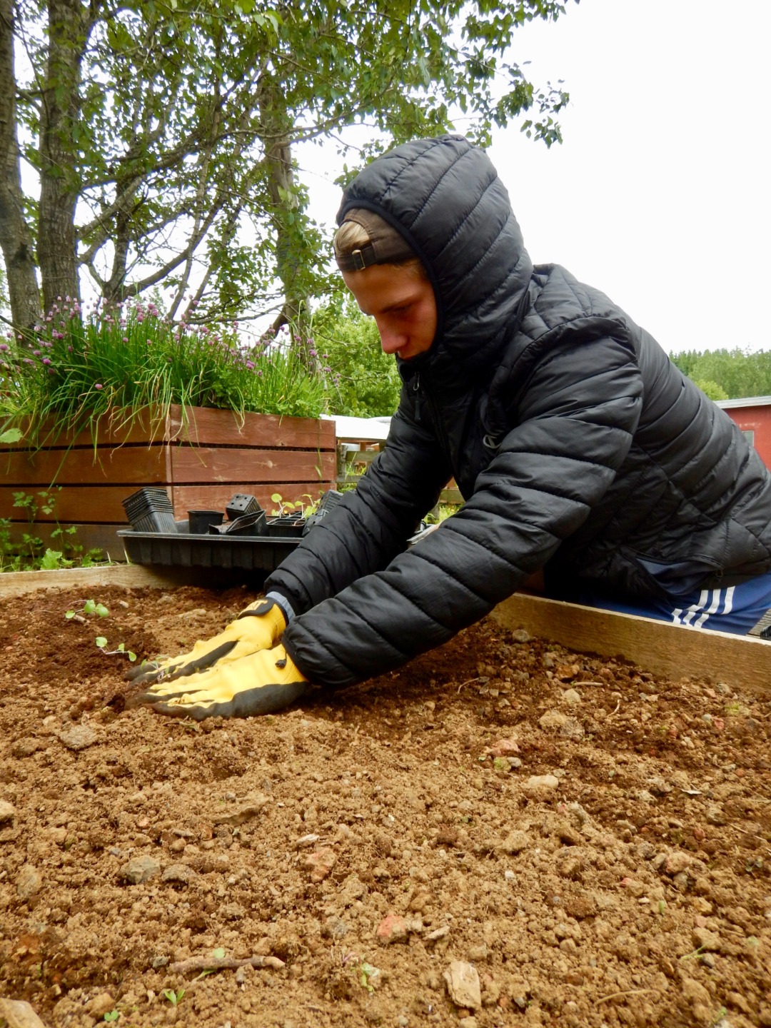 Lunch was lamb and noodles; then we were back to work. We were assigned buckets of baby vegetables to plant: kale, chard, vegetables with Icelandic names that were probably carrots and spinach, and more kale. By 2:00, we had finished planting and laying new wood-chips, and the garden looked more like Eden and less like a weed sanctuary.