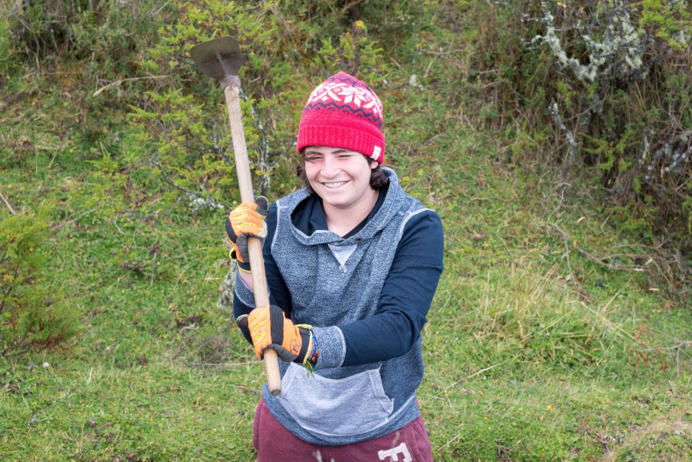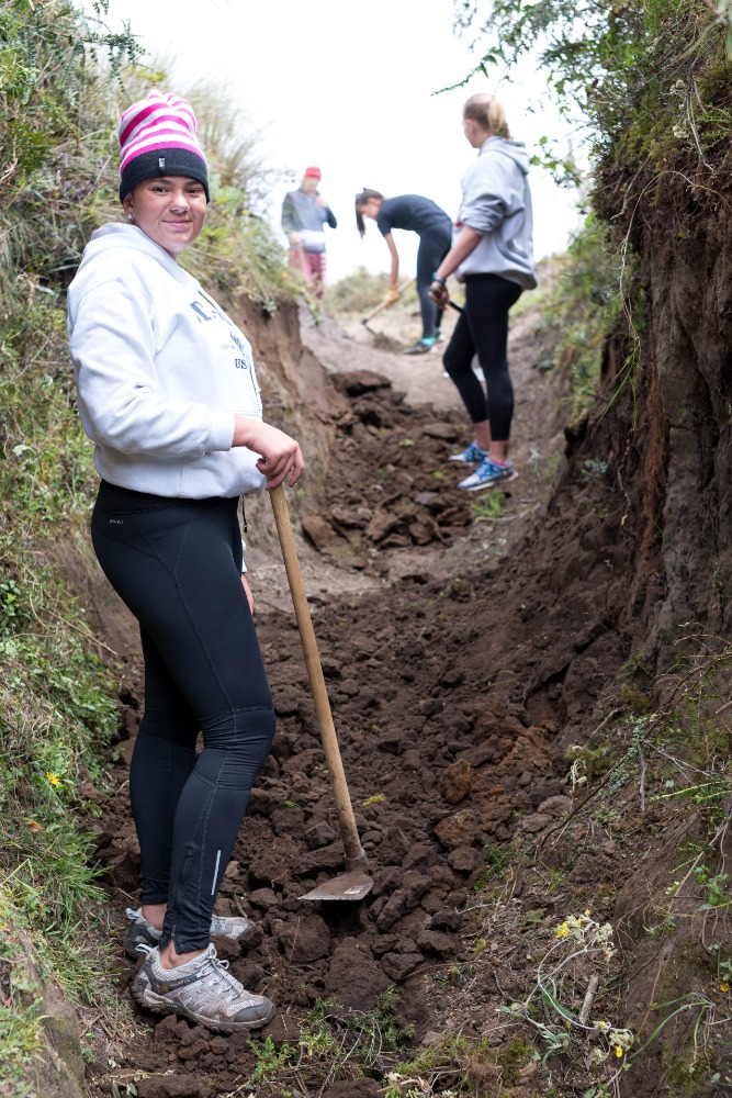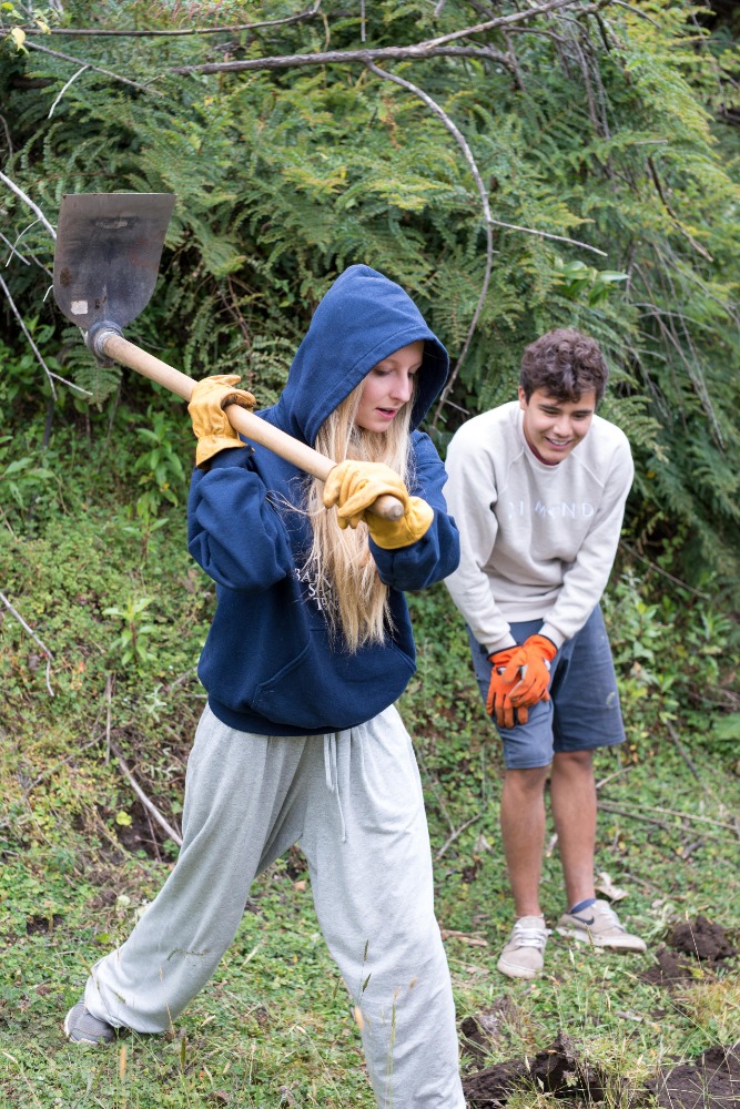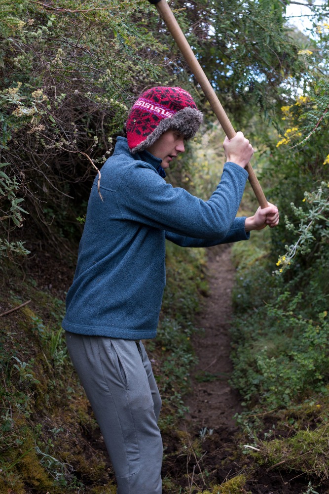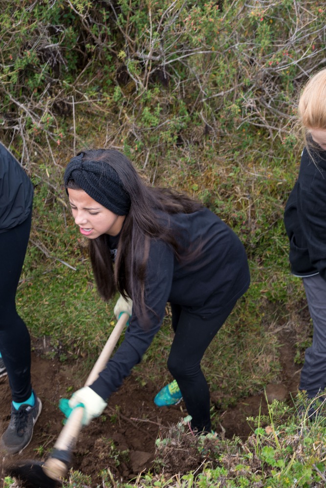 After our delicious breakfast, the group loaded into two separate pickup trucks that would take us to the trail we would be working on. After a ten-minute drive, the group arrived at the trail, which was split down the middle by a trench that was no wider than my shoulders. Our goal for the day was to make the path, in Devin’s own words, as wide as a two-lane highway. To make the path that large was inconceivable, but we tried our hardest to make it as wide as possible. This work was strenuous and tedious, but also extremely necessary. Many people in our group played games to pass the time while working through the pain of hoeing the trail. This pain originated from the blisters, which had been caused by the constant hacking at the trail throughout the day. Some of the group, most notably Will and Felix, fought through the pain even though their hands were ripped apart with hot spots and blisters.