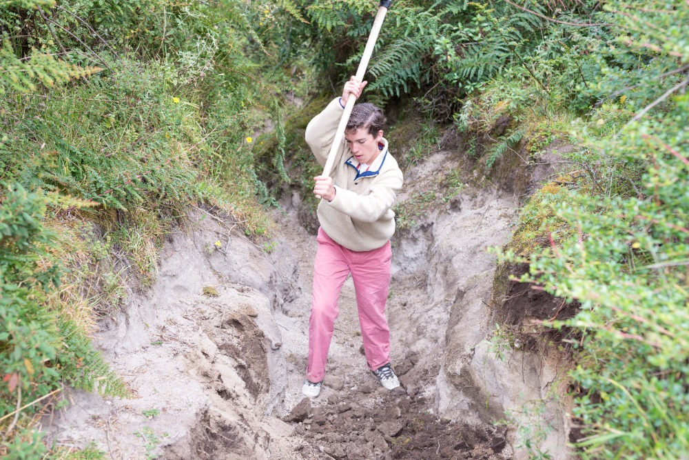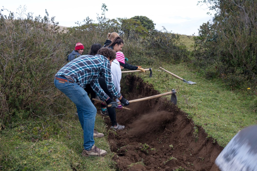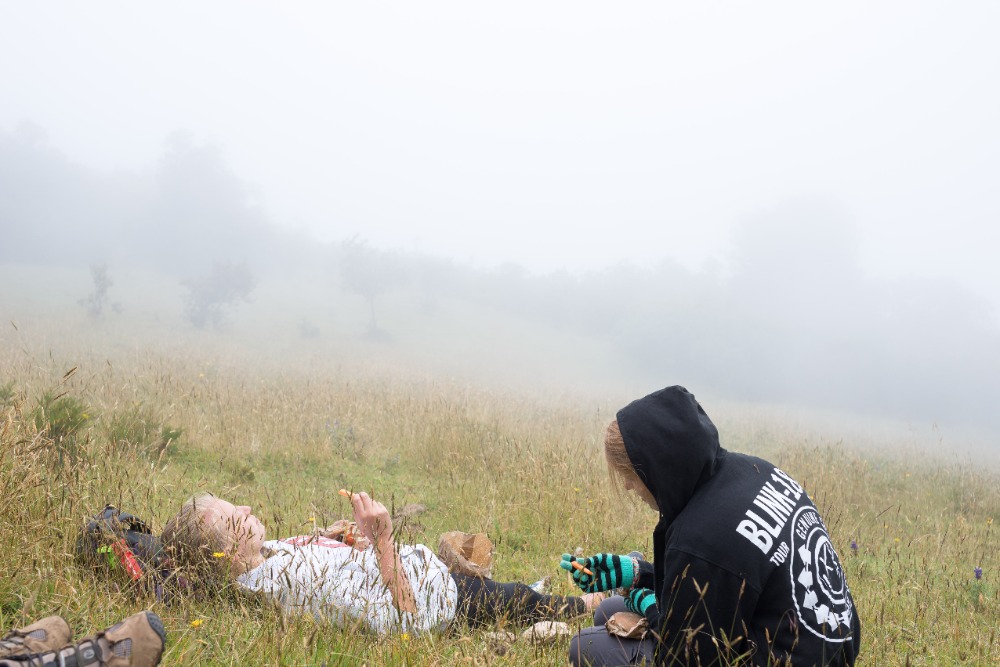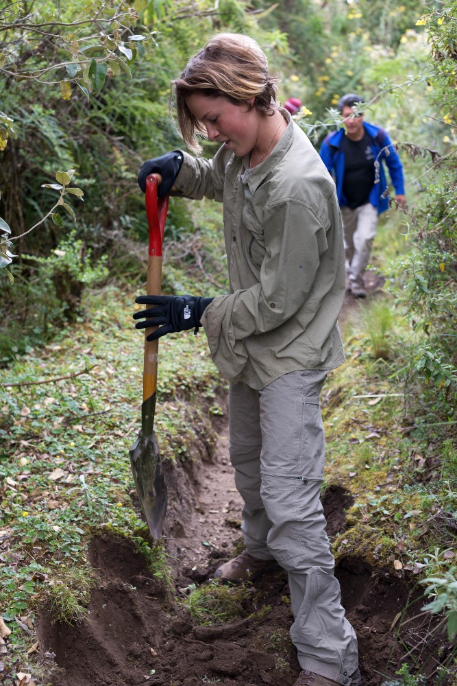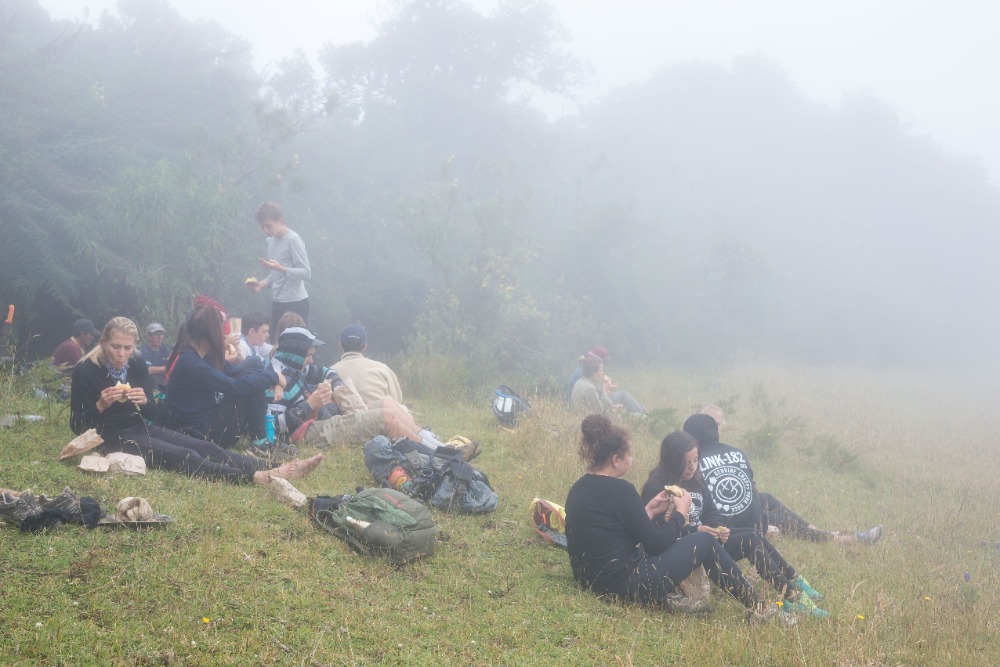 After our delicious breakfast, the group loaded into two separate pickup trucks that would take us to the trail we would be working on. After a ten-minute drive, the group arrived at the trail, which was split down the middle by a trench that was no wider than my shoulders. Our goal for the day was to make the path, in Devin’s own words, as wide as a two-lane highway. To make the path that large was inconceivable, but we tried our hardest to make it as wide as possible. This work was strenuous and tedious, but also extremely necessary. Many people in our group played games to pass the time while working through the pain of hoeing the trail. This pain originated from the blisters, which had been caused by the constant hacking at the trail throughout the day. Some of the group, most notably Will and Felix, fought through the pain even though their hands were ripped apart with hot spots and blisters.