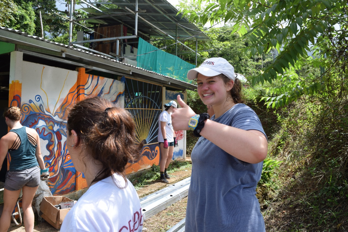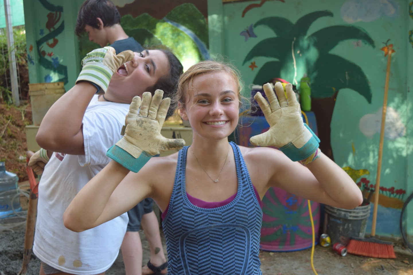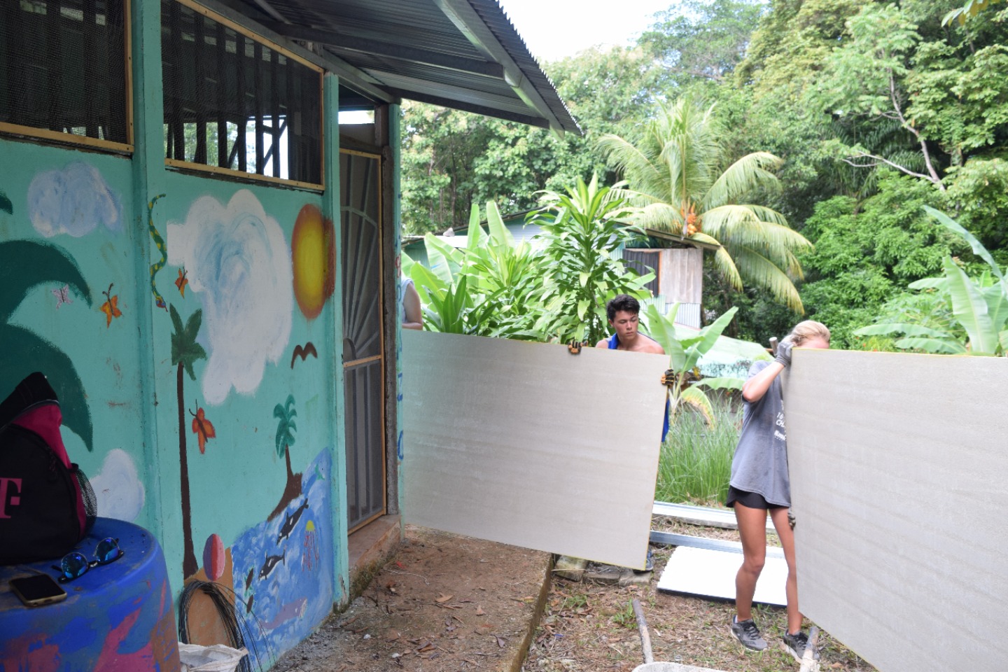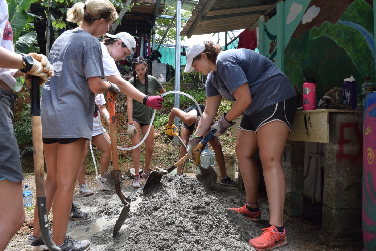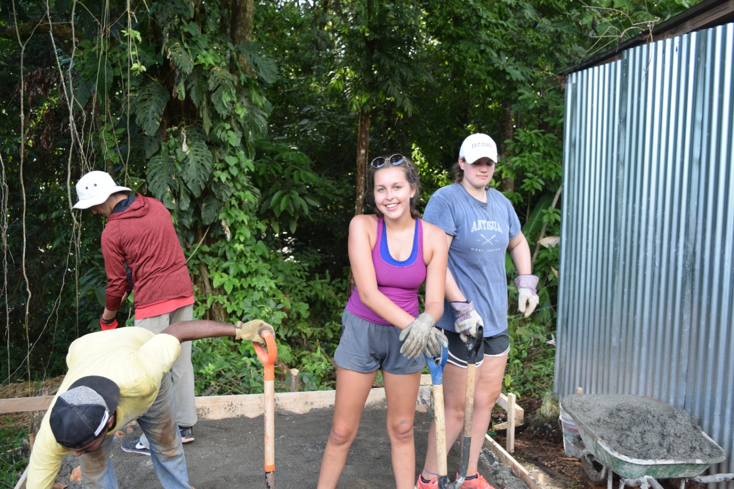 Sitting at the lunch table back at our hotel, everyone was pretty tired, so we got to stay for two more hours and either take naps or watch the World Cup game. When England was in the lead and Colombia scored to bring the game into overtime, JB and Anna decided to let us finish the game before going back to the health center. Once the game was fully over and England had won, a few people in the group were slightly disappointed, but they shook it off, and we got back on the bus to go to the center. When we got there, we were happy to see that a lot of progress was made and that we just needed to do some last things to help. The group went and got five wheelbarrows of new sand and brought it down to make cement. We followed the steps Francisco had taught us and made another batch. After that batch was made and used, Francisco wanted us to bring down five more barrels of sand to finish for the day.