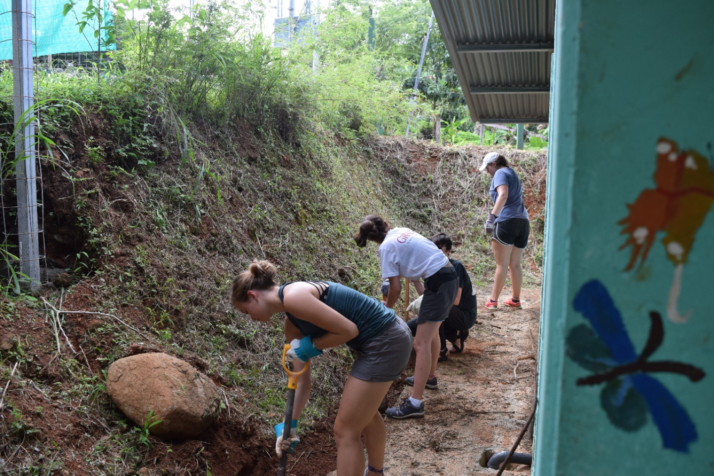 This morning everyone woke up around the times between 7:00 to 7:30 to get ready for breakfast and the long day of work ahead. After breakfast, everyone made sure they had their last needed items packed and got on the bus for a short ride to the health center. When we arrived, we saw Francisco (the guy who helped us at La Finca) and another construction guy, Jose, already starting the foundation of the building we were gonna help build. We split off into three different groups: 1 for cleaning the shed, 1 for digging dirt for the building, and 1 for gathering rocks for the base of the building. Once all three groups completed their tasks we started to make cement for us to fill in the base. Little did we know that 3 hours of work had already passed and we needed to head back to our hotel for lunch.