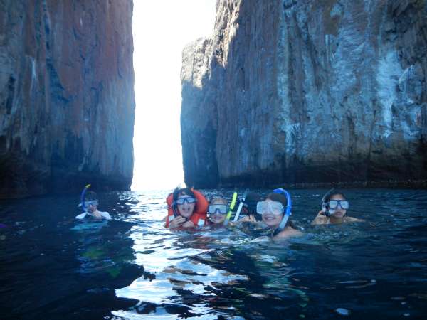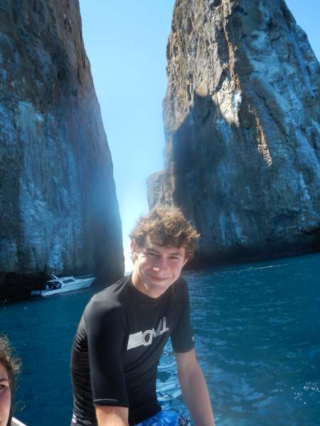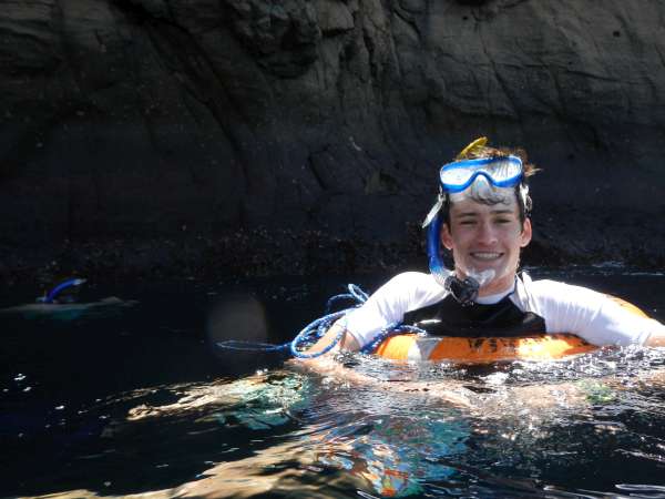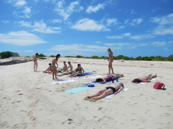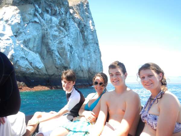 Sadly, today was our last day in the Galapagos. We spent most of the day on a small motorboat which took us to several locations. Our first stop was to an island called Los Lobos. We snorkeled and saw many fish as well as an underwater iguana and of course, many sea lions. Next, we went to Kicker Rock where we had an amazing time snorkeling. We saw sting rays, starfish, lots of turtles, sea lions, fish and sharks. It was amazing to see sharks swim so close to us! We swam through the channel in between two rocks. Our guide told us the highest point of the rock was about 400 feet tall! Our last stop was to a beautiful sandy beach where people swam, played soccer and napped. The water was pretty cold but as Jessica said before we jumped off the boat to go snorkeling “being cold is only temporary, and the memories will last forever!” After our boat tour, we came back to our hostel to shower and pack. After a presentation from the Galapagos National Park Service to thank us for our hard work, we headed into town to pick up some last souvenirs before we depart for Quito tomorrow.