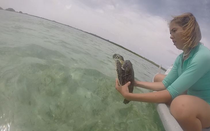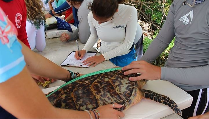 Hello, this is Emily King, live and on the blog. Welcome to tape number 9, or day 9. I’m here to tell you all about my day and let me just say it was gnarlyyyyy. Today we went turtle tagging, and if I’m honest…Girl…I was nervoussssss. But I was okay. When we got there, some people were setting up the work area, where they would tag the turtles. There was another group (3-4 people and a staff member) that got on a skiff (a boat), and then went to get the turtles. Carson, Tia, Nye and I were on a skiff together with our staff member Jordan. This means we were destined for greatness…Or so I thought. Don’t get me wrong we were the dream team but finding the turtle took an abnormally long time compared to the other groups. All the other groups took around 30 minutes….our group took…over…two..hourssss. But it was lime (that means chill in the BVI). We saw three turtles, but they all got away. Our hopes stayed high as we sang ” I can feel it coming in the air tonight…” (I don’t know the name of the song). Then finally we found a turtle. She was destined to be named ‘Shalissa.’ We followed her with the skiff, and then when the time was right, I pounced into the two feet of water, hoping to catch Shalissa. Unfortunately, I didn’t get her. So, my good pal Tia jumped in to help me. She scared Shalissa towards me. I think Shalissa was star struck when she saw me, so she swam back to Tia. Tia then picked Shalissa out of the water very carefully. We got this whole thing on video, and it was so funny. After that, we brought Shalissa back to the dock, where they carefully tagged and took care of her. This is how every fabulous day should end along with a bit of shore-time, and dinner. 😉  TOMMOROW’S KURTS BIRTHDAYYYYYY!!!!!!!!!!!!!!!!!!!!!!!!