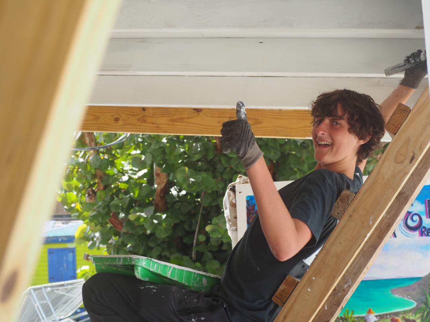 This morning we set sail and returned to Jost Van Dyke. We were welcomed to the island by Foxy, who was more than happy to entertain us with his amazing stories filled with wisdom and humor. Eventually, we began to work which included painting trim on a house that was beautifully painted by rebuilding island life earlier in the week. Others worked on finishing another house that had been started and was the home of Dexter who became a friend to the people in rebuilding island life. We, preserving paradise, gained perspective into all of the hard work the rebuildings had done, while we saw some of the natures most beautiful sights. I now understand the fatigue my friends Selma, Yousef, Ned, Matt, and Katie felt after a long day in the heat adding a lot of color to the people’s homes destroyed in the hurricane. Although on preserving paradise we still work hard, we get the bonus of the breeze and the blue beyond belief water. After our morning of walking in their shoes in the blazing heat covered in paint (even though Julia and I managed to escape without a drop on us), we got back on the boat. After lunch, I masterfully sailed for like 7 hours. I got to spend some quality time with Admiral Skippy (Elliot) who doubles as my best friend. After a weird sail filled with Elliot’s random outbursts of humor and stupid questions, we made it to our destination for the night (even though it is never about the destination, it is really about the journey). We ate a delicious Mexican meal, many people enjoyed a nice burrito, but of course, Myles had a plan tortilla rolled up with nothing in it. It was a great day, I also bought a really cute shirt:) and I learned how to tack a boat. Currently, I am watching some of the worst dancing ever by Katie, Selma, and Sophie to my girl Beyonce, while David questions if Myles opened the bread (knowing full well he is the culprit).